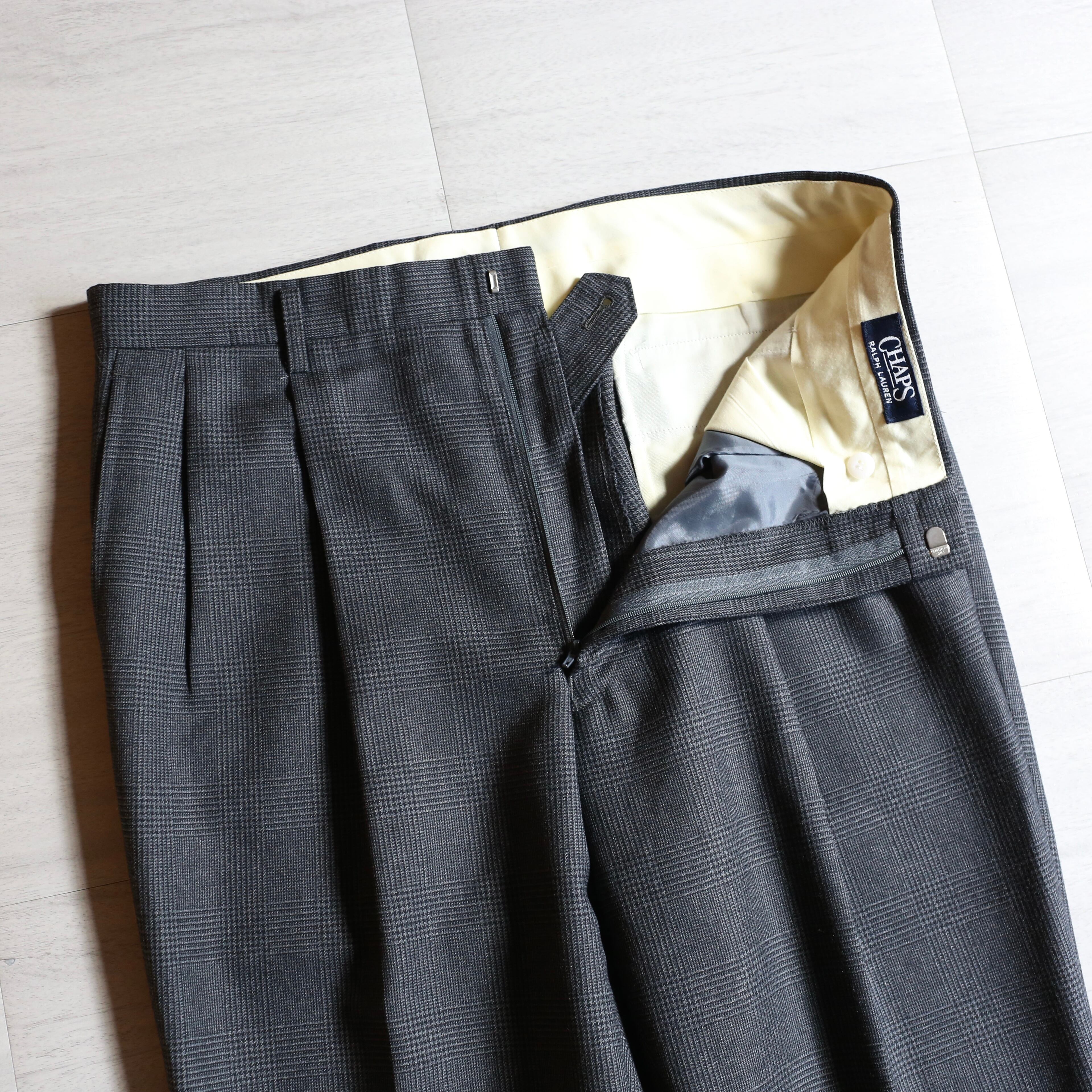 90s~ CHAPS RALPH LAUREN 2 Tuck Wool 100% Slacks 90年代〜 チャップス ラルフローレン 千鳥格子柄 2タック ウール100% スラックス 日本製