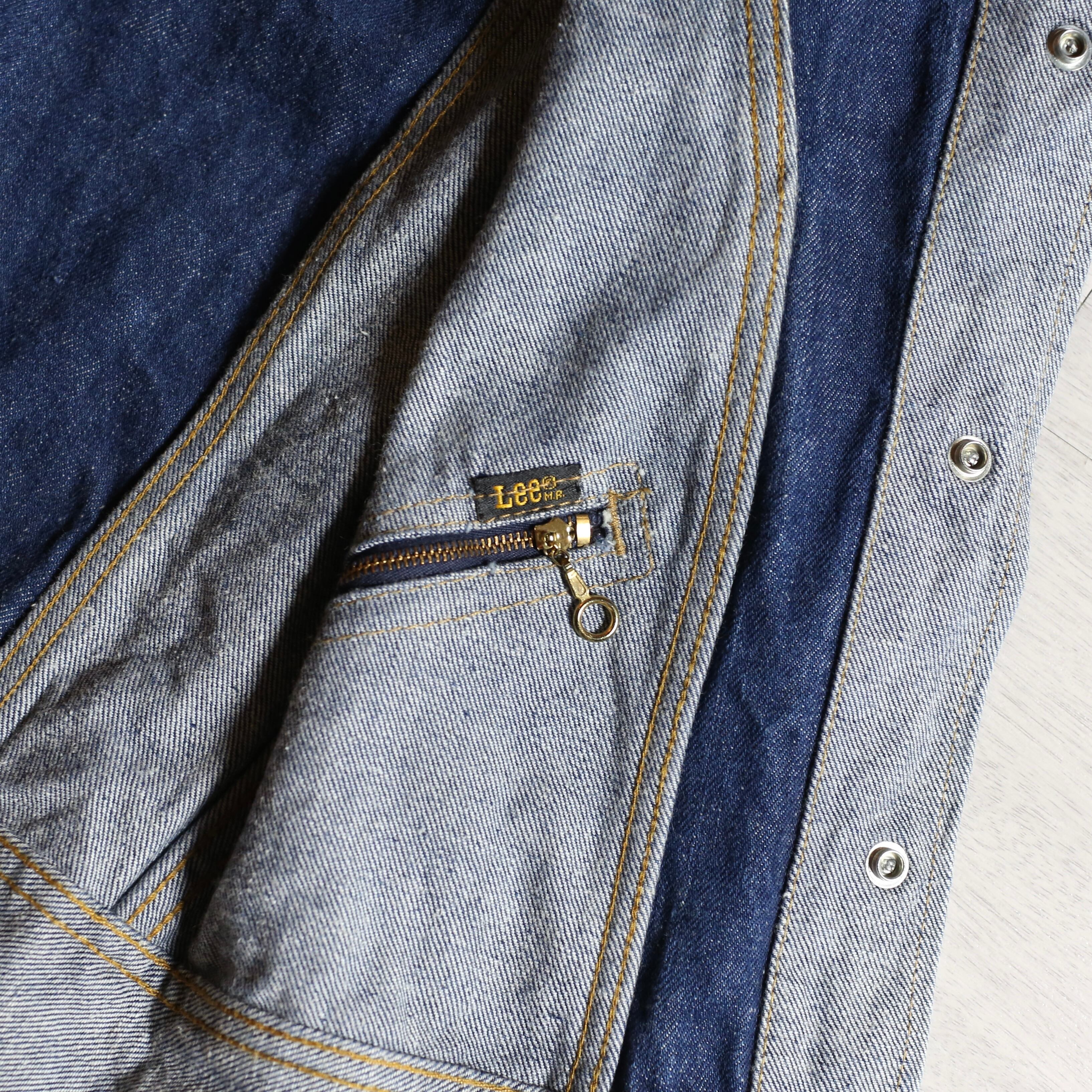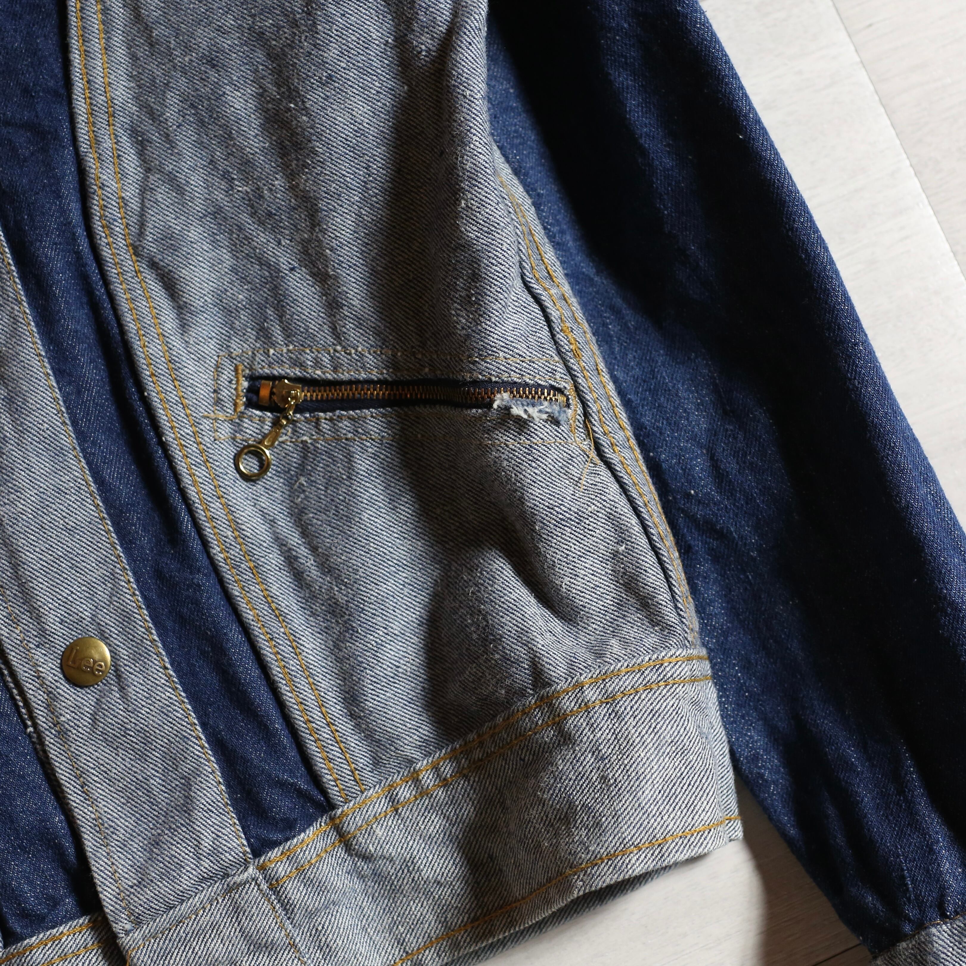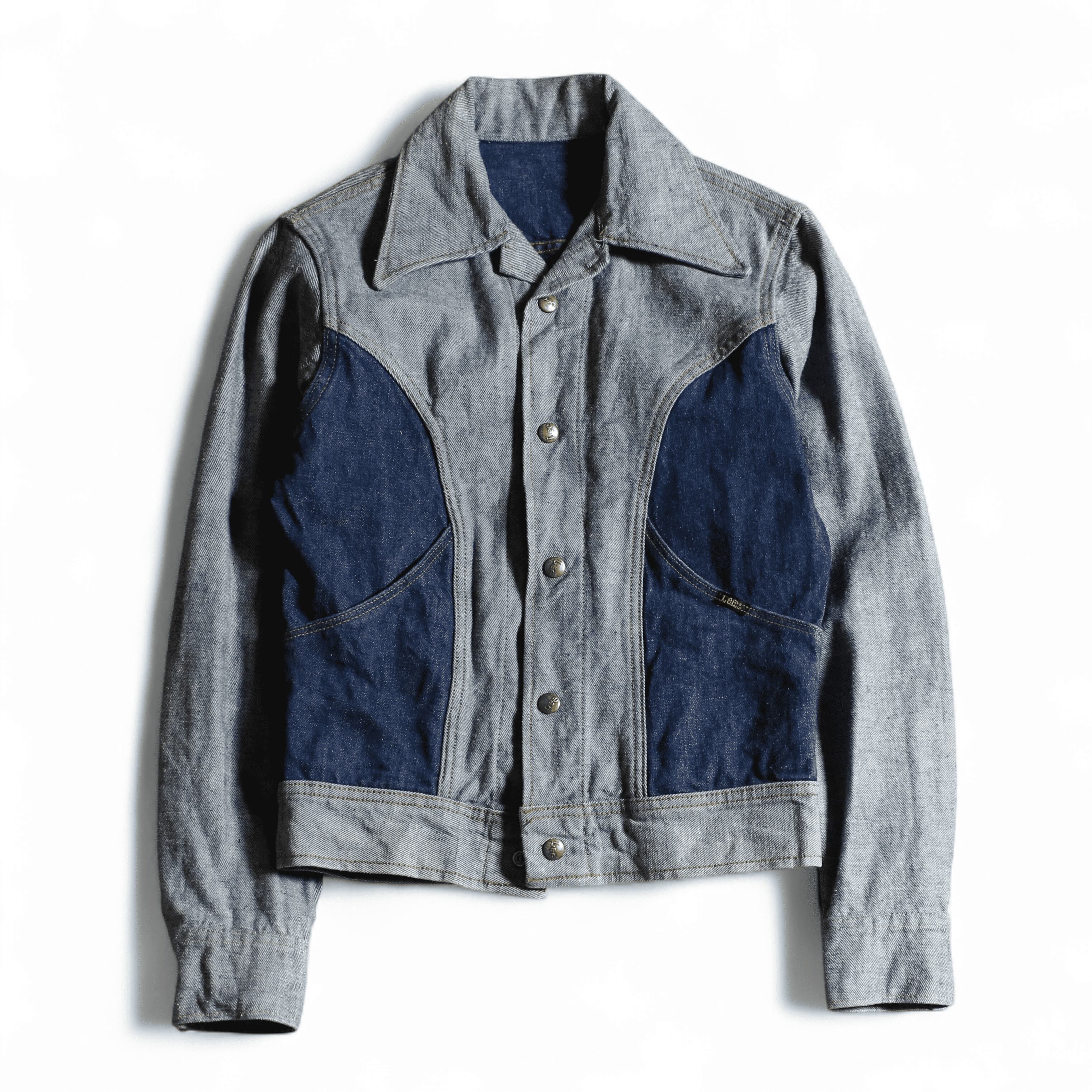 Leeらしい大胆な切り替えが目を惹く、70年代製のリバーシブルデニムジャケット。表裏どちらでも着用できる仕様で、異なるデニムトーンを楽しめる希少なアイテムです。