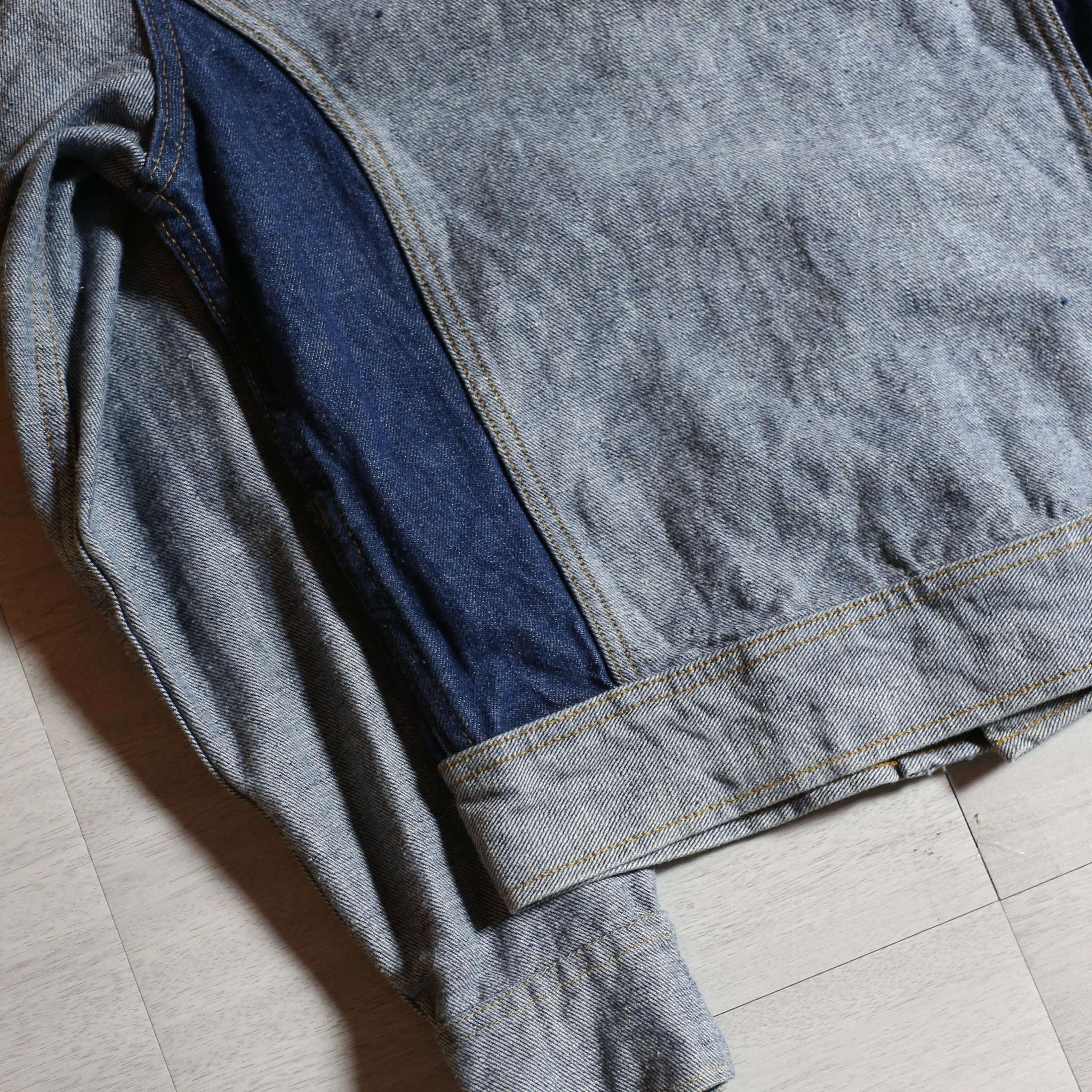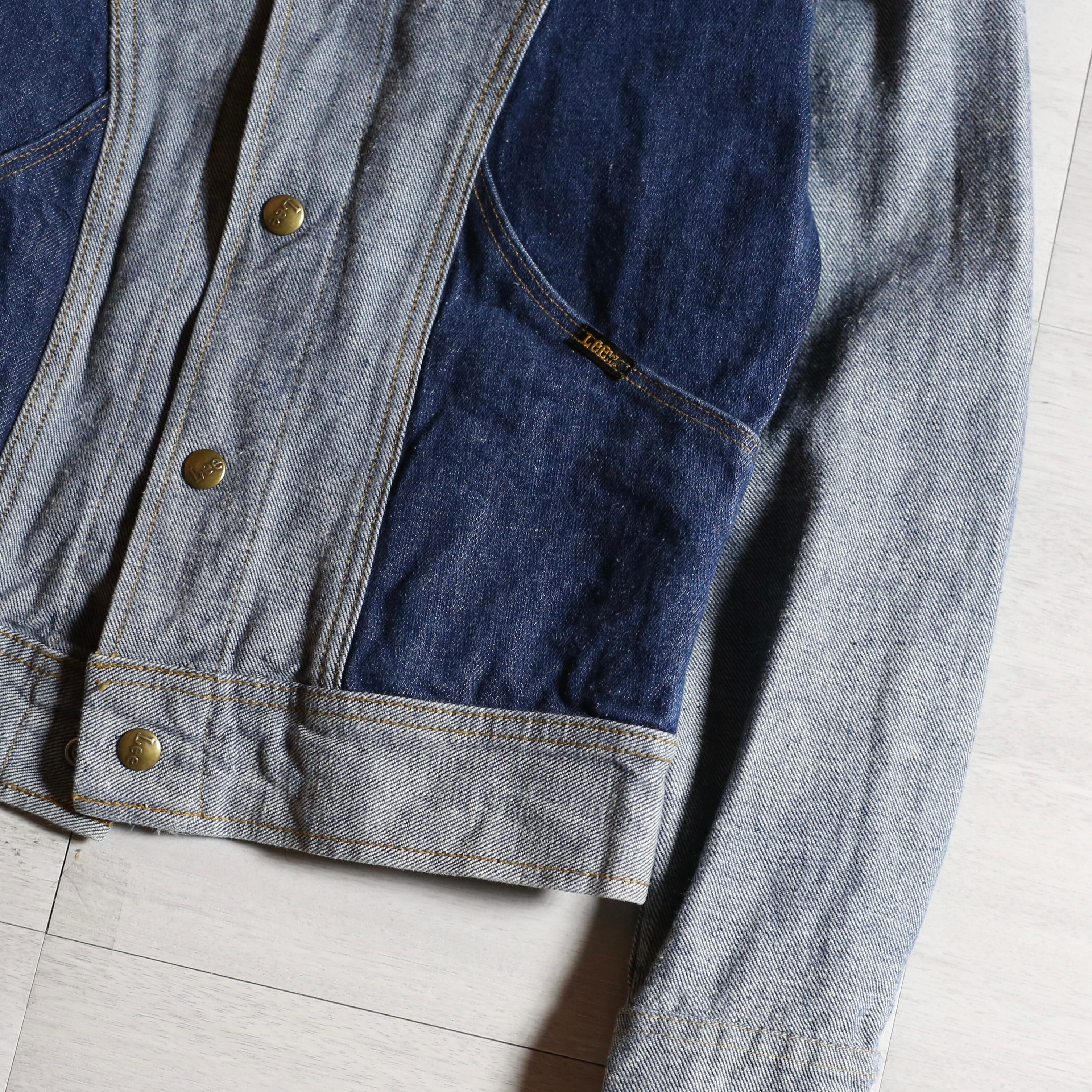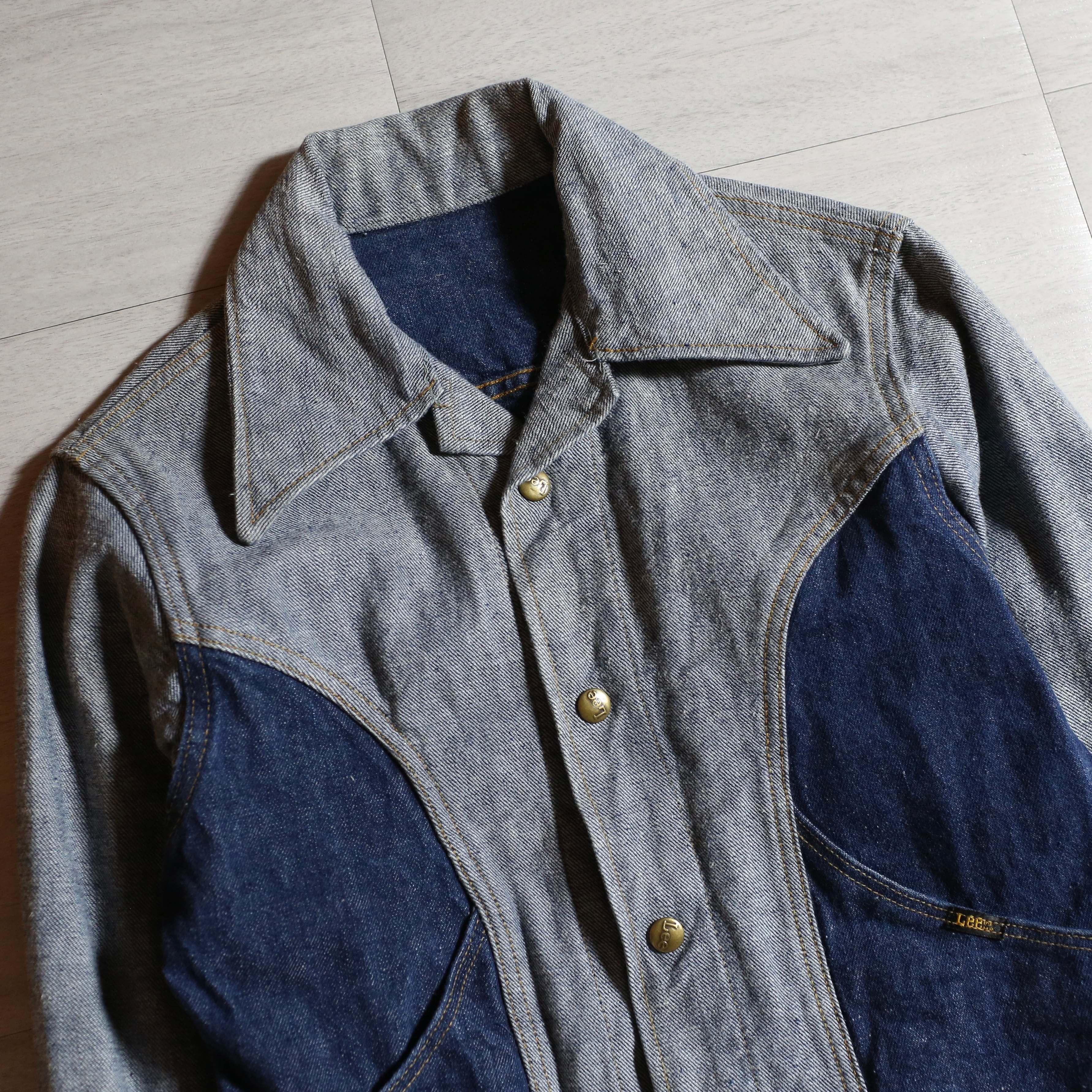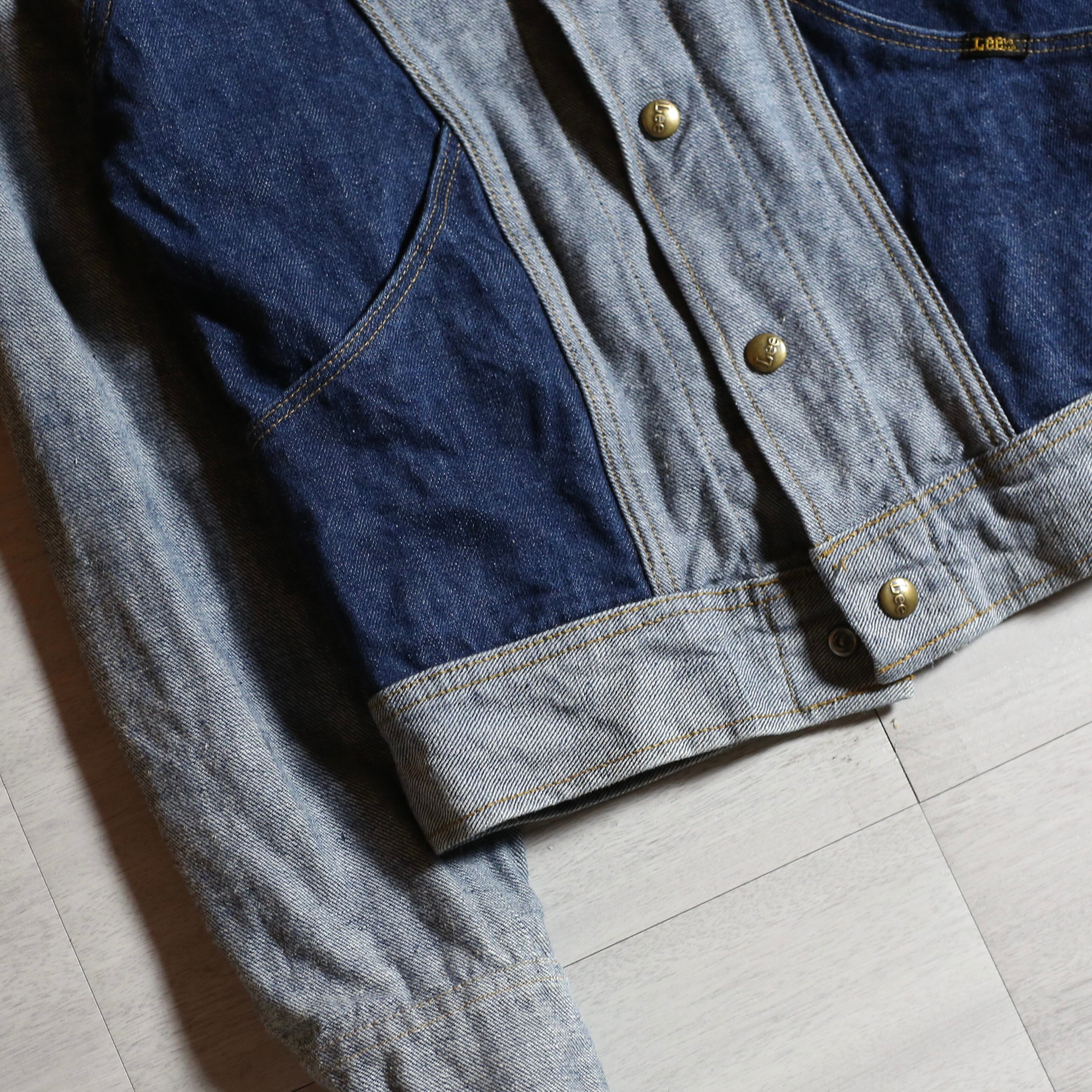Leeらしい大胆な切り替えが目を惹く、70年代製のリバーシブルデニムジャケット。表裏どちらでも着用できる仕様で、異なるデニムトーンを楽しめる希少なアイテムです。