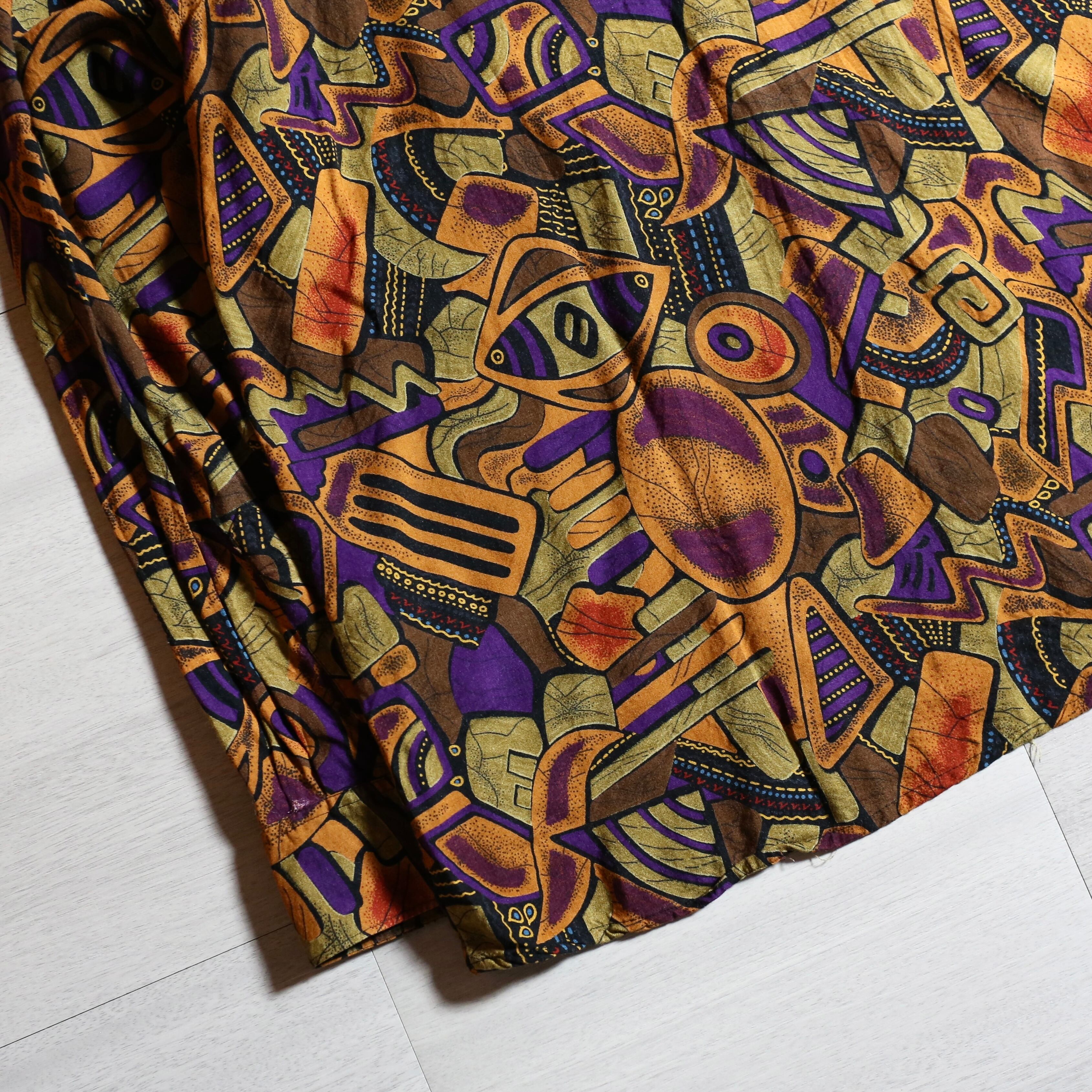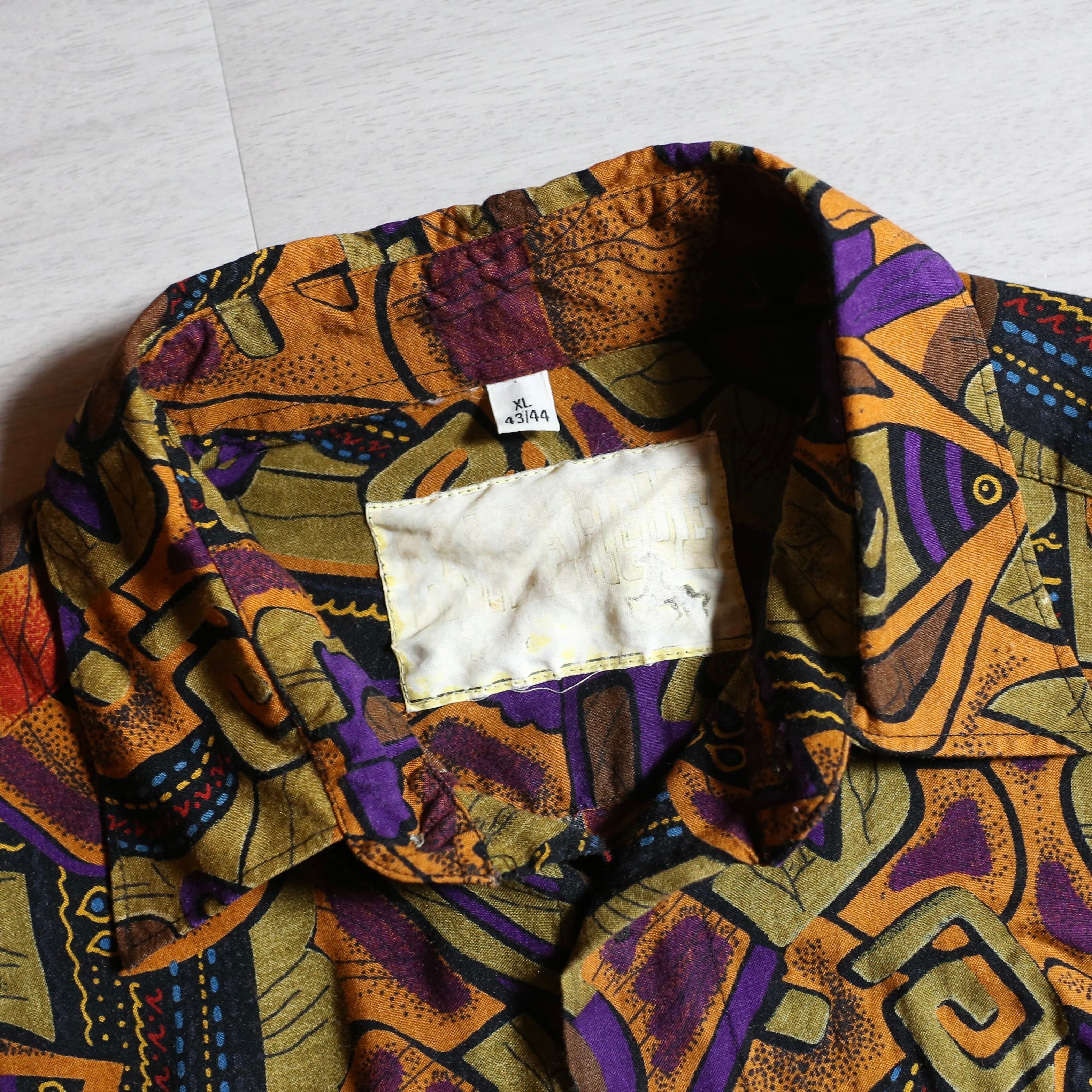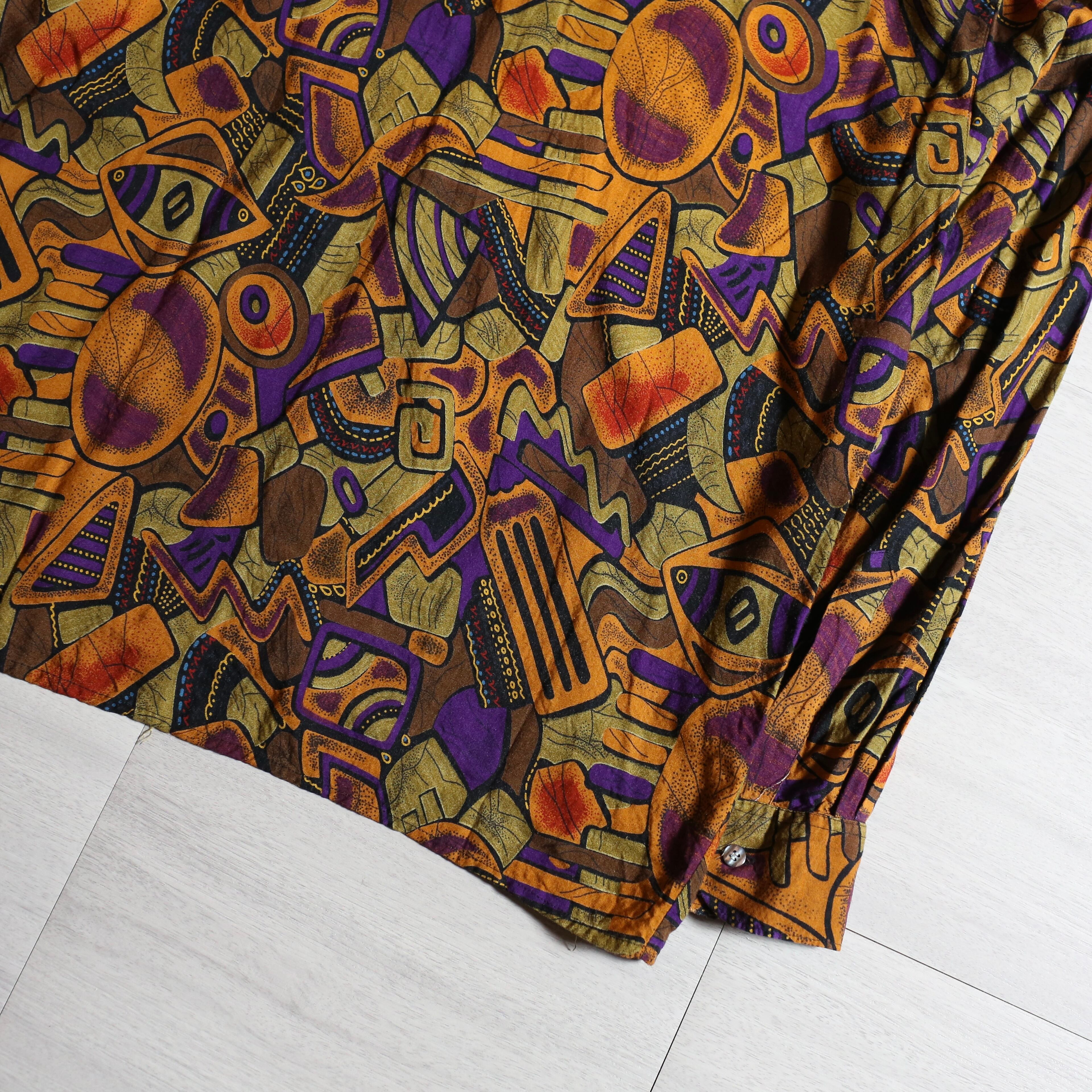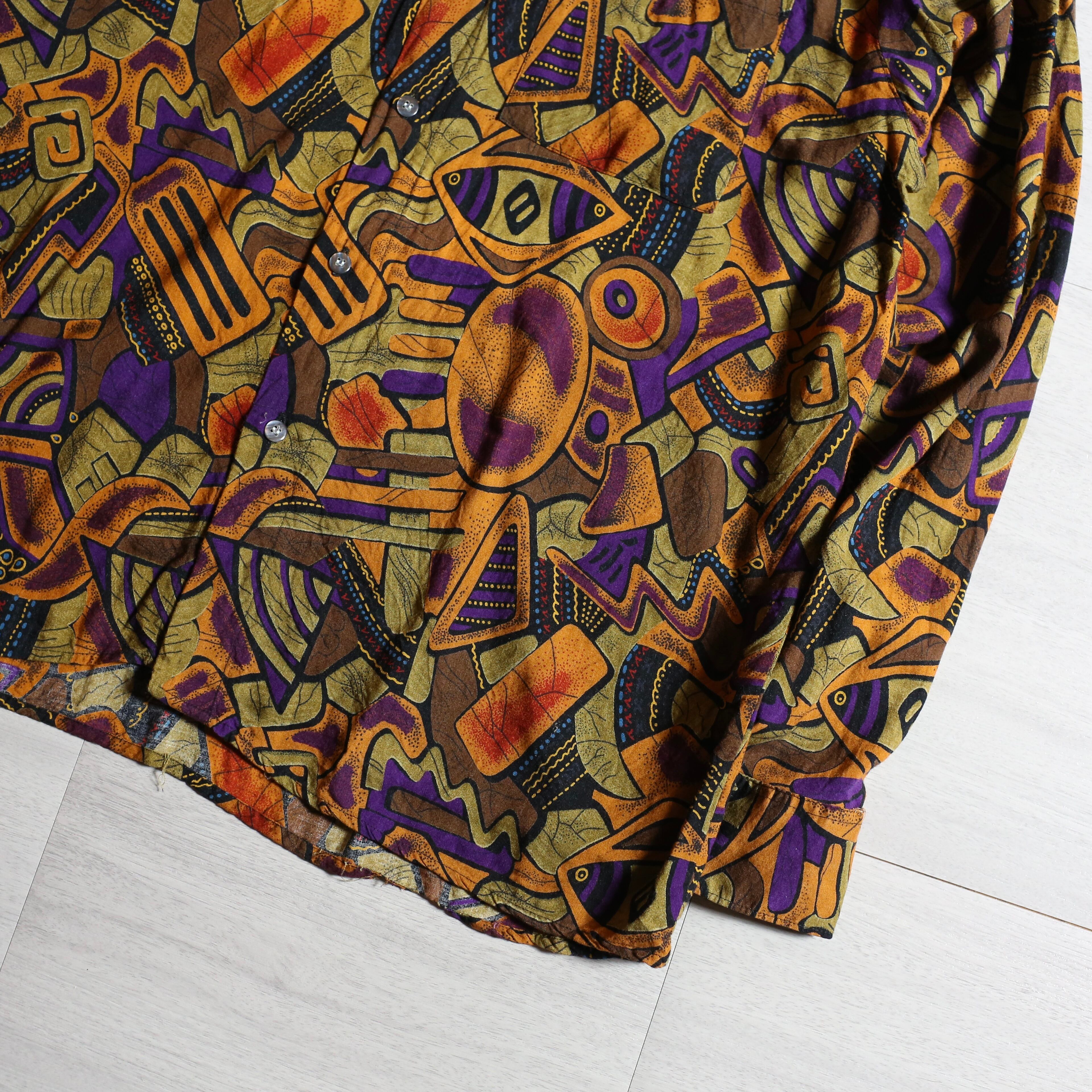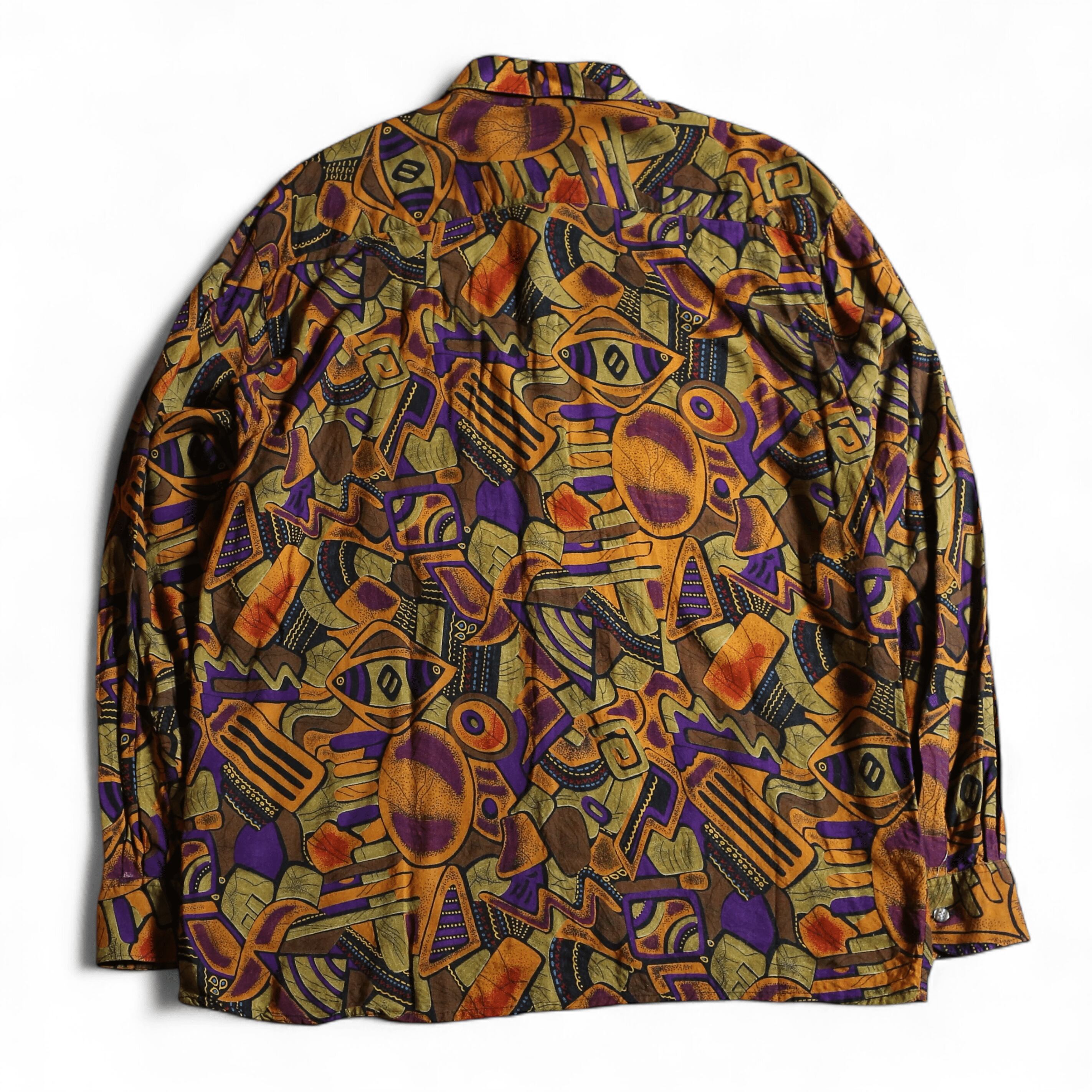 90s~ CAMARGUE Rayon ALL-OVER Pattern Shirt カマルグ 総柄シャツ レーヨンシャツ 長袖シャツ