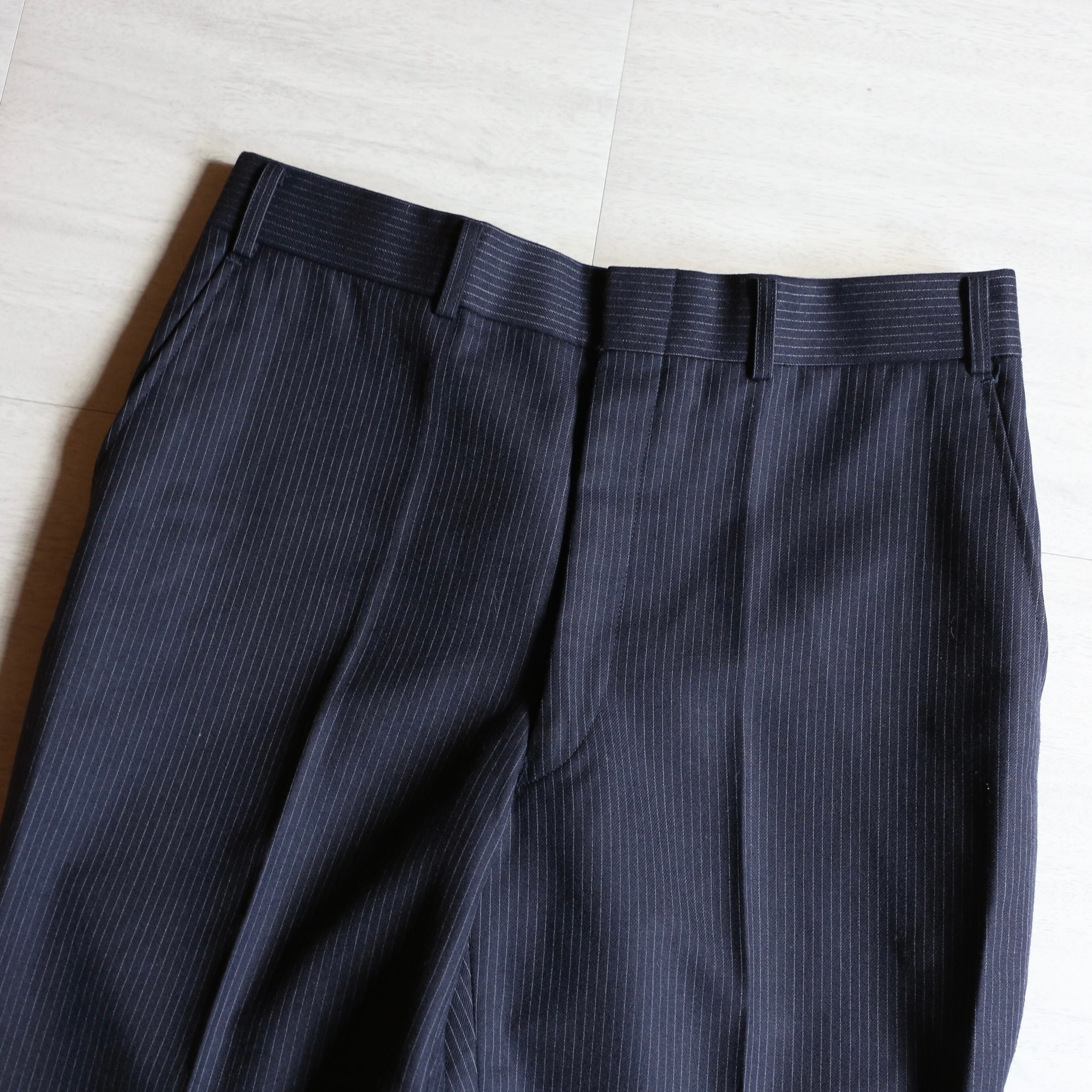 80s~90s UNKNOWN Center Crease Wool 100% Slacks 80年代〜90年代 ブランド不明 2タック ウール100% スラックス ダークネイビー 濃紺