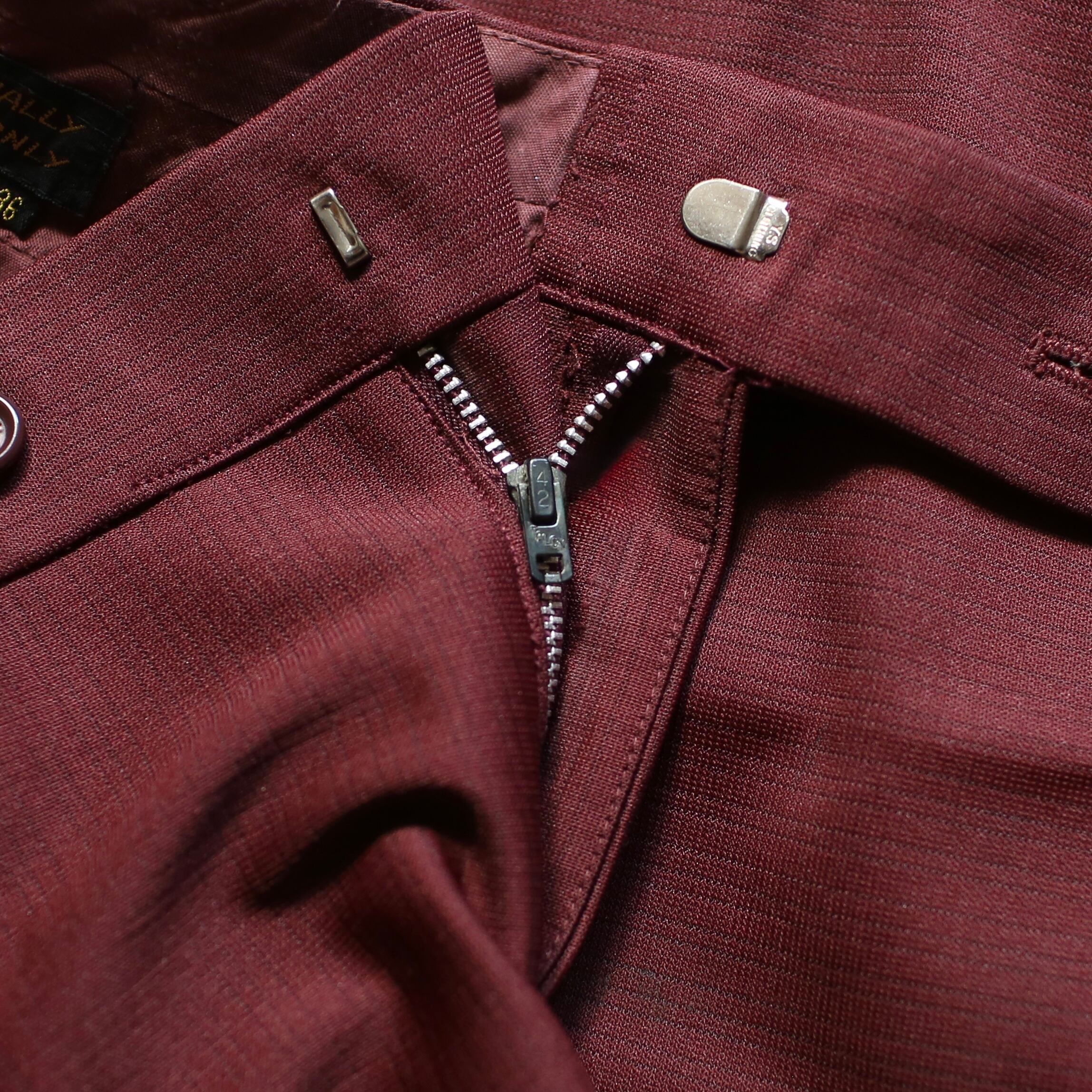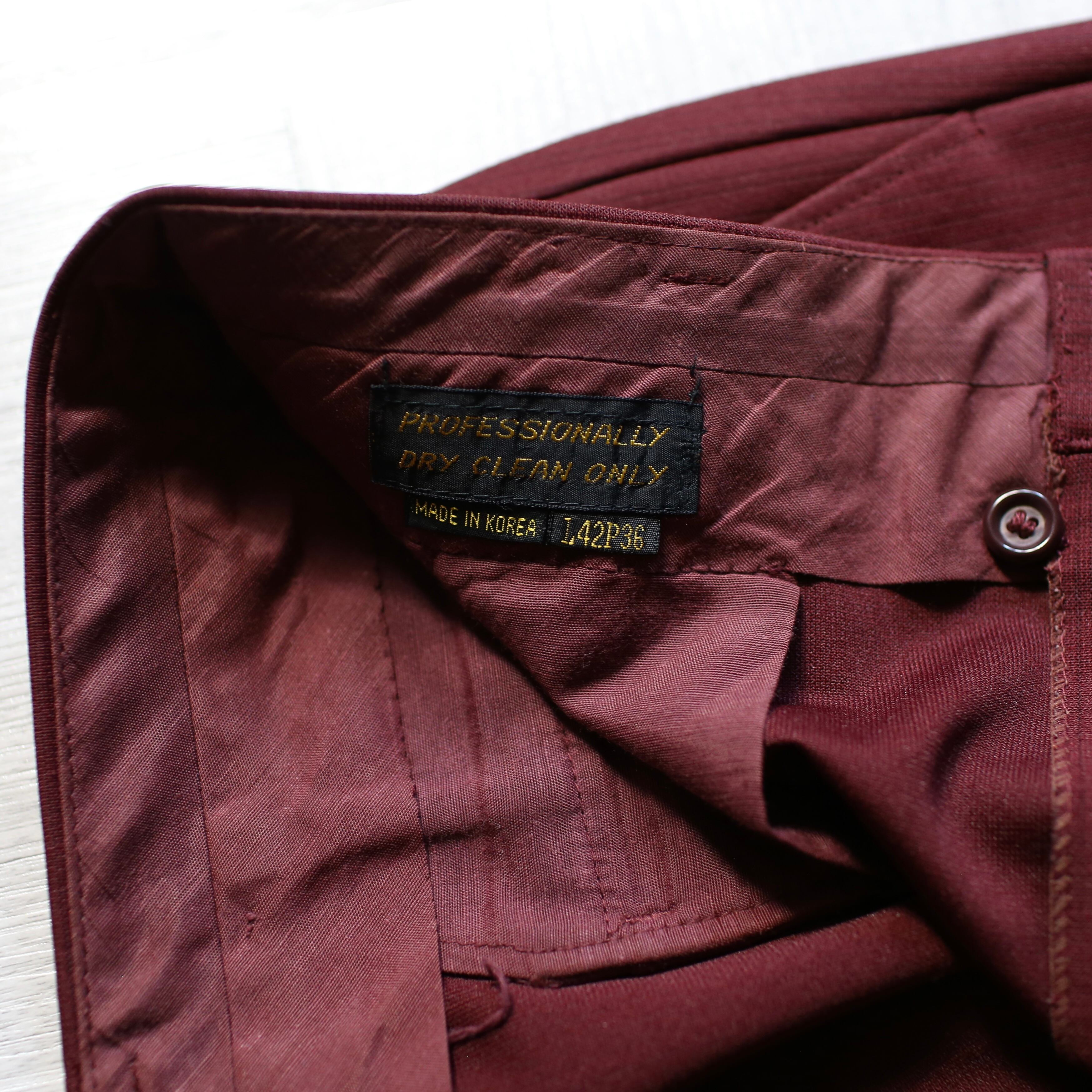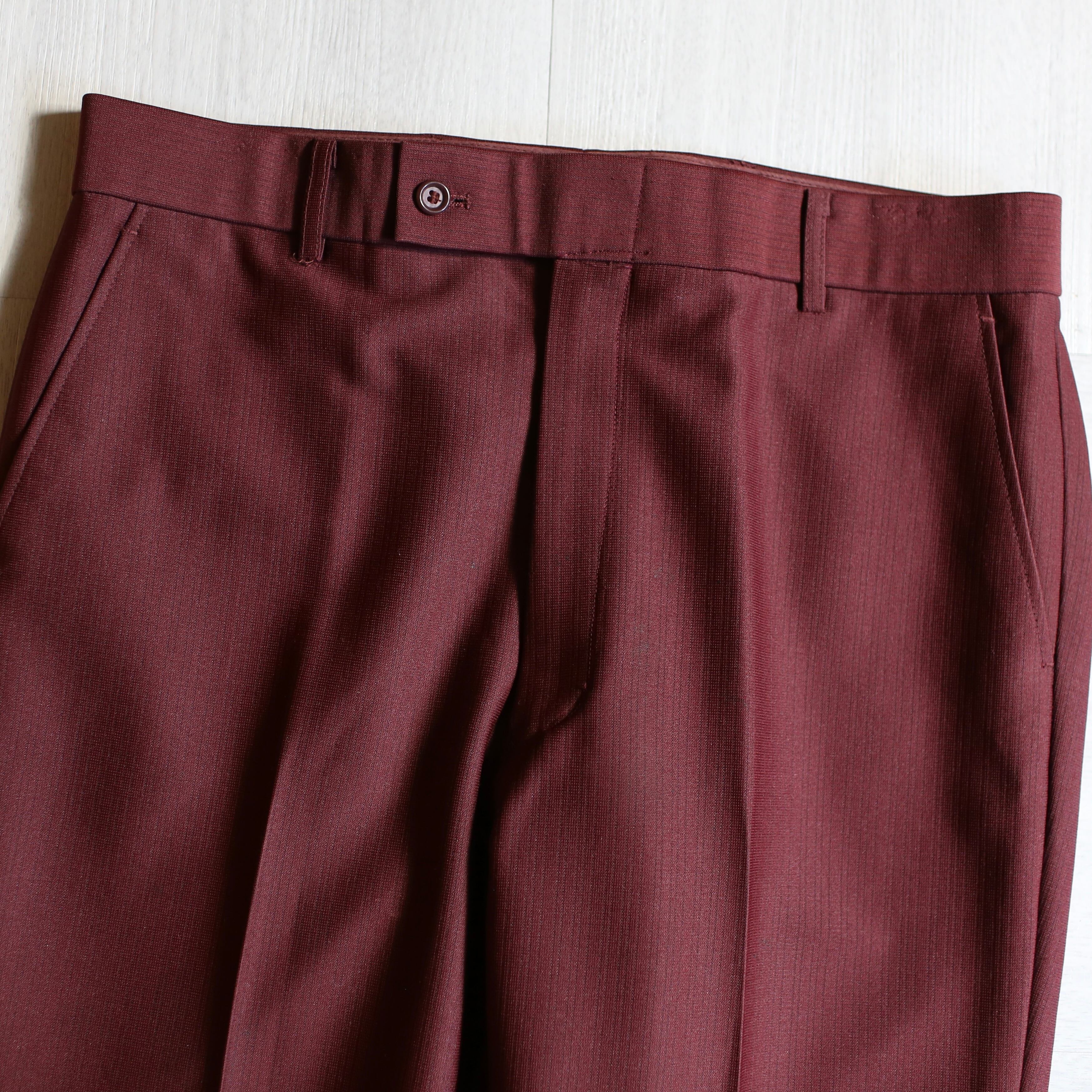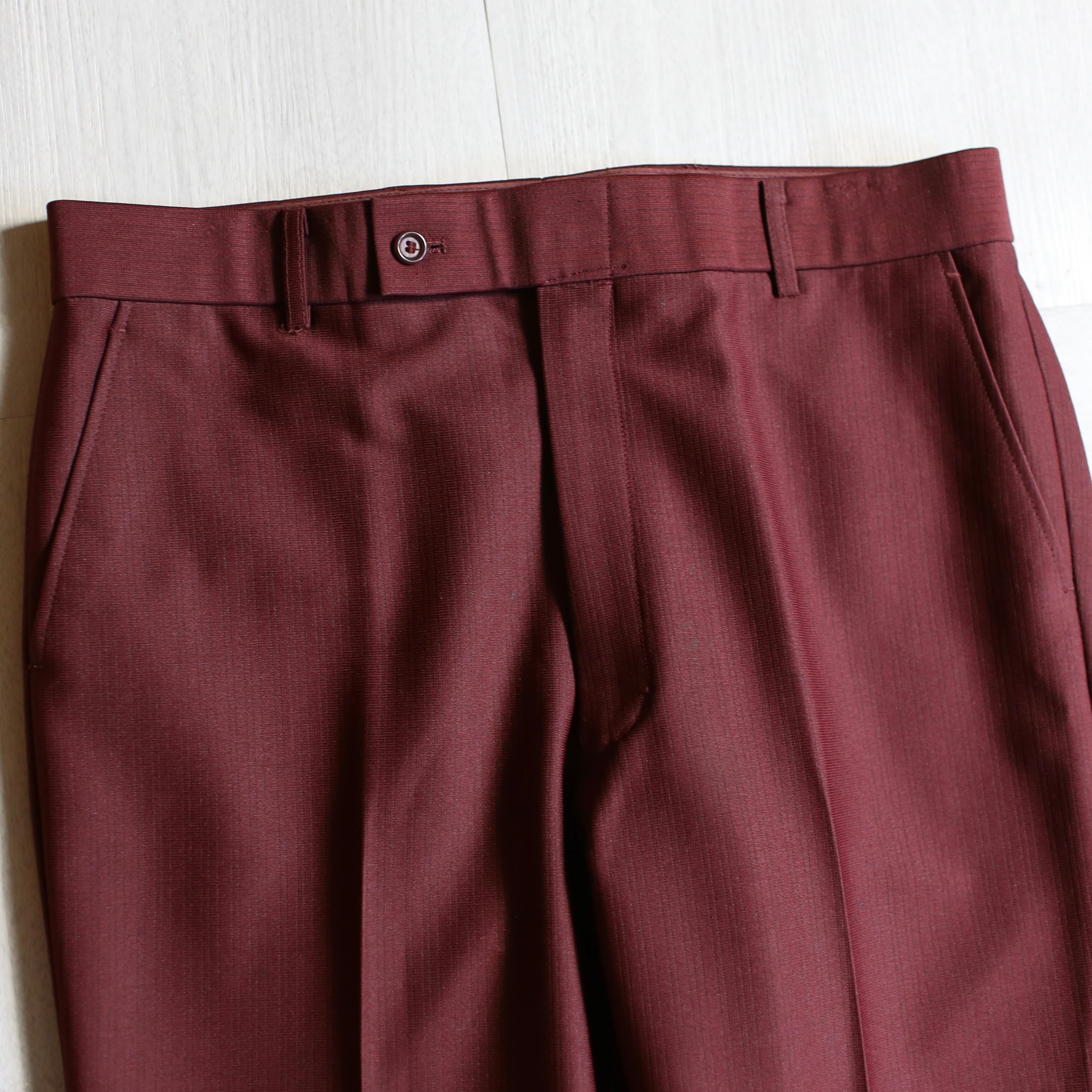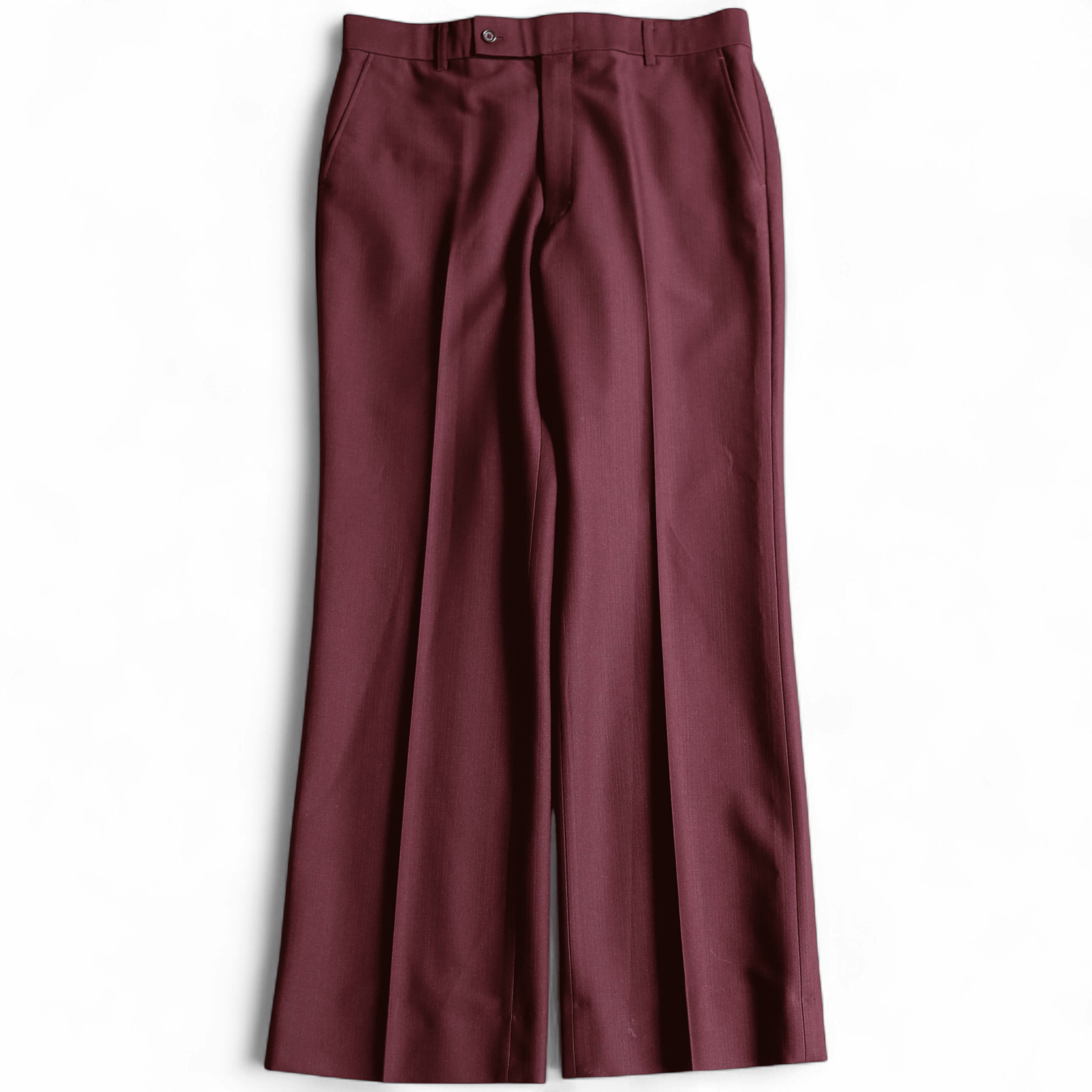 70s~ UNKNOWN Vintage Center Crease Flare Slacks MADE IN KOREA 70年代〜 ブランド不明 ヴィンテージ センタープレス フレアスラックス 42TALON バーガンディ