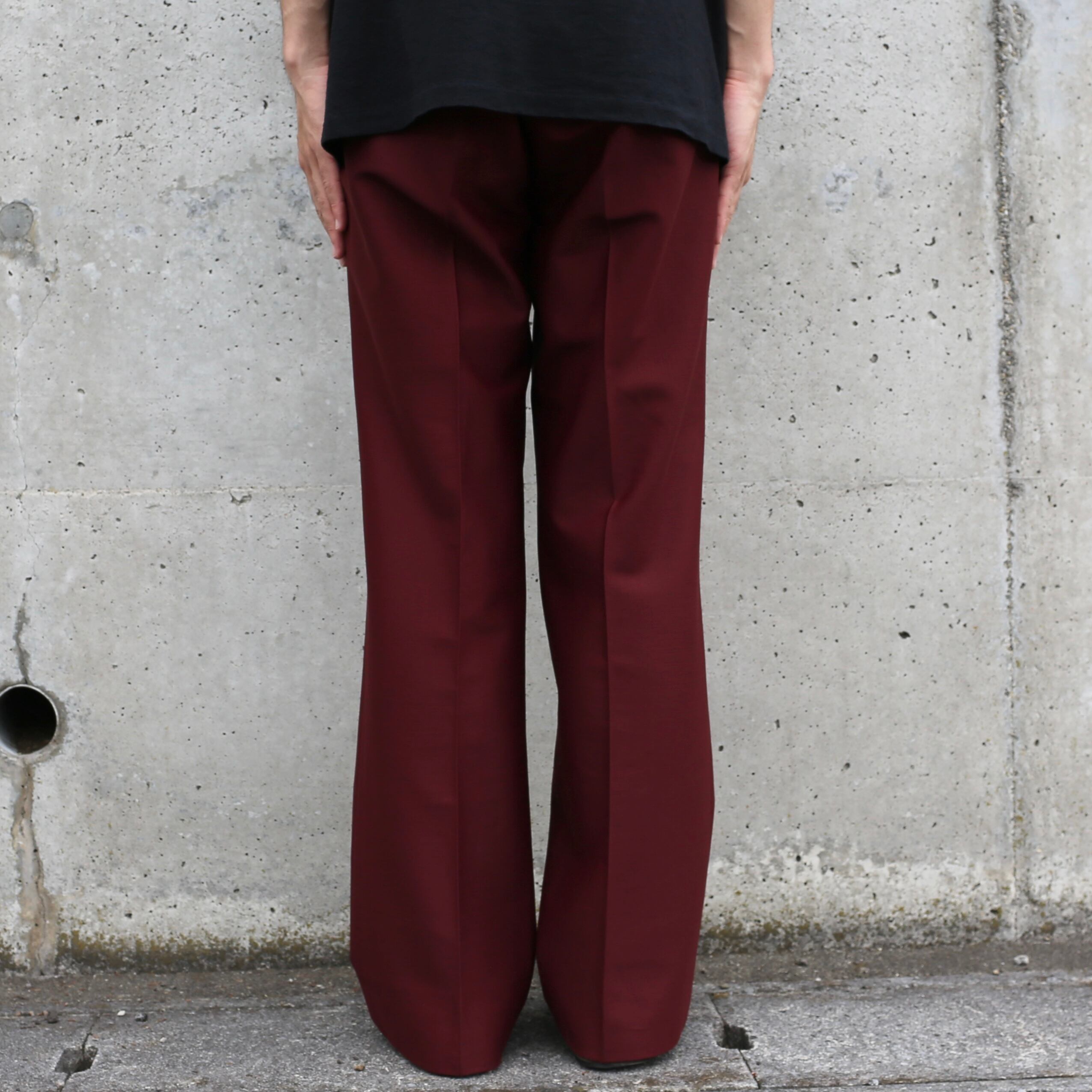 美しい広がりのあるフレアシルエットに、深みのあるワインレッドが映える一本。