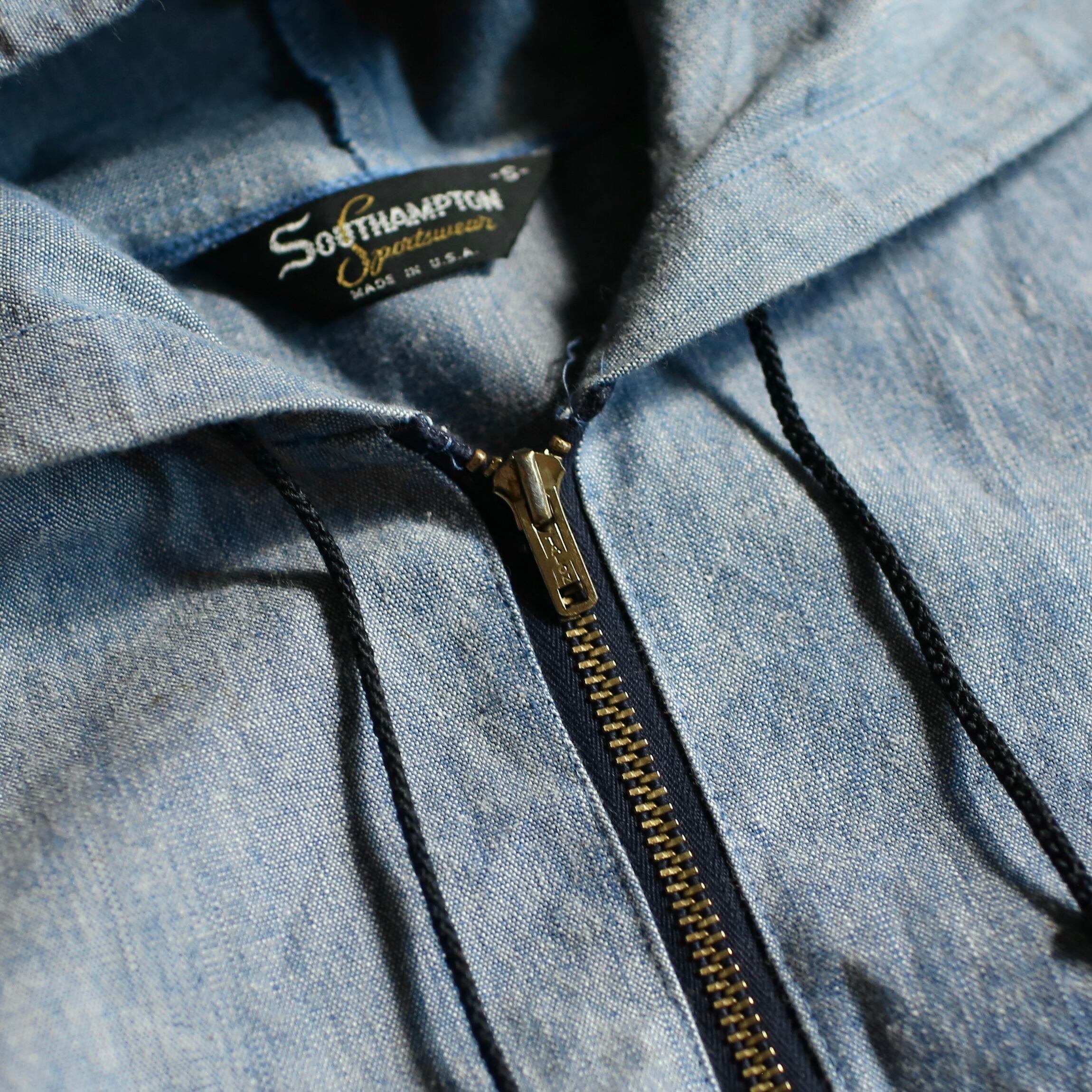 60s〜70s Southampton Chambray Full-Zip Hoodie “TALON Zipper” サウサンプトン ヴィンテージ シャンブレー フルジップ パーカー インディゴブルー