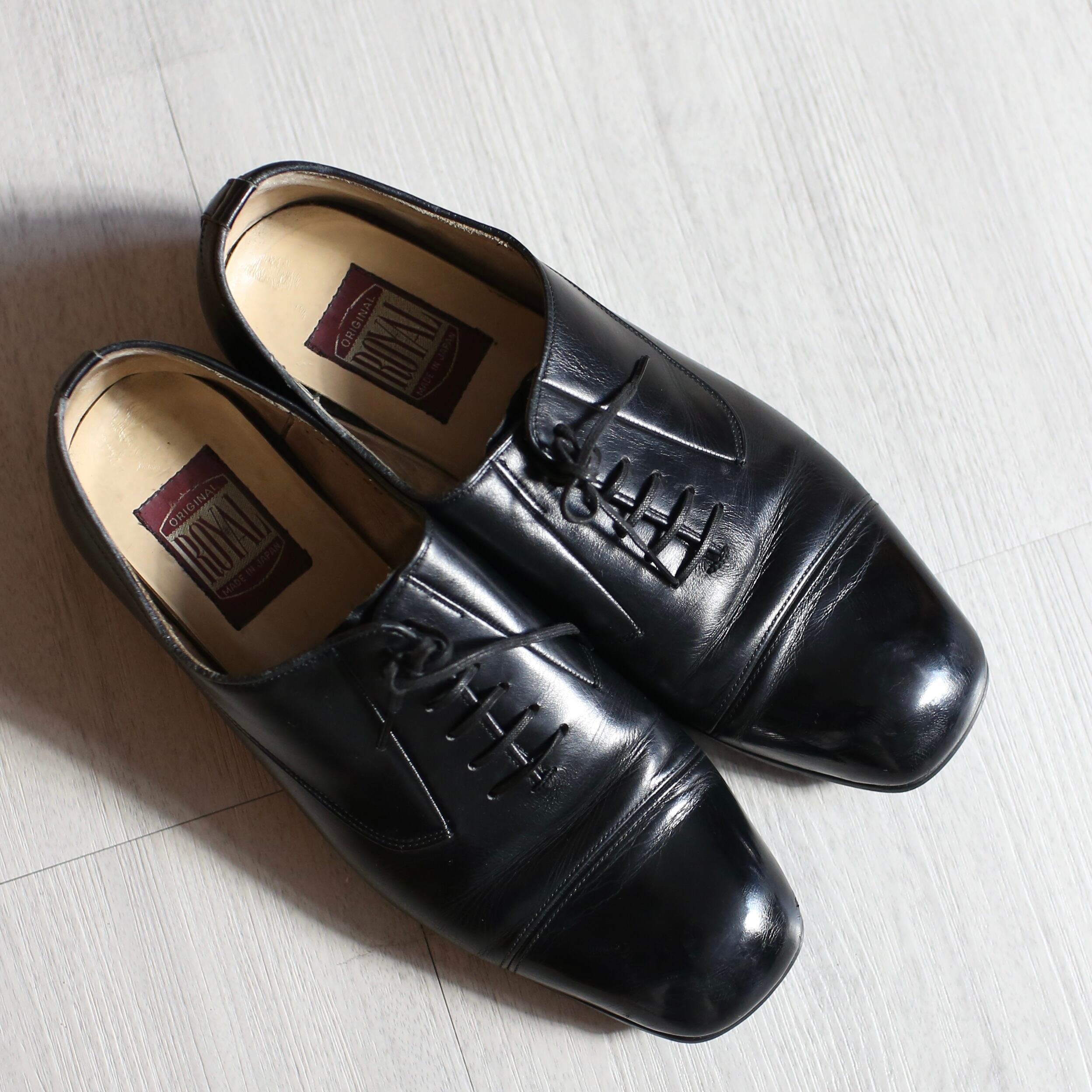 80s~90s ROYAL Made in Japan Vintage Leather Shoes 80年代〜90年代 ロイヤル 日本製 ヴィンテージ レザーシューズ 内羽根ストレートチップ ブラック 黒