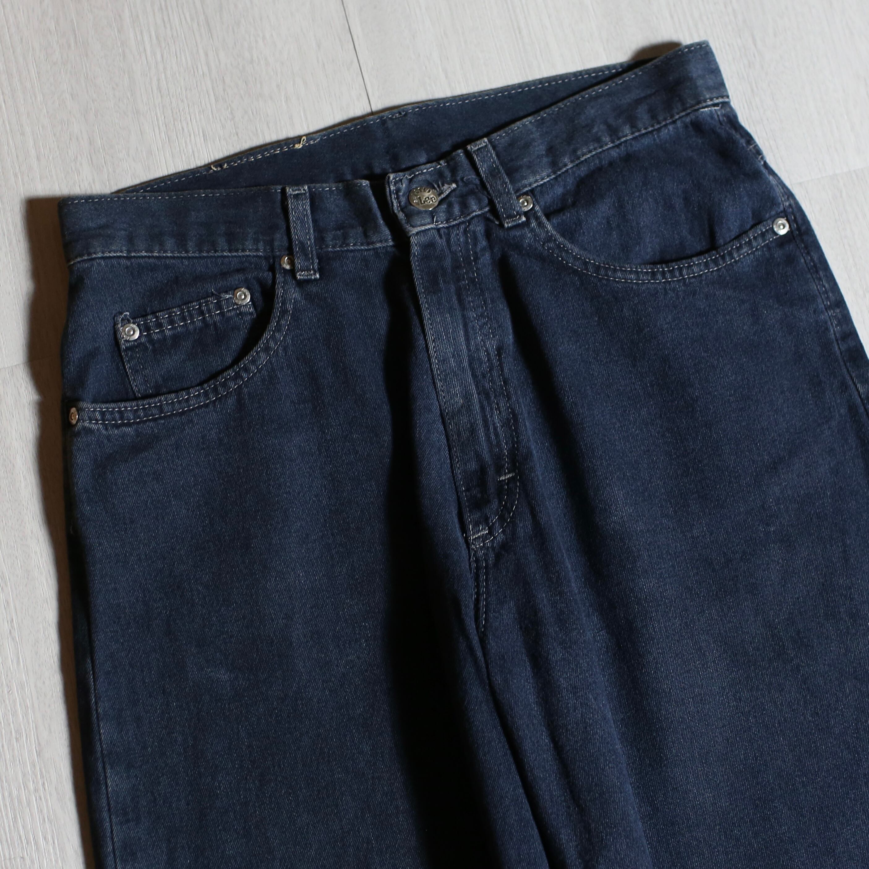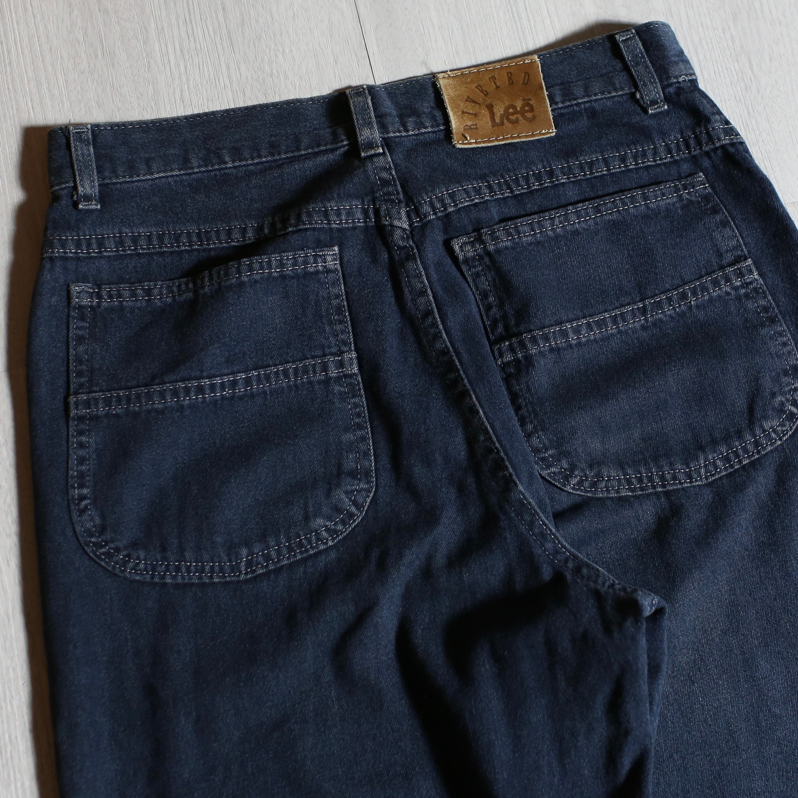 90s Lee Wide Straight Denim Pants リー デニムパンツ 古着 ユーズド加工 ワイドストレート ダークネイビー 紺