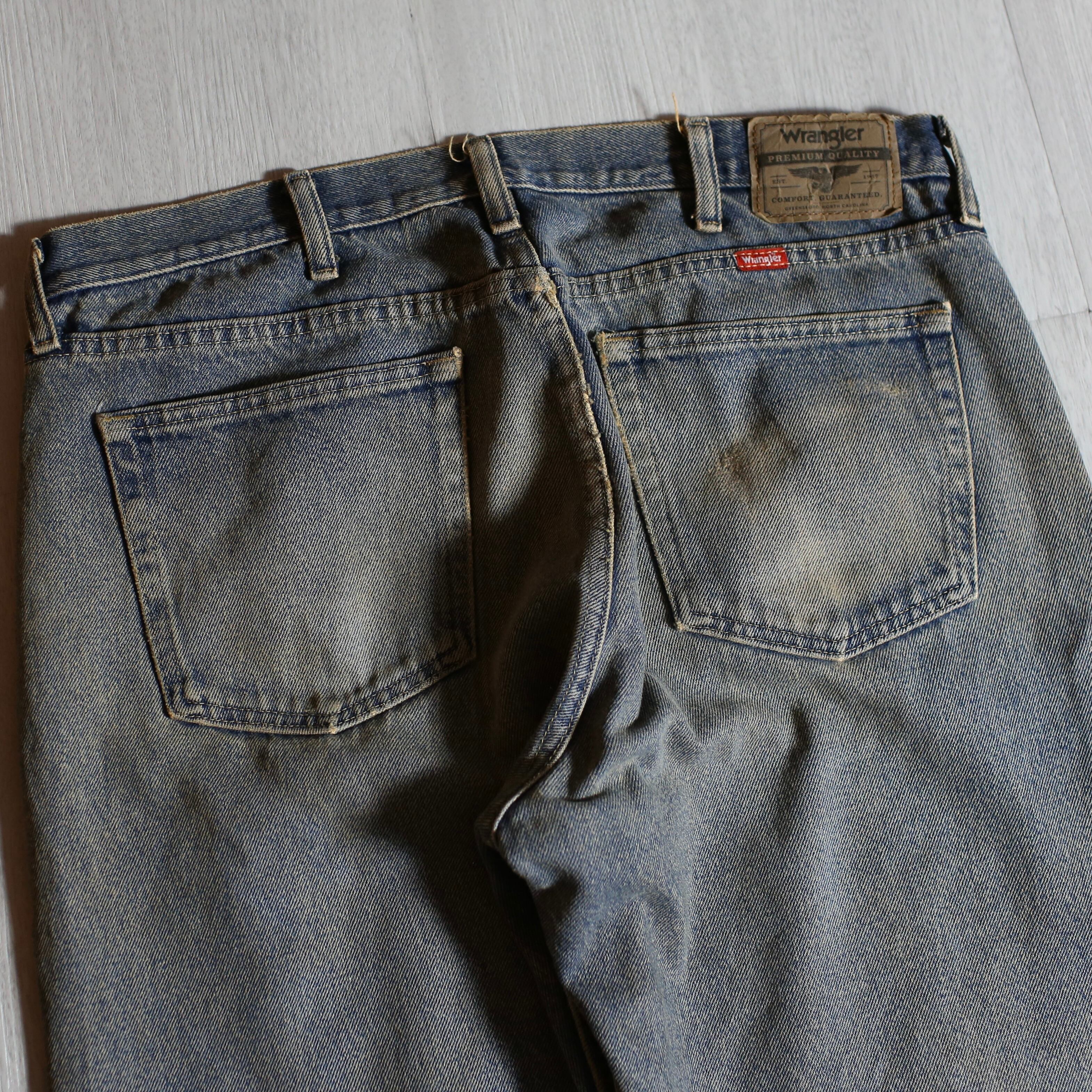 Wrangler Faded Wide Tapered Denim Pants "PREMIUM QUALITY" ラングラー デニムパンツ 古着 縦落ち ユーズド加工 ワイド テーパード