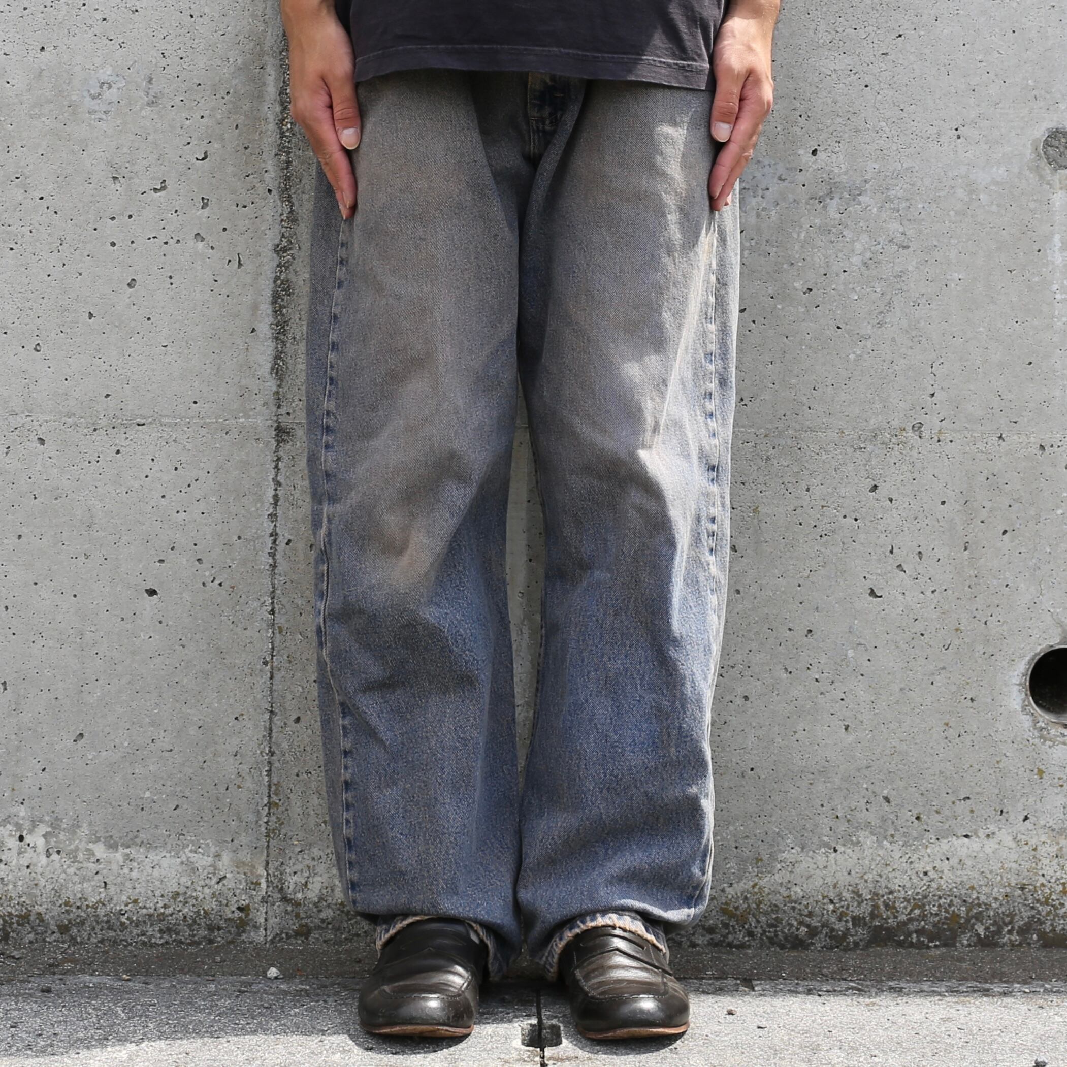 フェードがかった色味や色落ち、裾のダメージ、ワイド目なシルエットが非常に魅力的な個体で、惹かれる方も多いと思います!