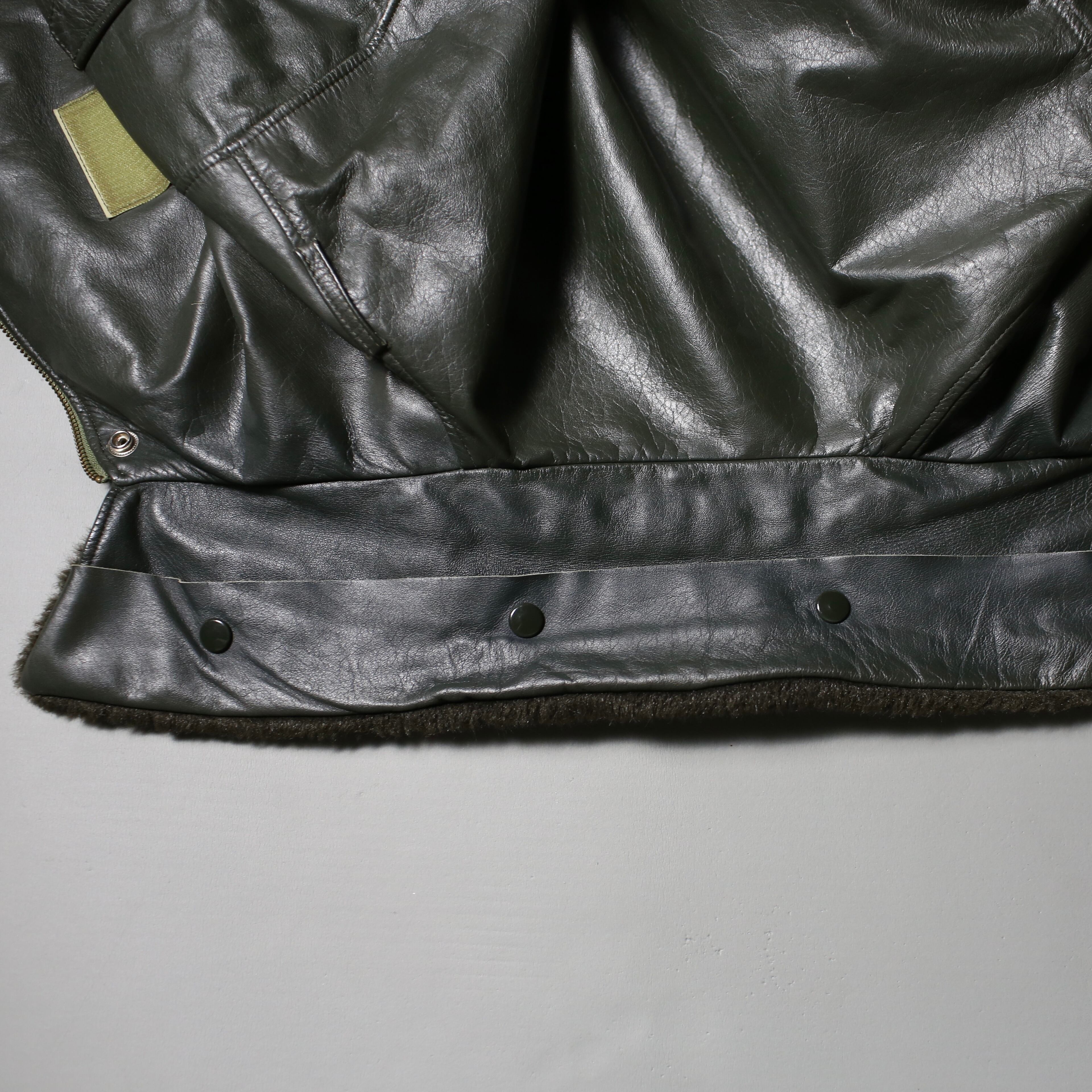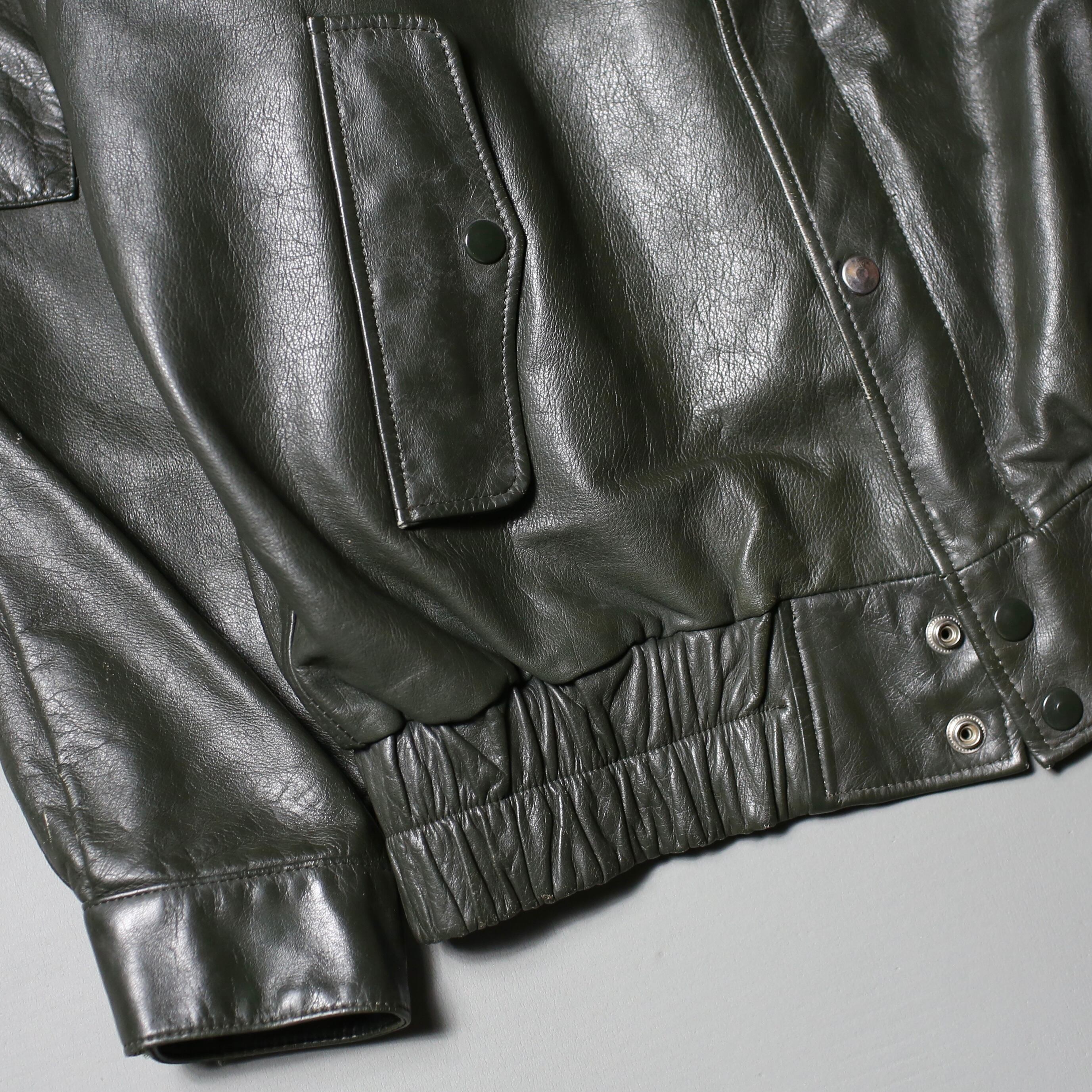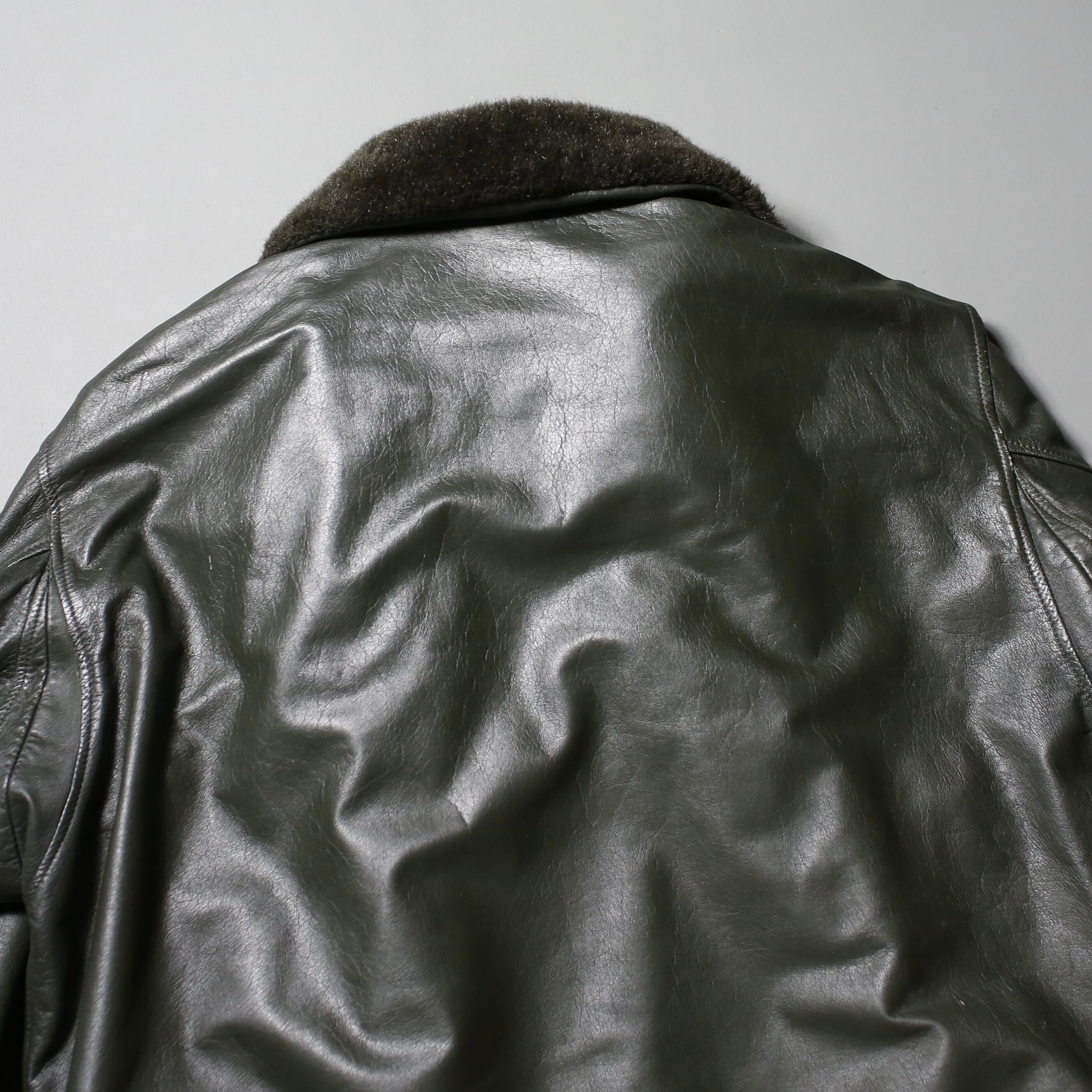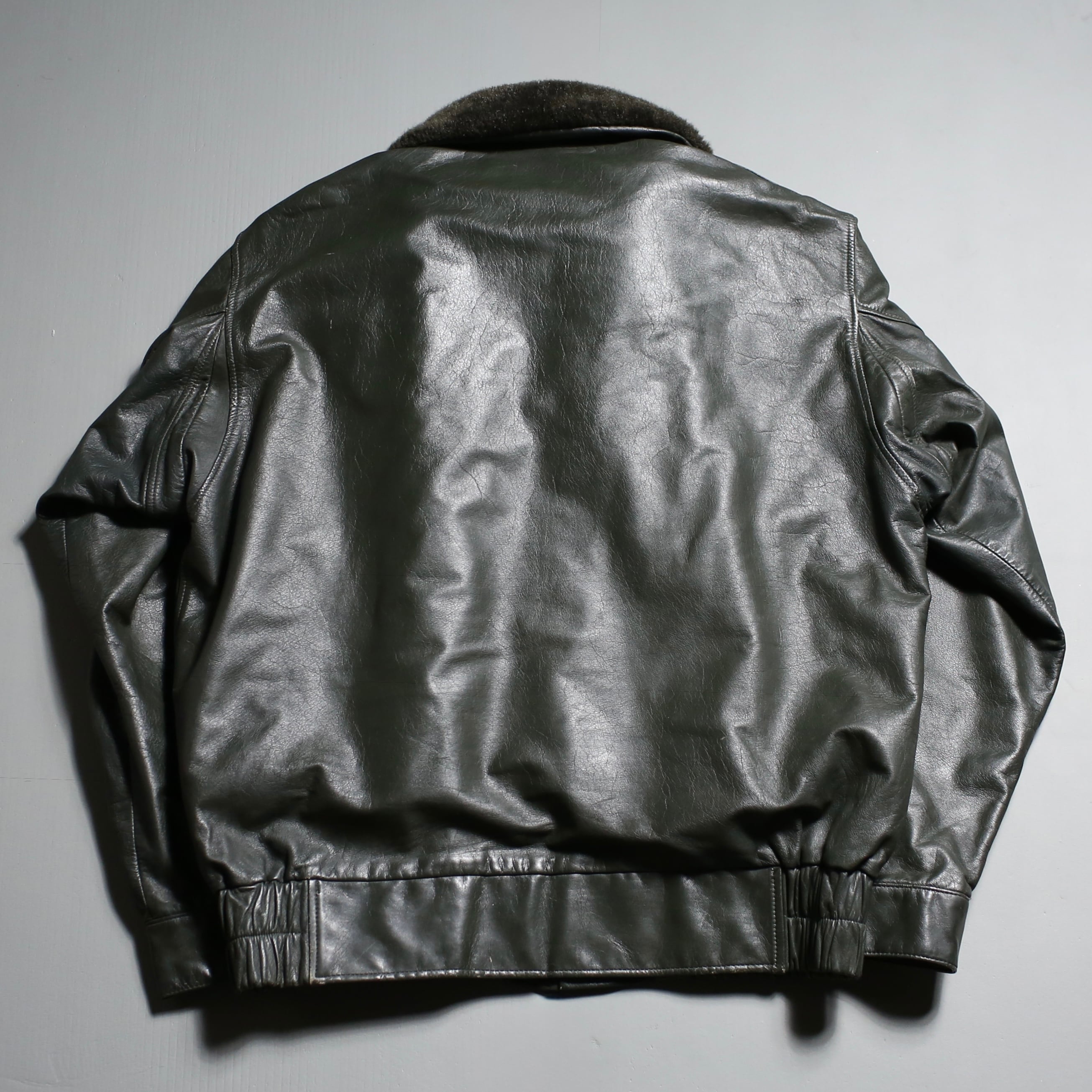 90s ECOLE G-1 Style Leather Flight Jacket 90年代 エコール G-1調 レザーフライトジャケット ライナー付き ダークカーキ 深緑 短丈