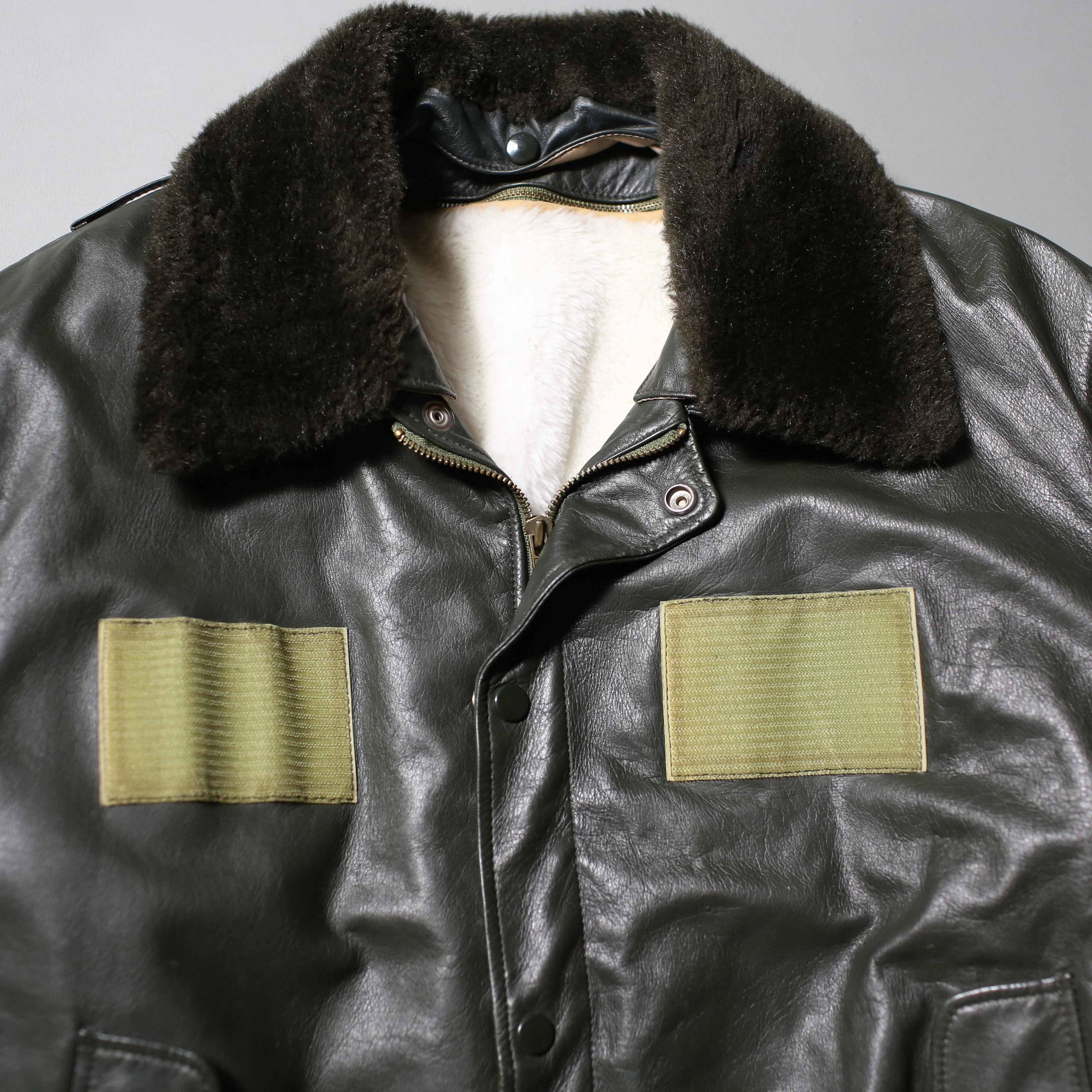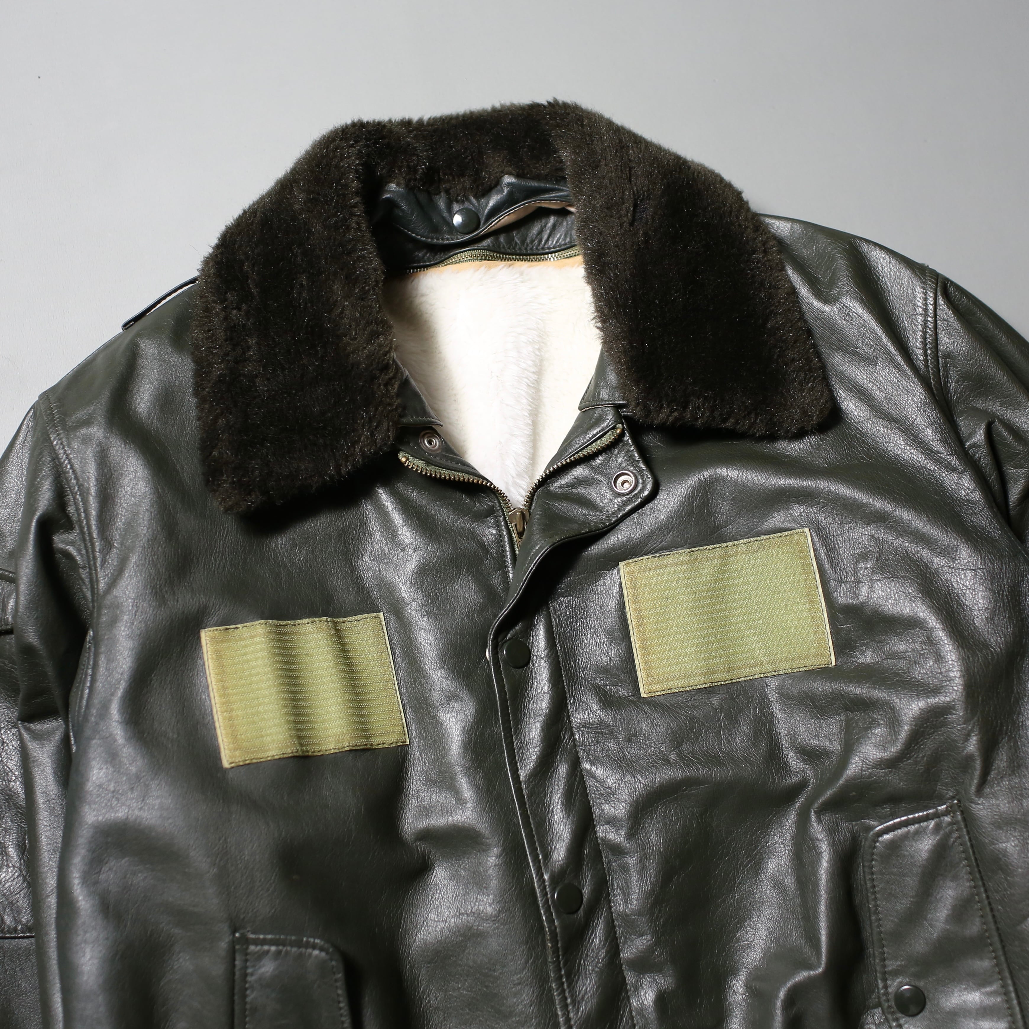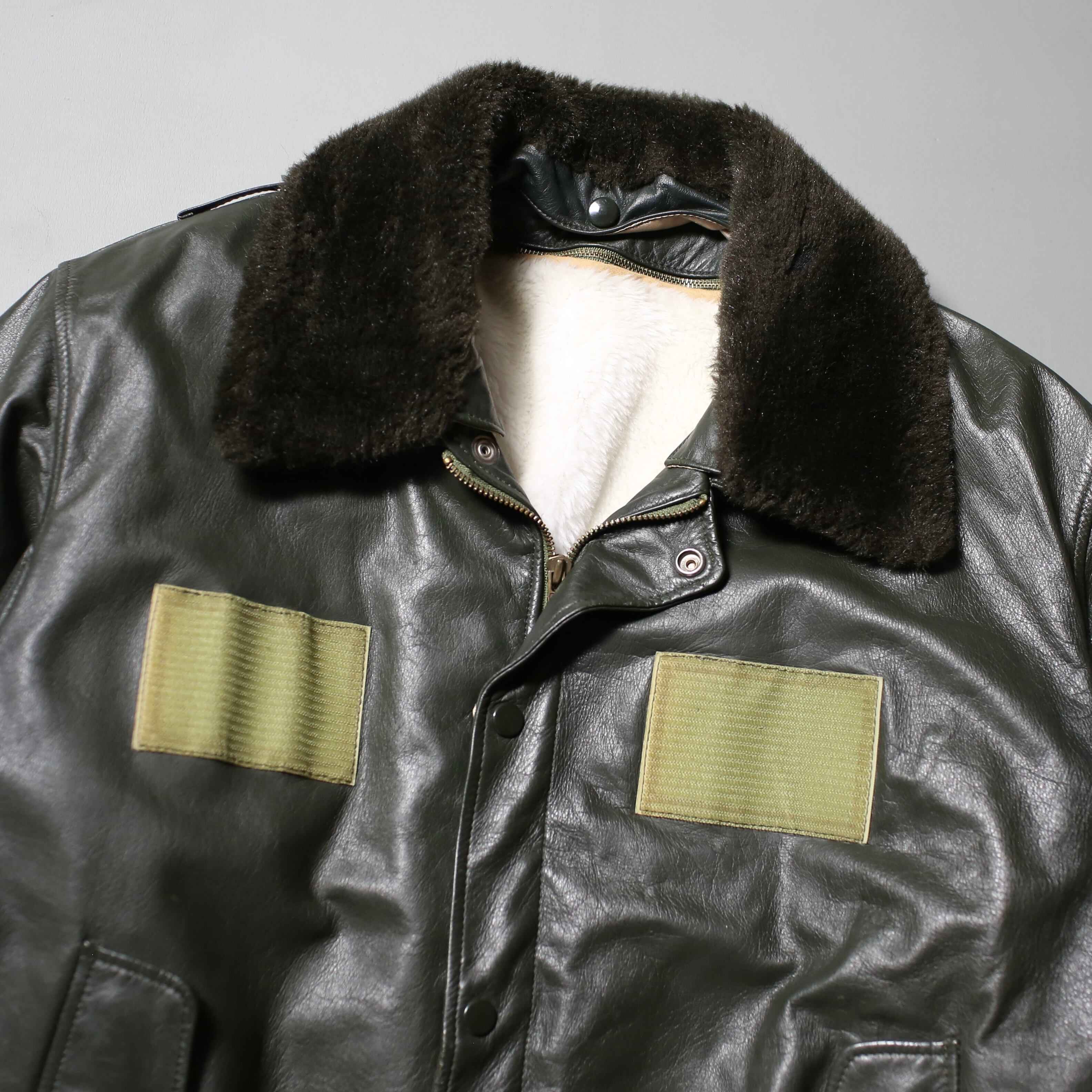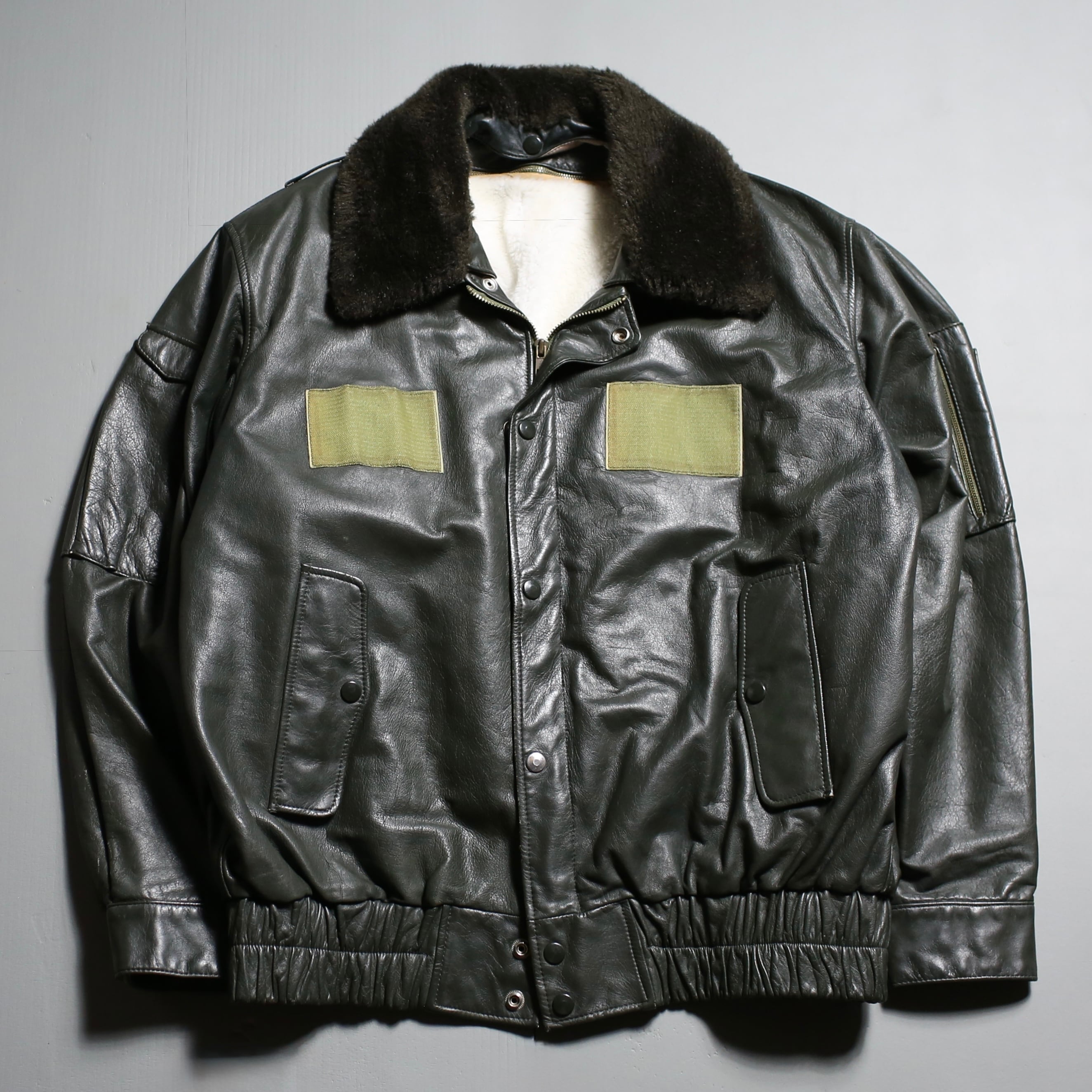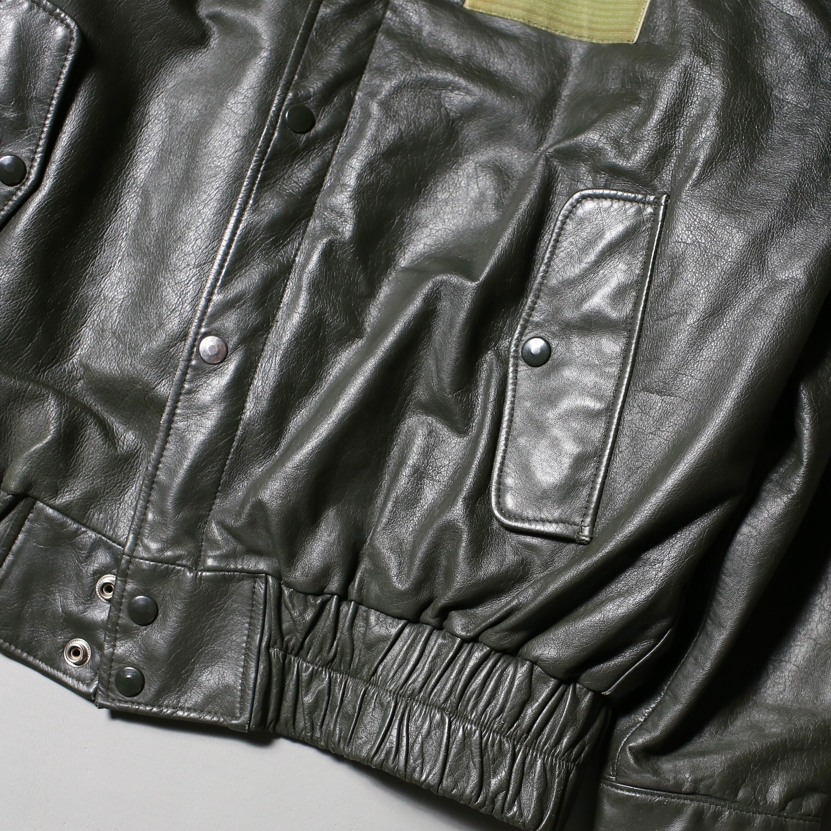 90s ECOLE G-1 Style Leather Flight Jacket 90年代 エコール G-1調 レザーフライトジャケット ライナー付き ダークカーキ 深緑 短丈