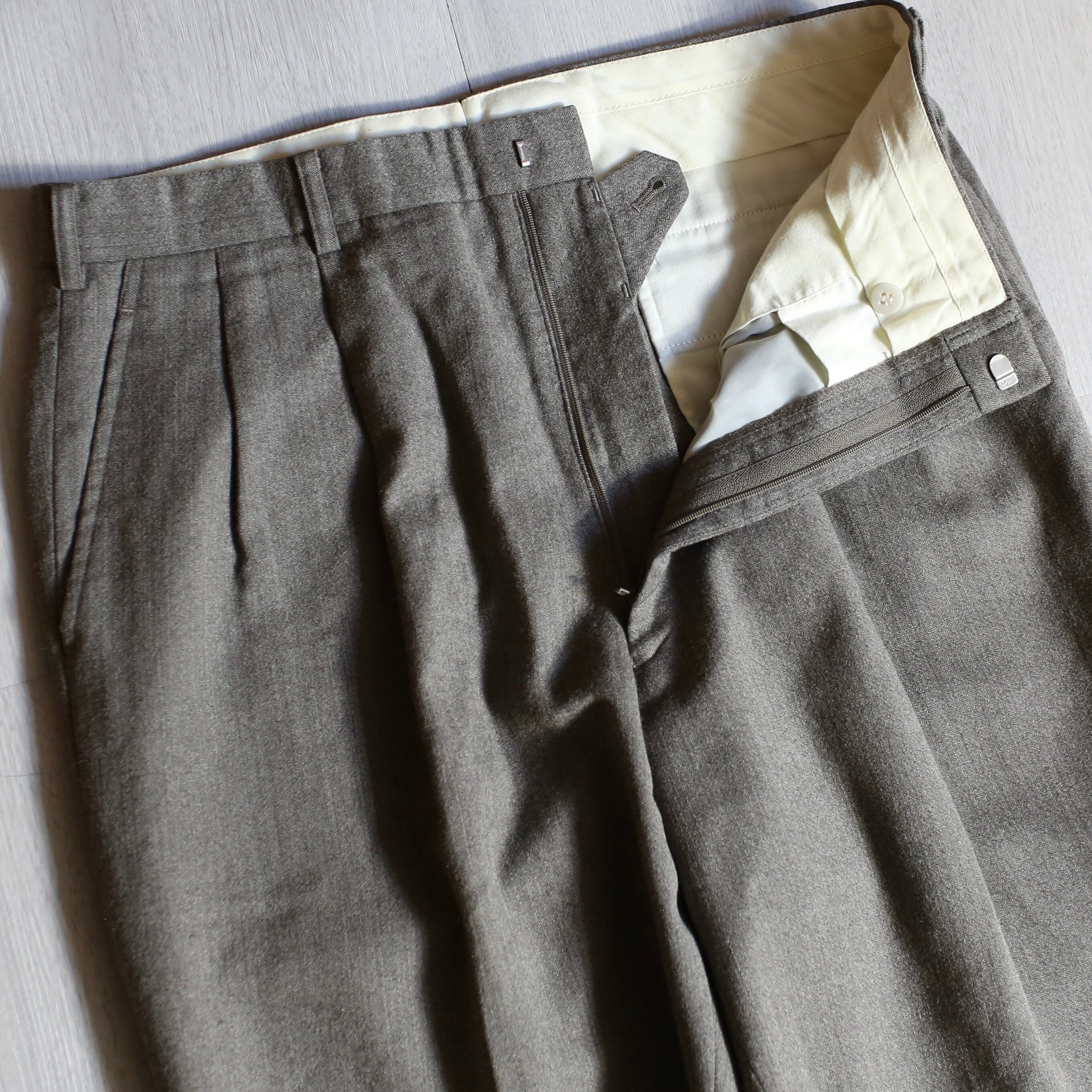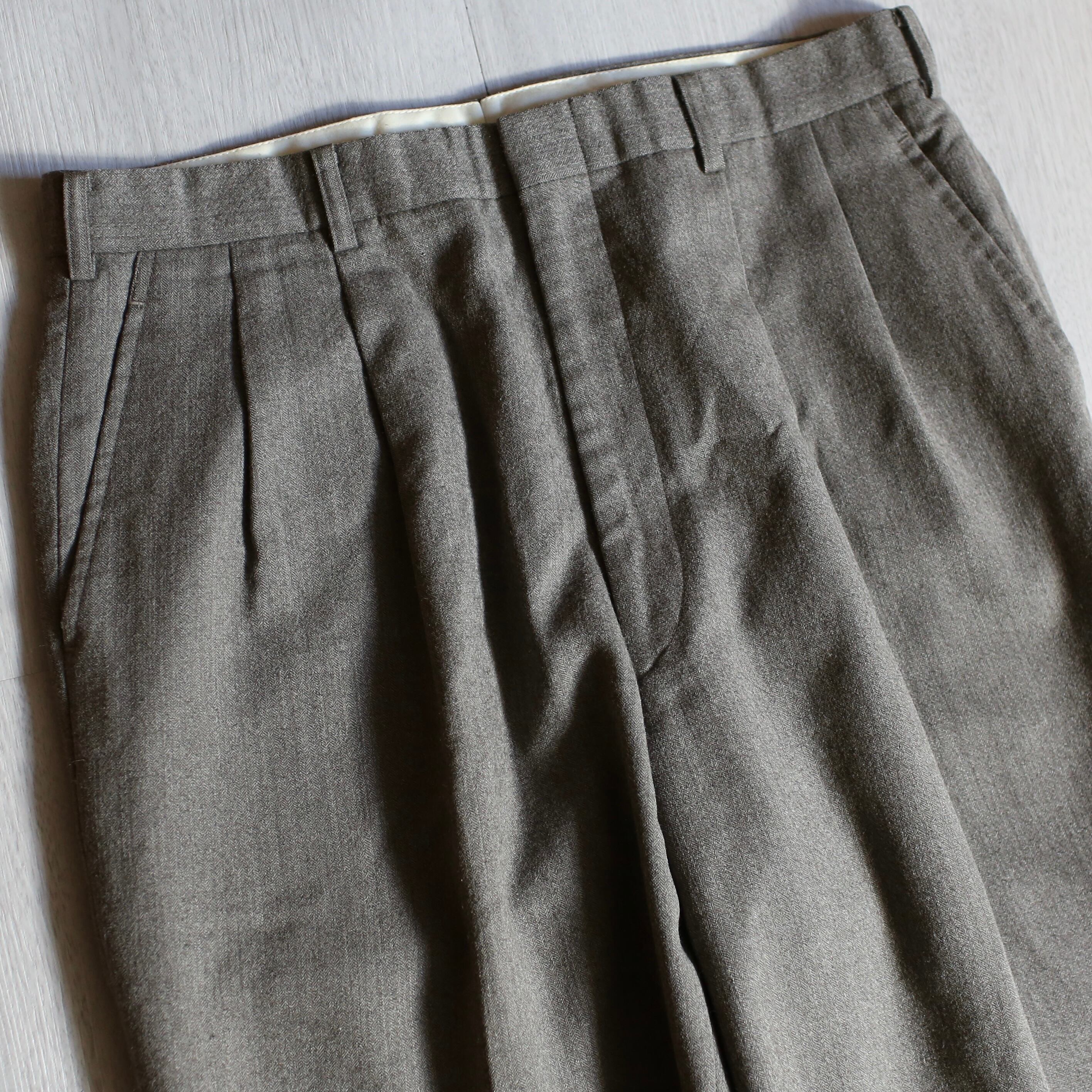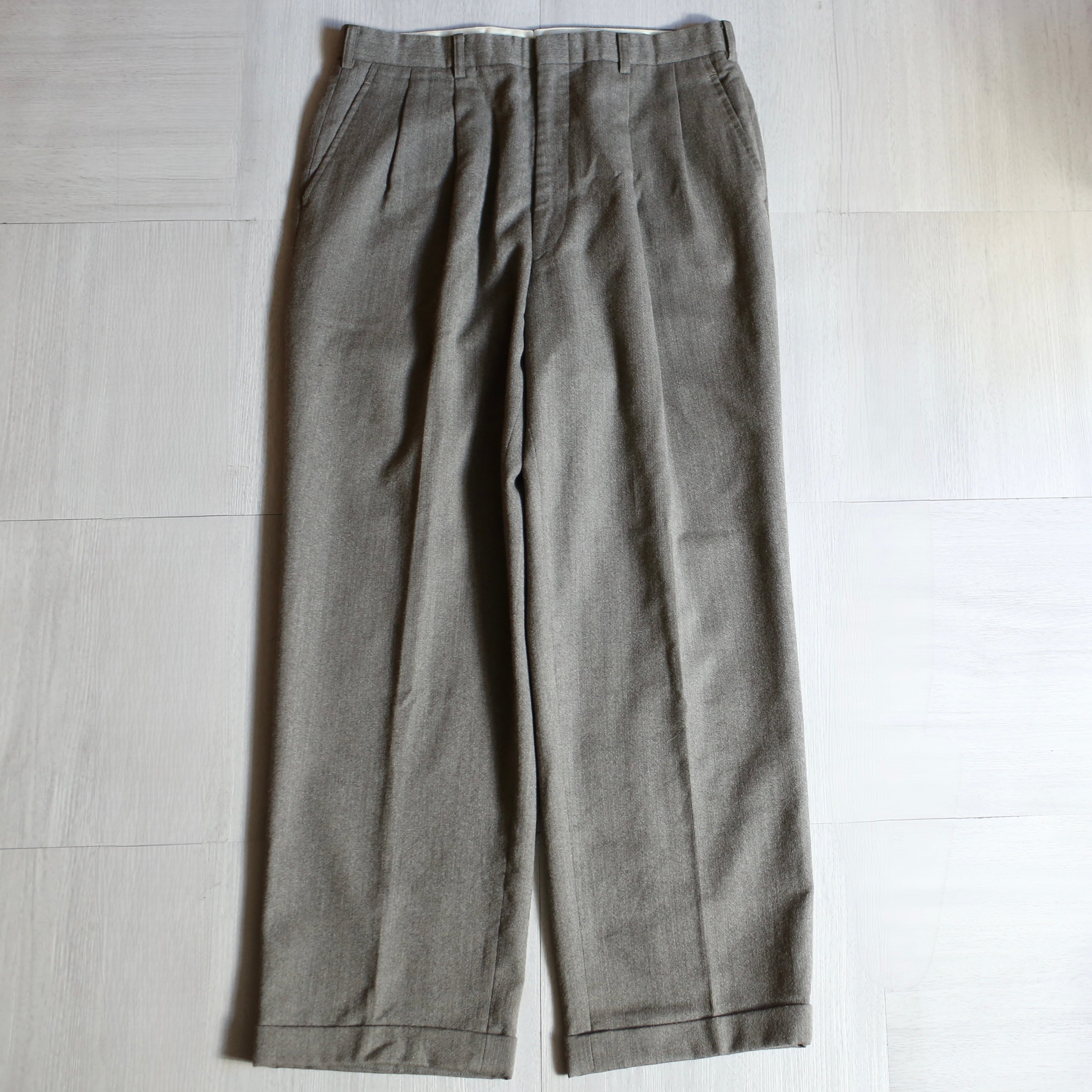90s~ Vintage North Korean Made Wool 100% 2 Tuck Slacks 90年代〜 北朝鮮製 2タック スラックス ヘリンボーン ウール100% ベージュ