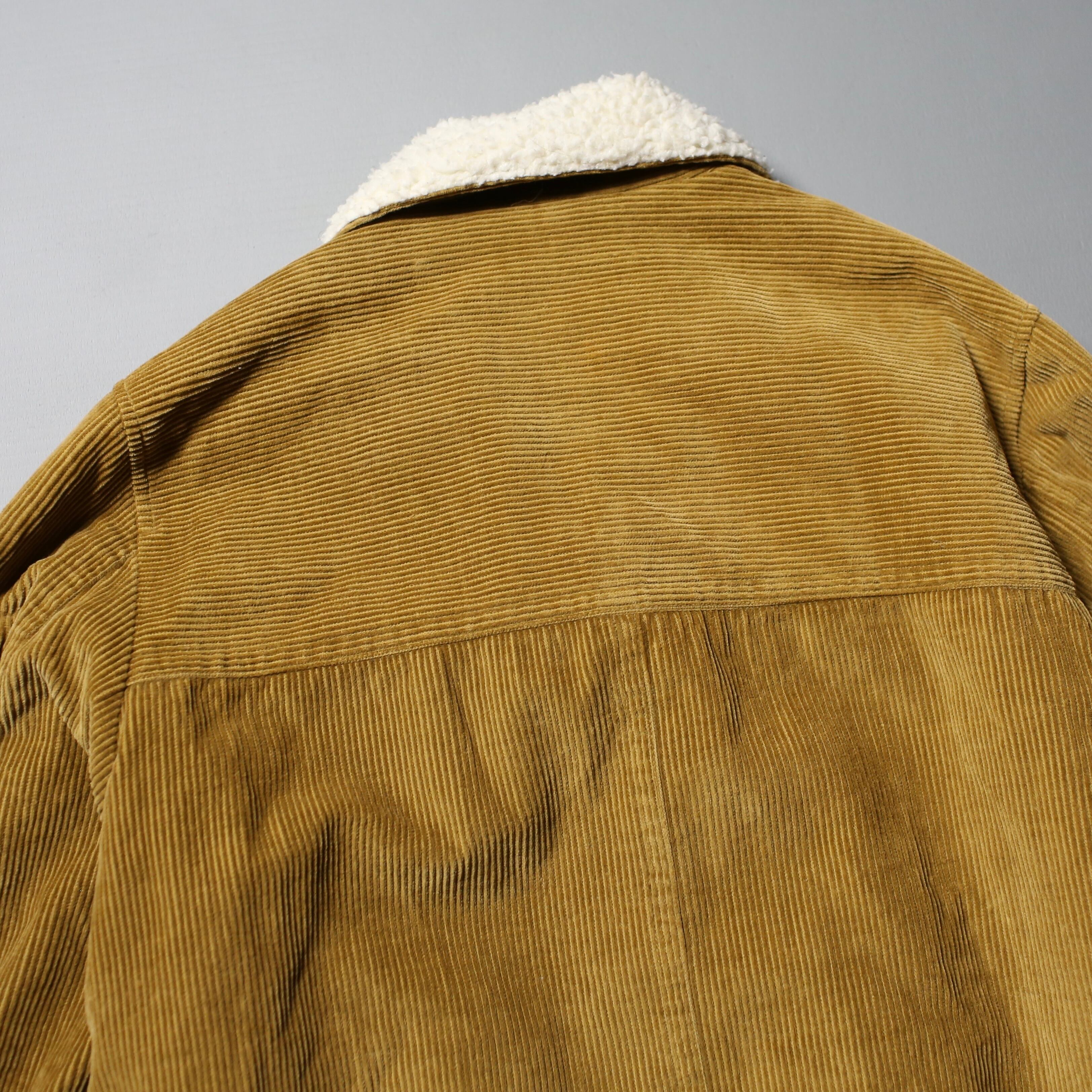 太畝のコーデュロイ生地に、襟から前立てまでしっかり覆う ボアライニング が温かく、ワーク・ウェスタン・アウトドア要素が絶妙にミックスされた一着。