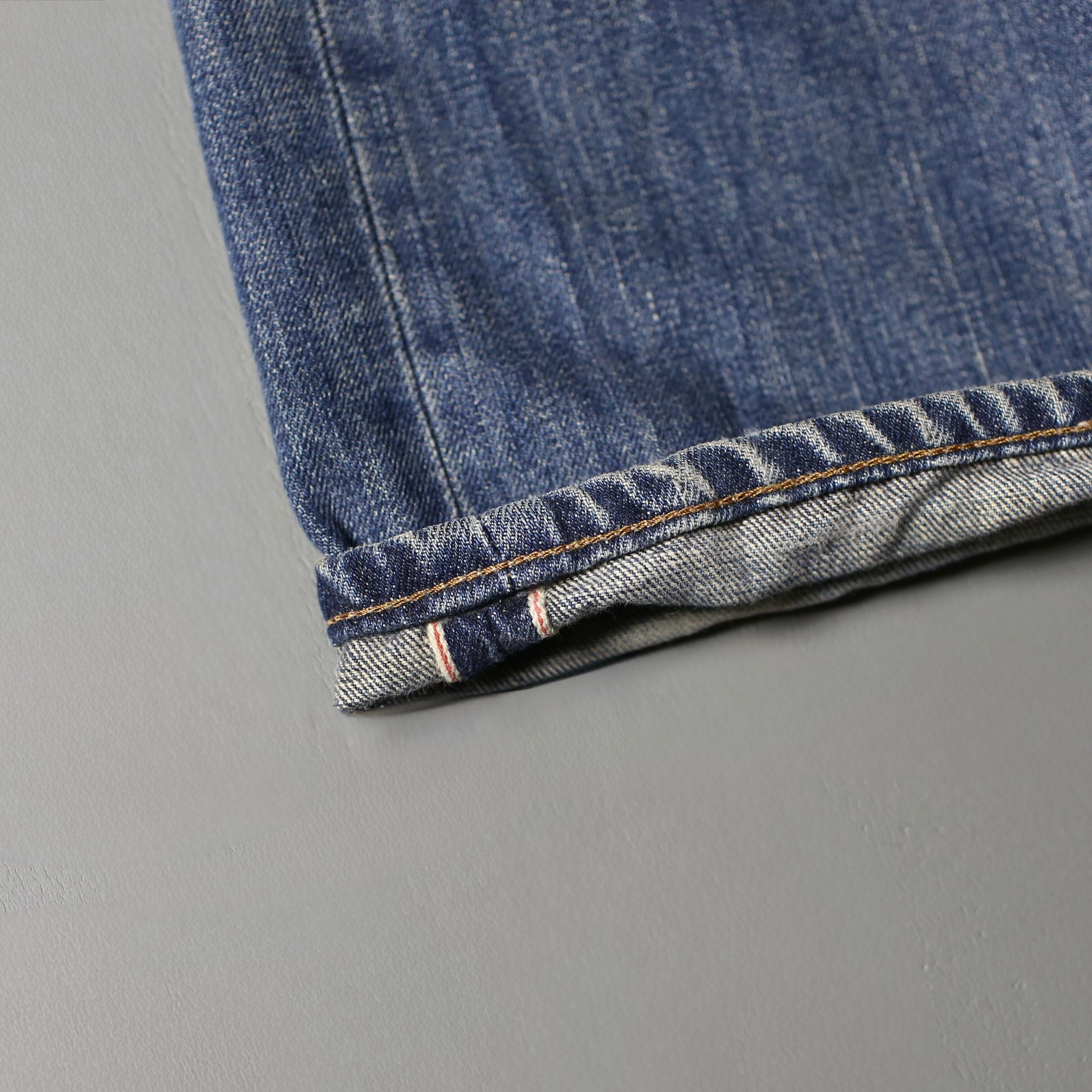 また、ドーナツボタンやフロントVステッチ、内股シングルステッチ、セルビッチ(赤耳)、革パッチなど、ヴィンテージデニムに見られるディテールが盛り込まれている点も嬉しいポイント!