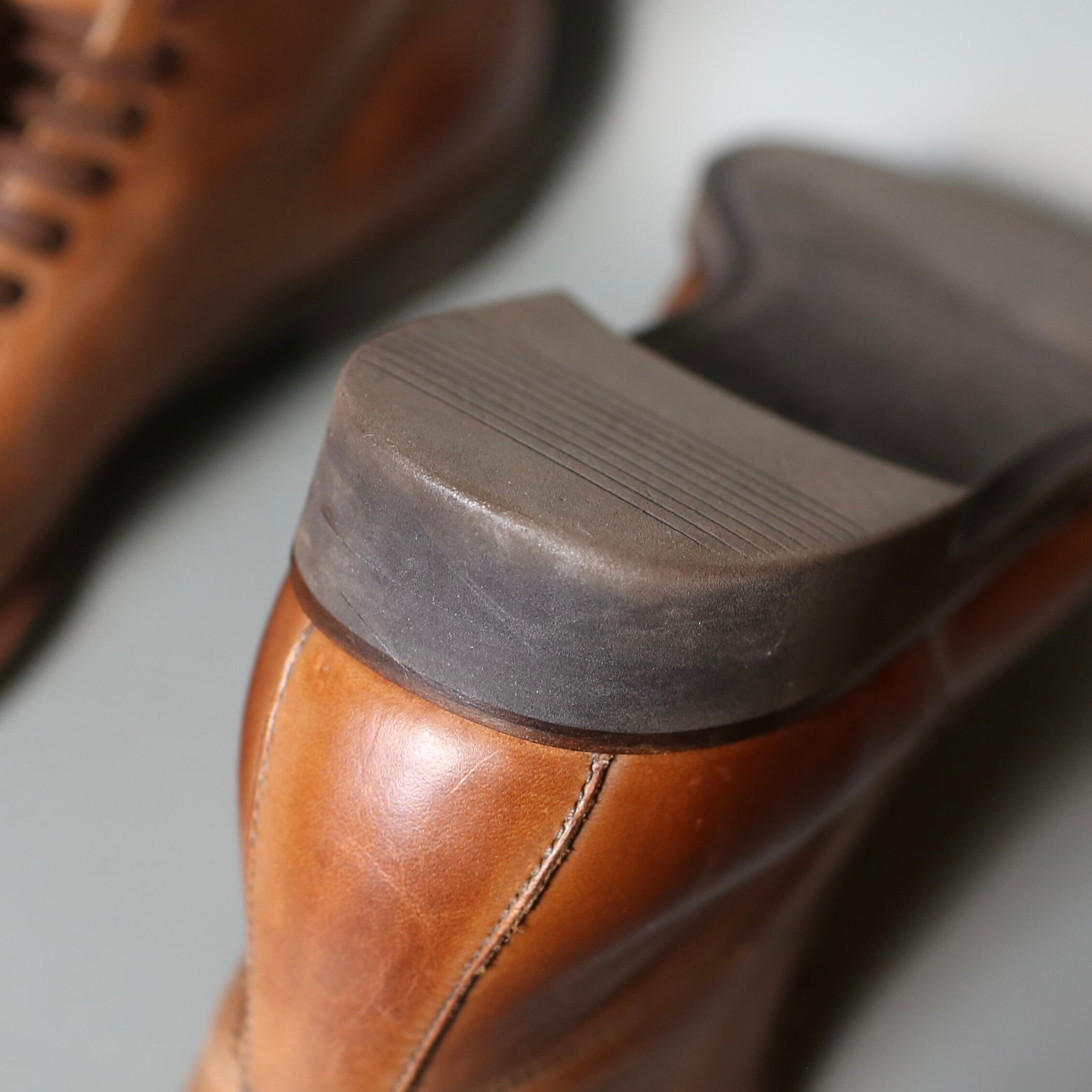 タンニン鞣しのような深みのあるブラウンレザーは、履き込まれたことで自然な艶が増し、経年変化による表情がかなり良い雰囲気に仕上がっています。