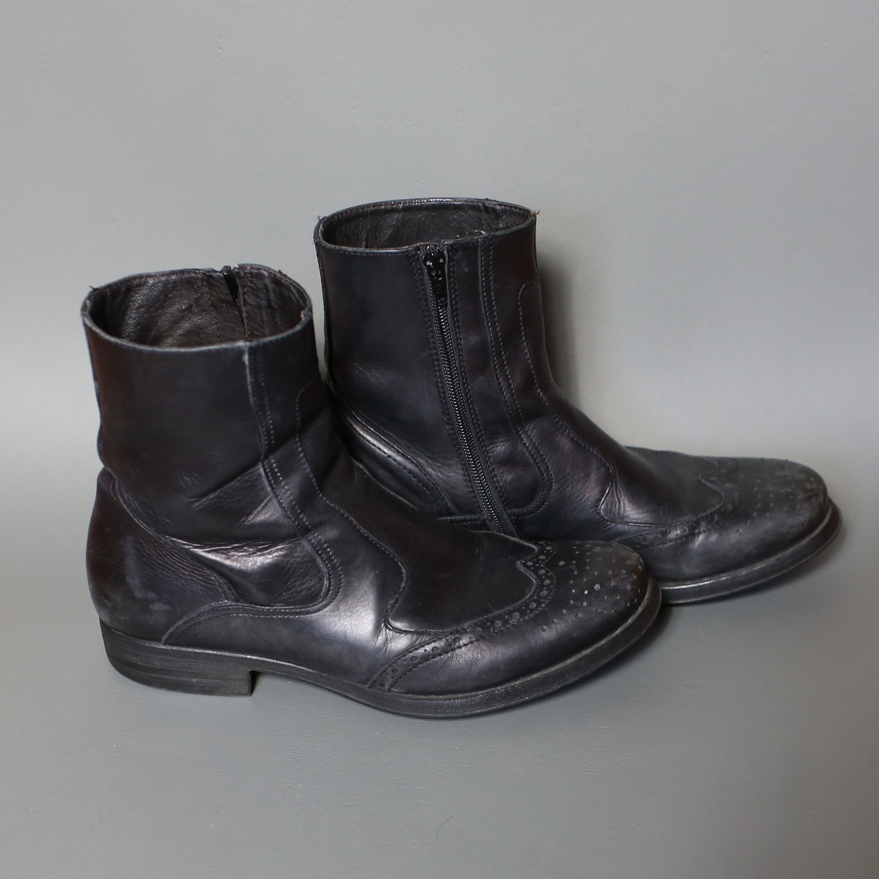 90s〜 BOEMOS Side Zip Wingtip Short Boots MADE IN ITALY 90年代 ボエモス サイドジップ ウィングチップ ショートブーツ ブラック 黒 イタリア製