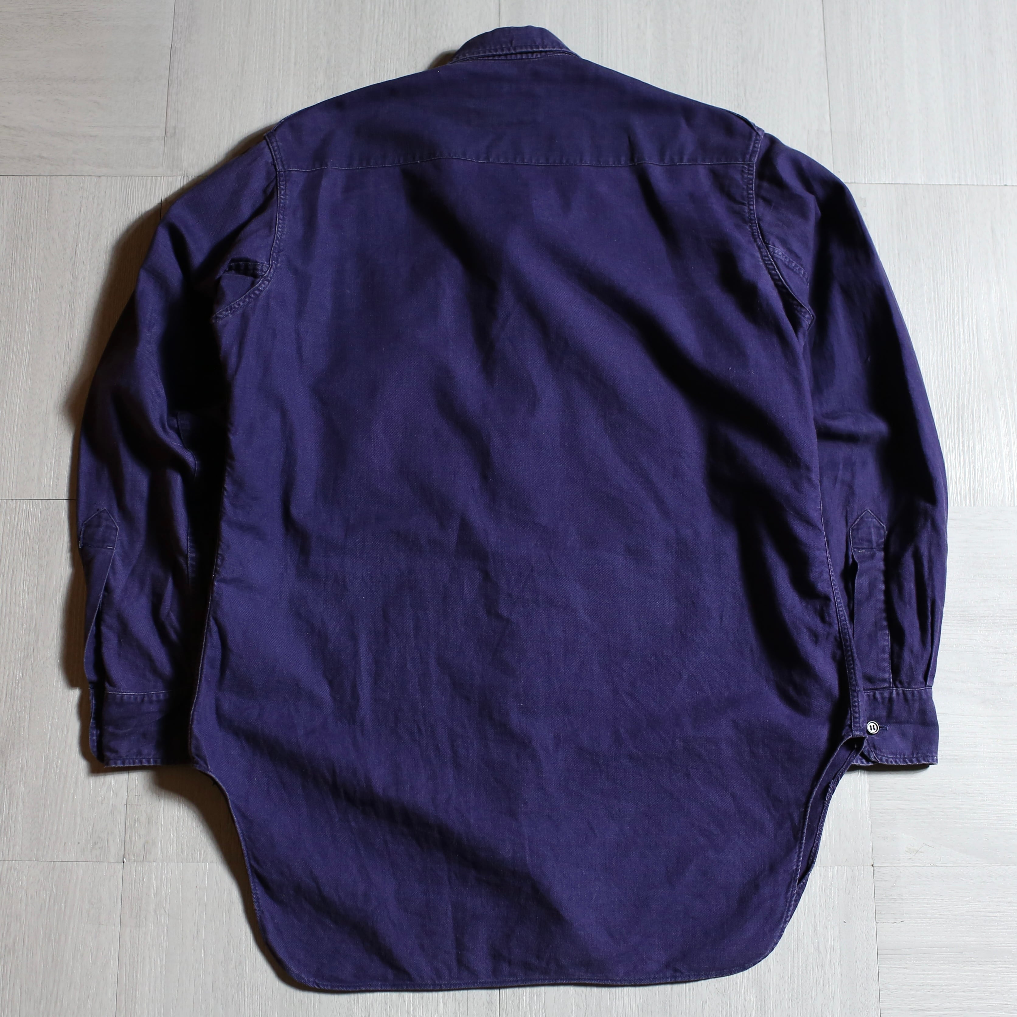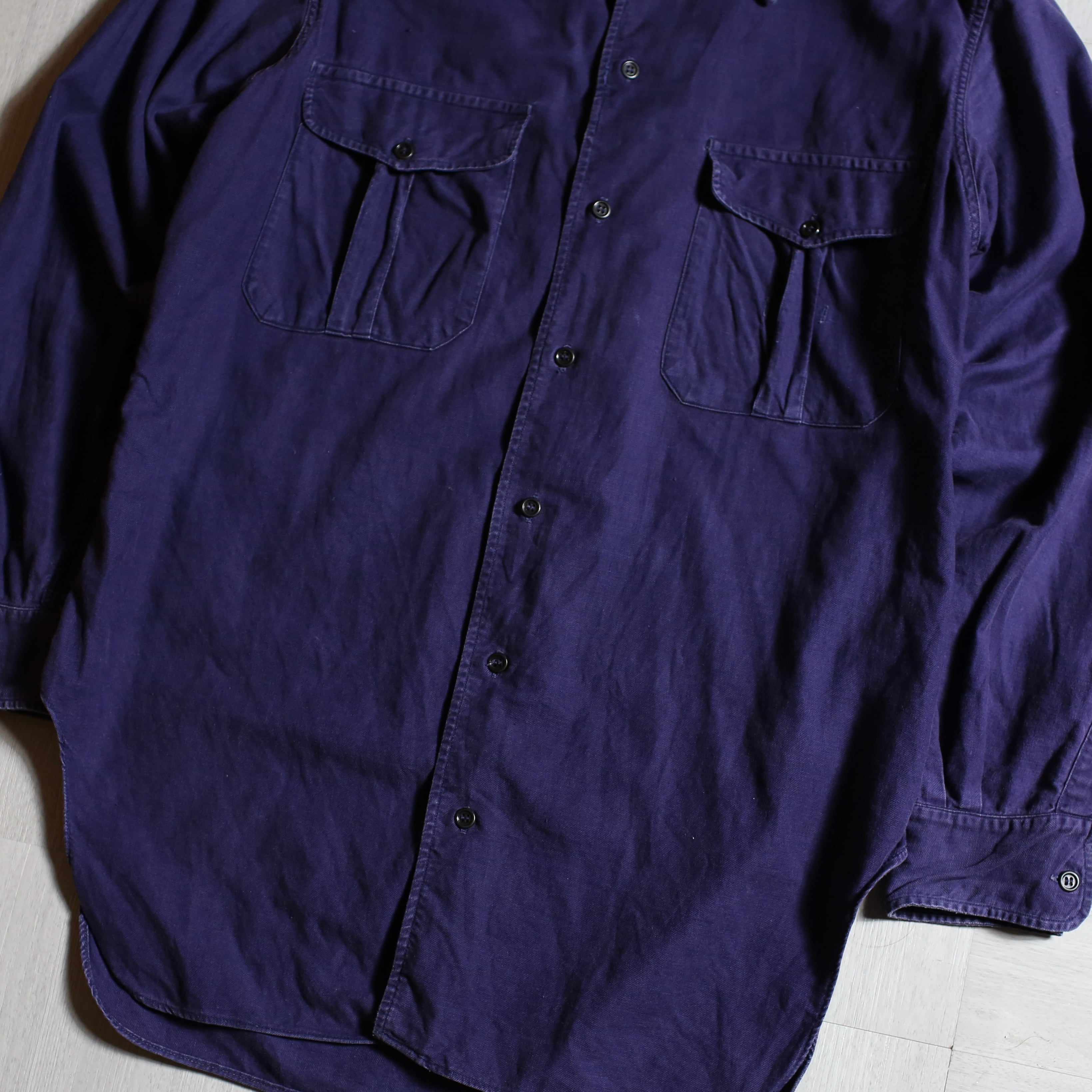 50s~60s French Navy Vintage Work Shirt ヴィンテージ フランス海軍 ワークシャツ ネイビー ナス紺 長袖