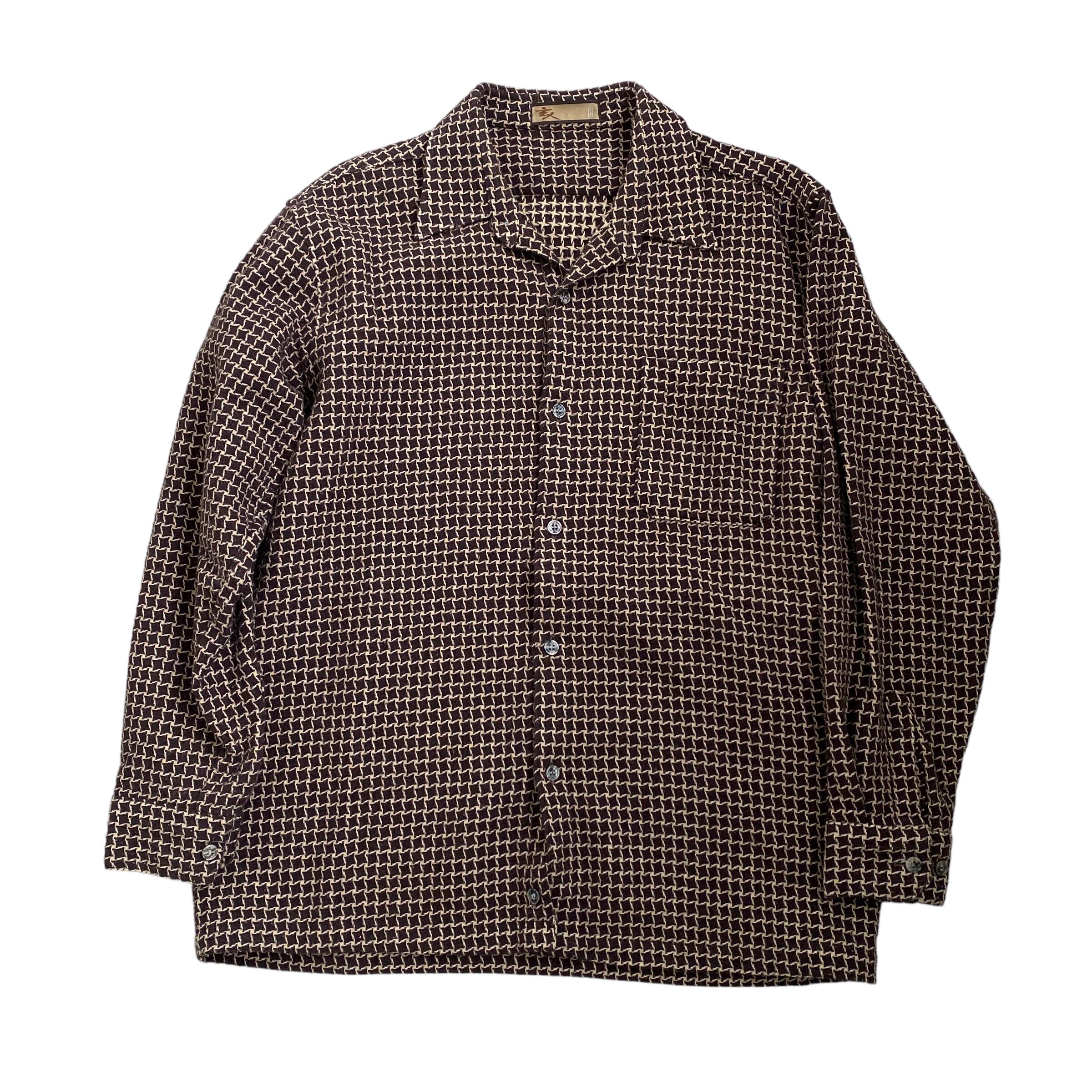 玄人 千鳥格子柄 古着 長袖シャツ 総柄