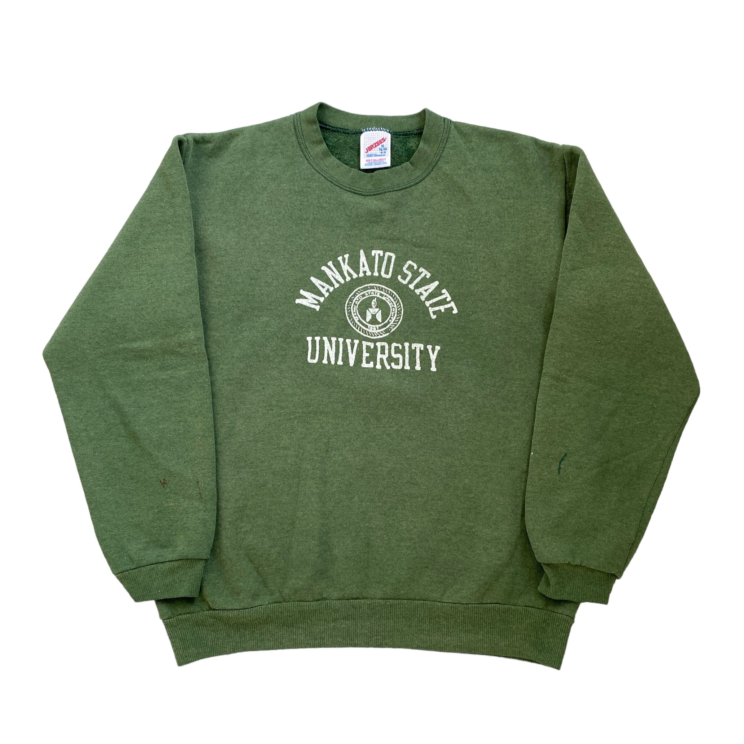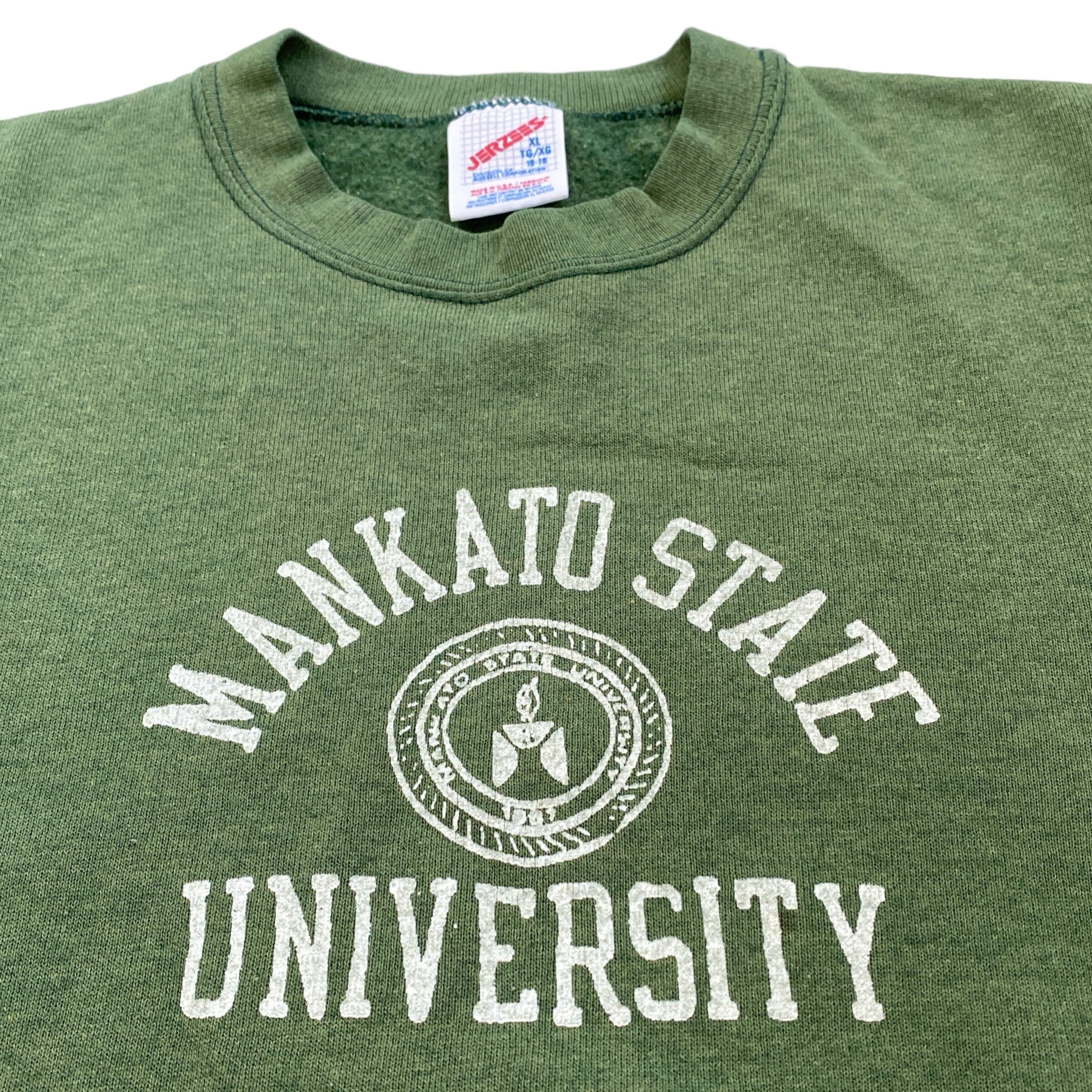 90s JERZEES ジャージーズ MANKATO STATE UNIVERSITY カレッジロゴ スウェット XL カーキ 古着