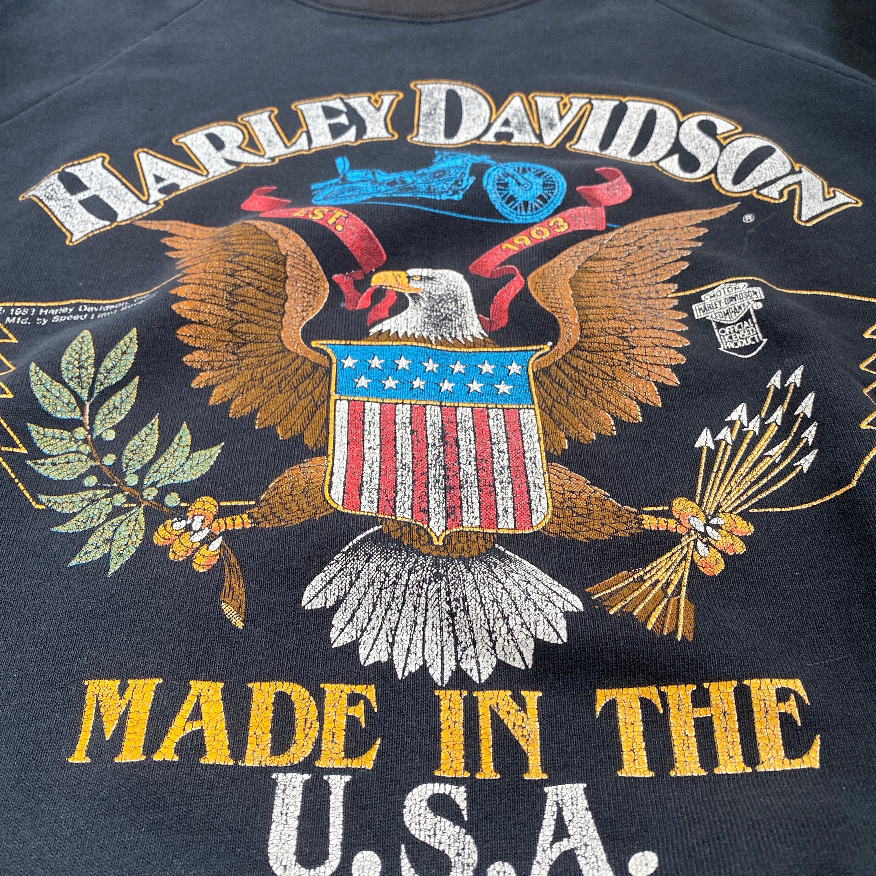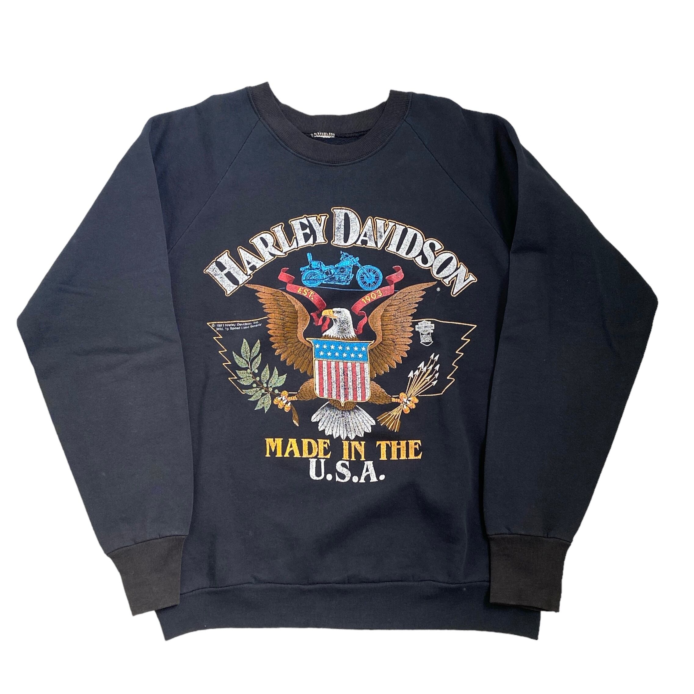 80s HARLEY DAVIDSON ハーレーダビッドソン ラグラン スウェット ブラック 黒 古着