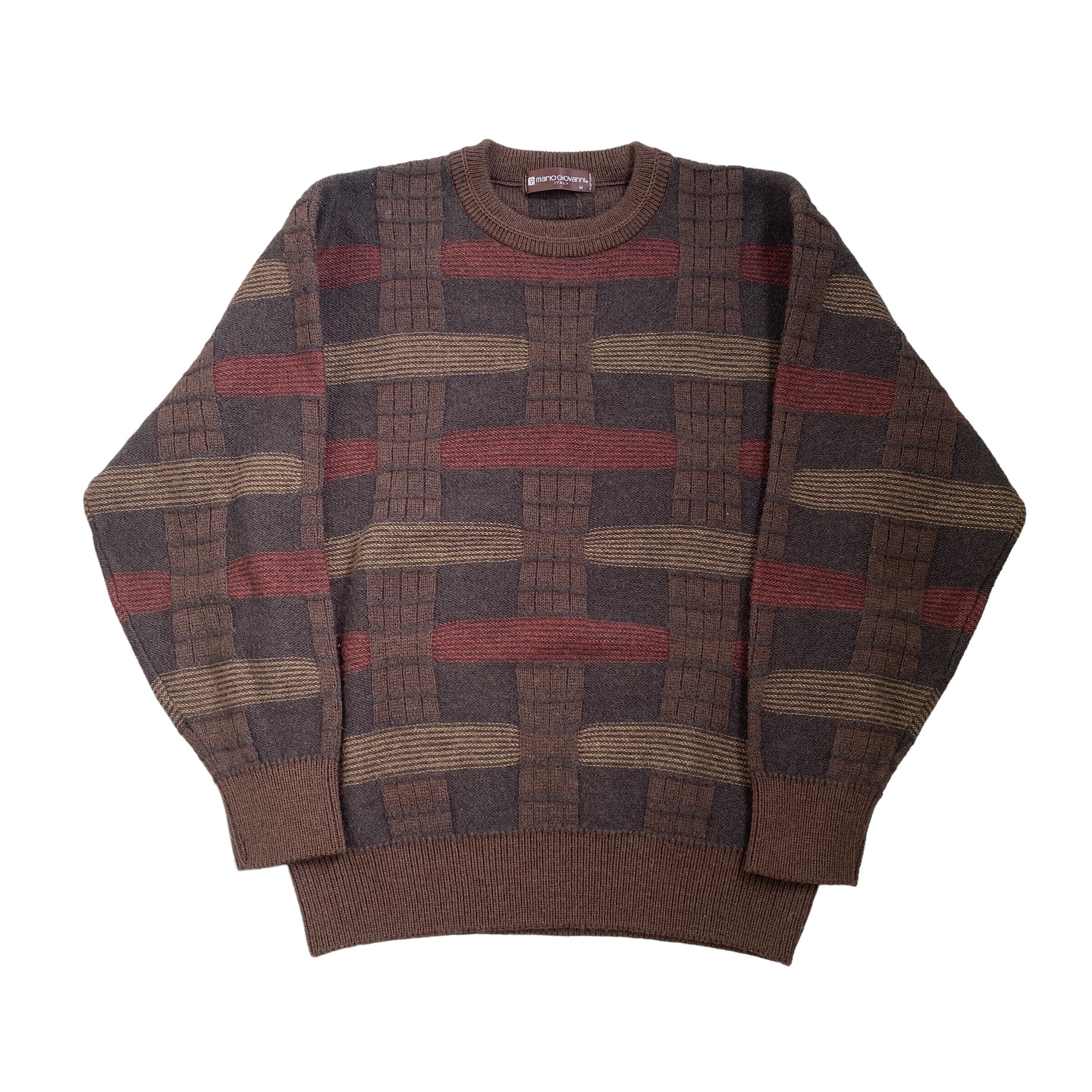 mario giovanni マリオジョバンニ 柄ニット デザインニット 日本製 ブラウン 古着 M