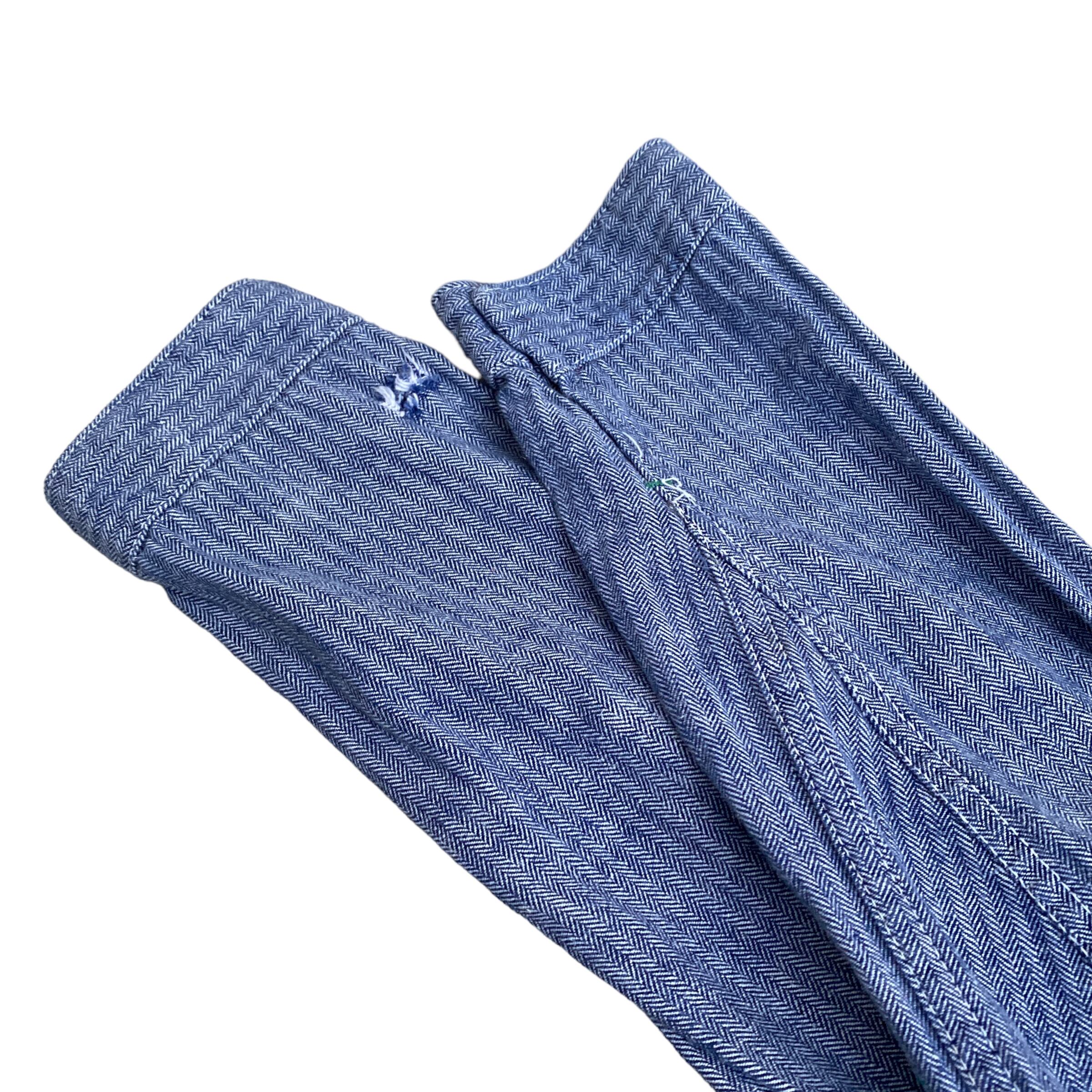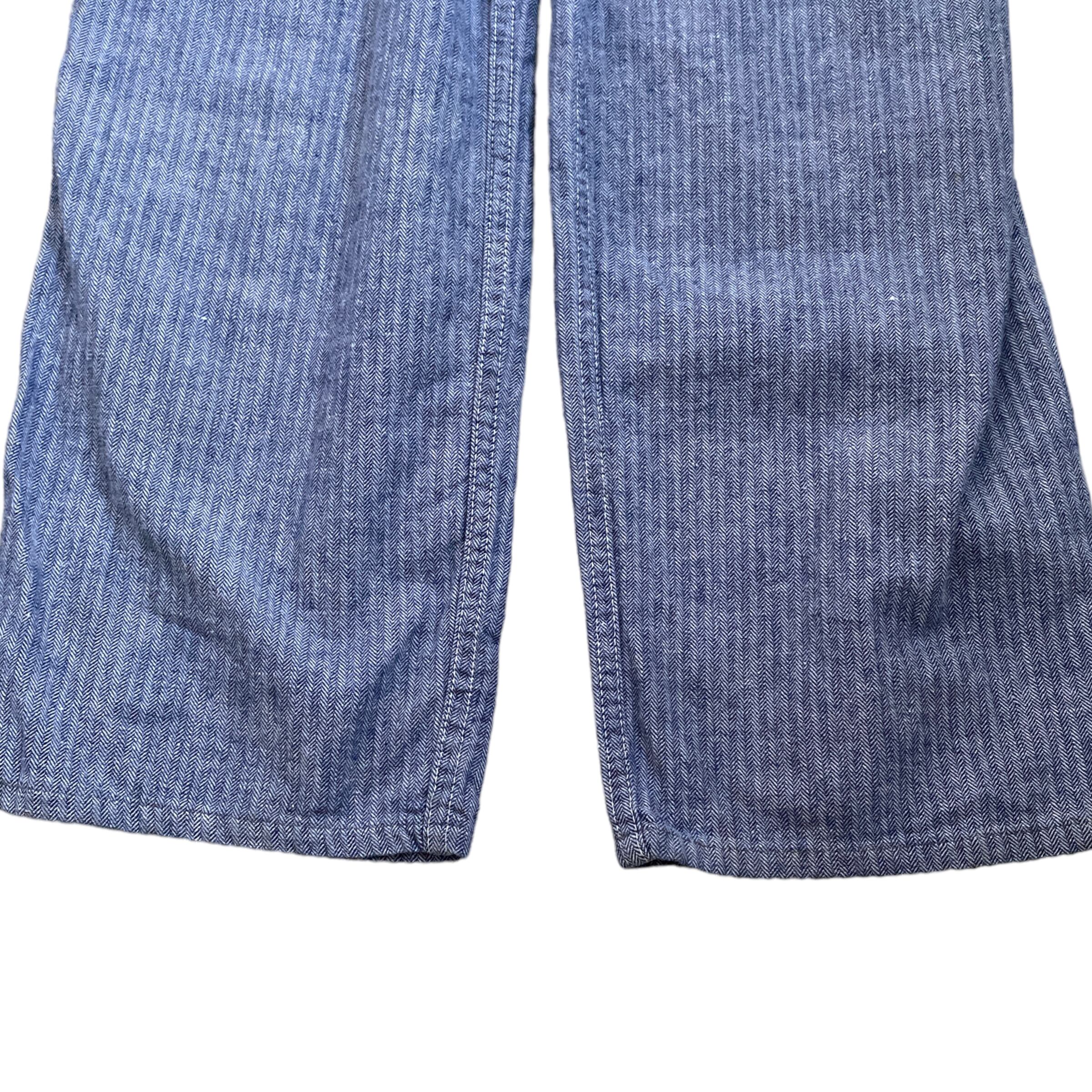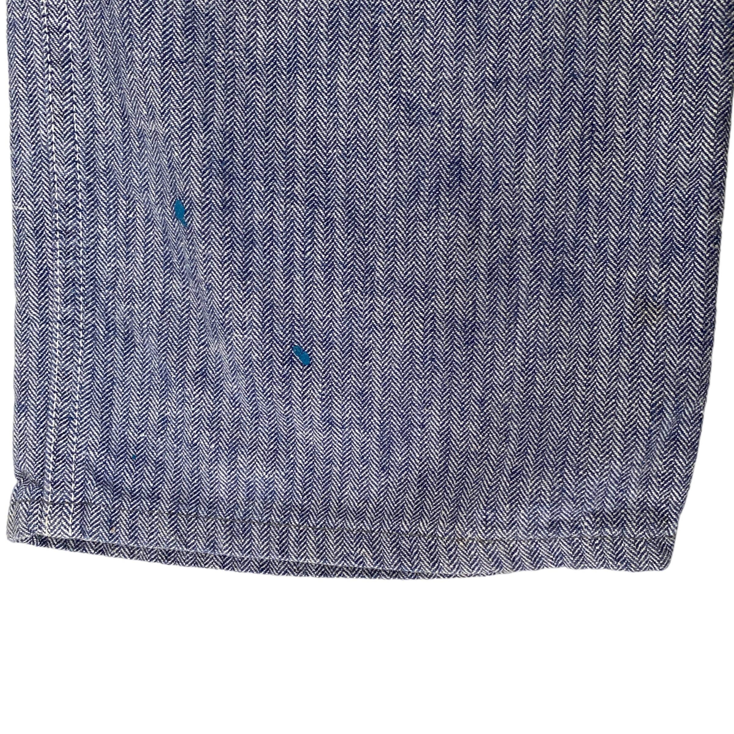 多少の着用感やほつれ、右袖2cmほどのダメージ、右脚前部分に小さなペンキ汚れが2箇所ございますが、まだまだご着用いただけるお品物です。