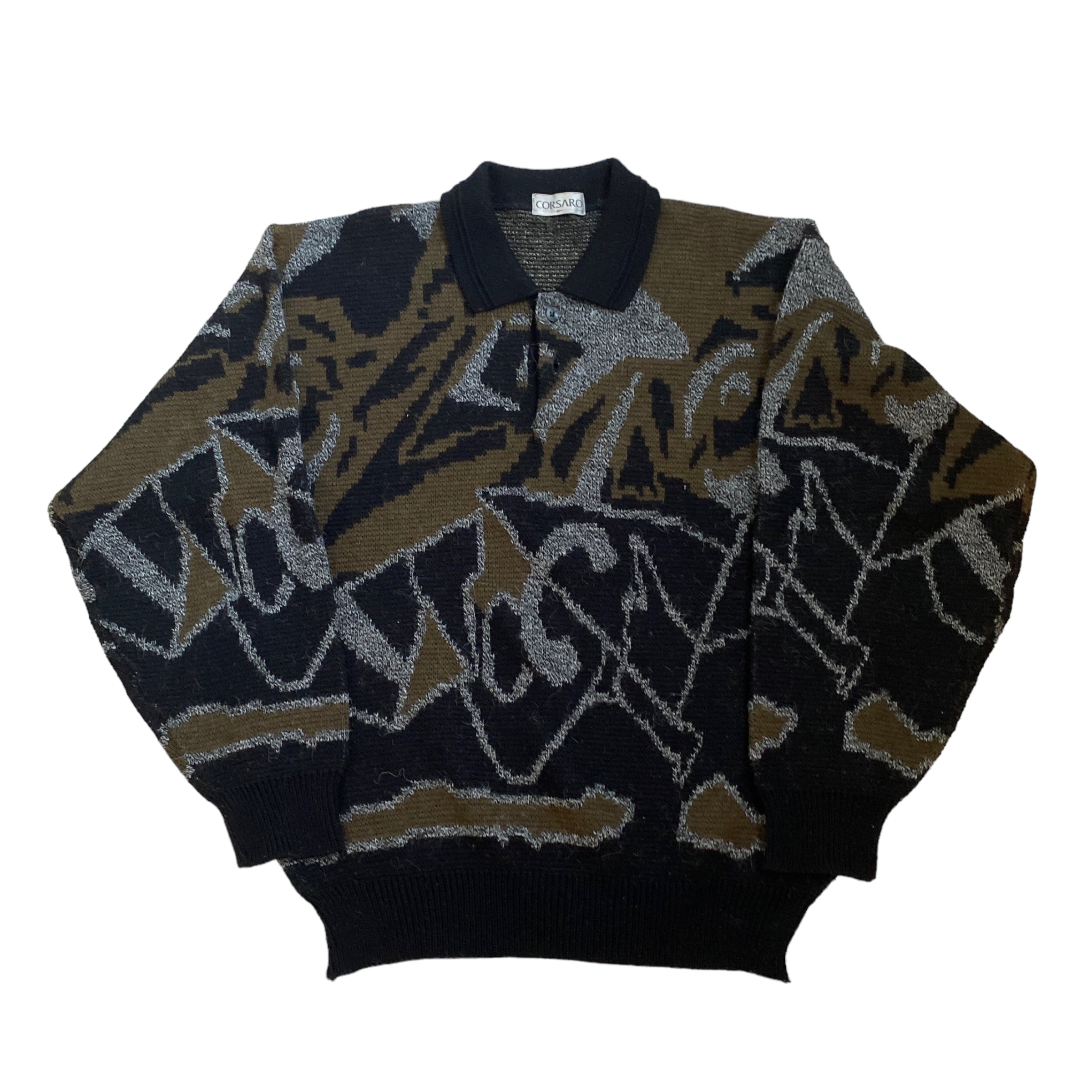CORSARO desigh knit デザインニット 柄ニット 総柄 古着 M
