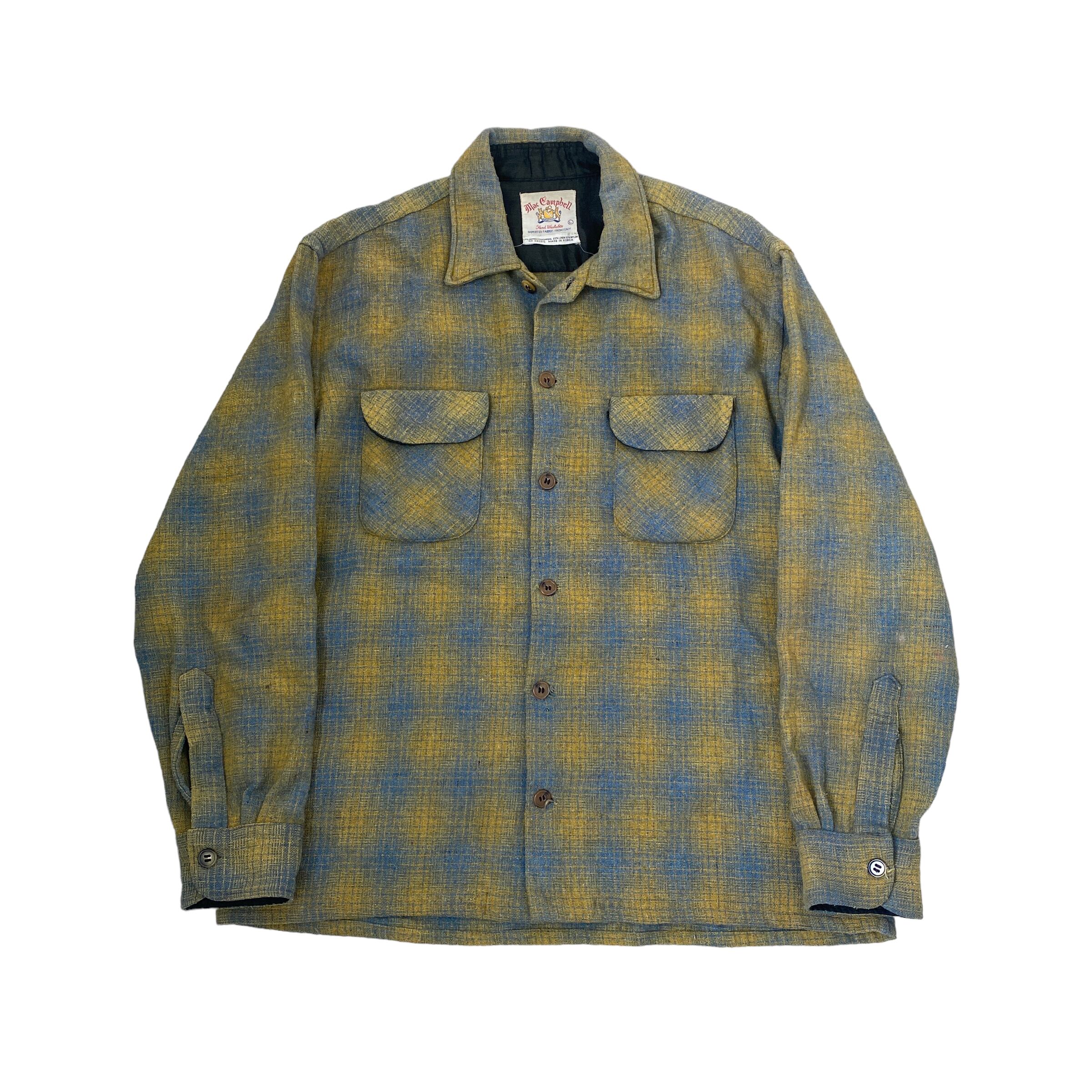 70s Mac Campbell vintage ombrer thirt マックキャンプベル ヴィンテージ オンブレシャツ イエロー ブルー 古着 好配色 L