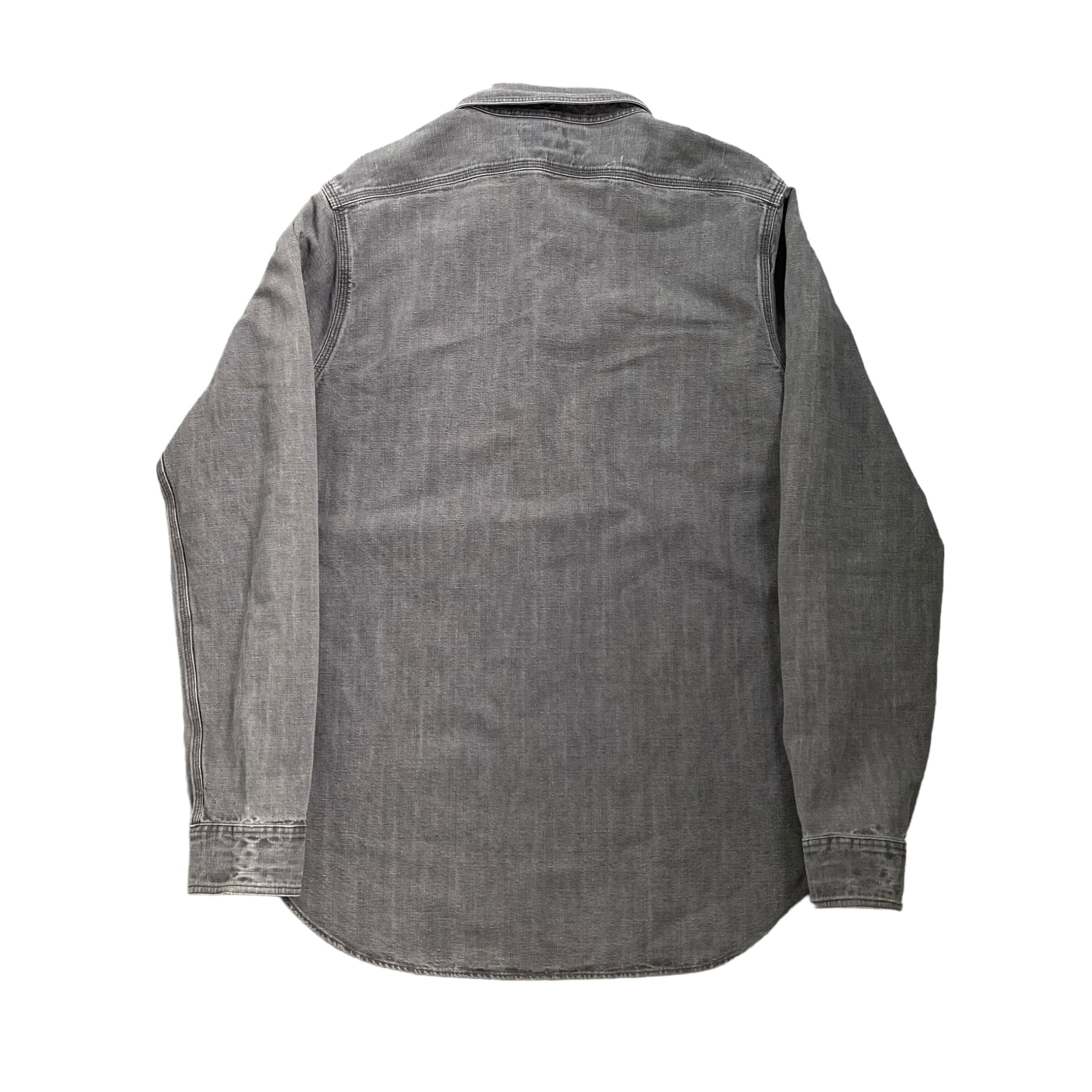 RRL Ralph Lauren work shirt 65% COTTON 35% LINEN ダブルアールエル ラルフローレン ワークシャツ コットンリネンシャツ グレー S 古着 ブラックデニム