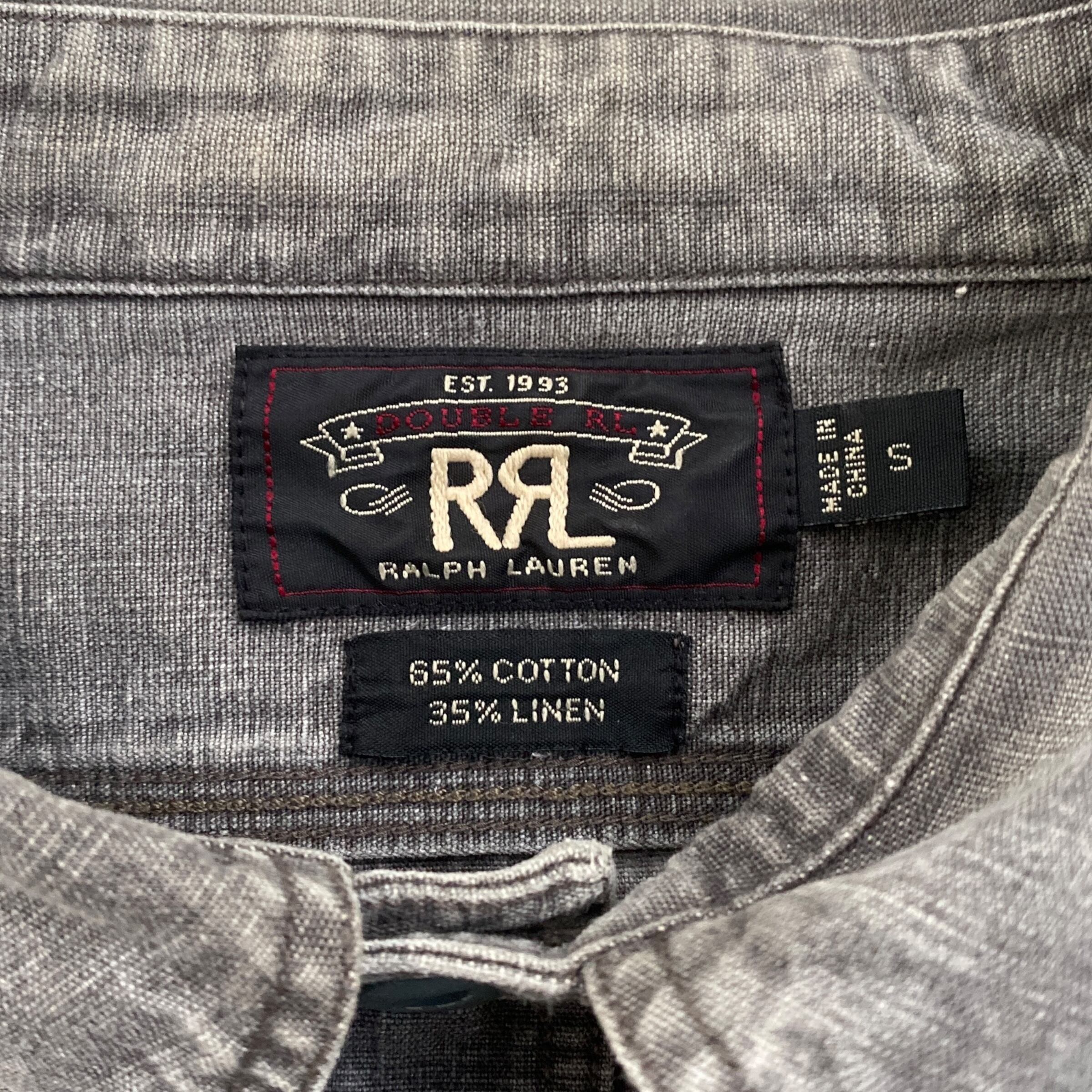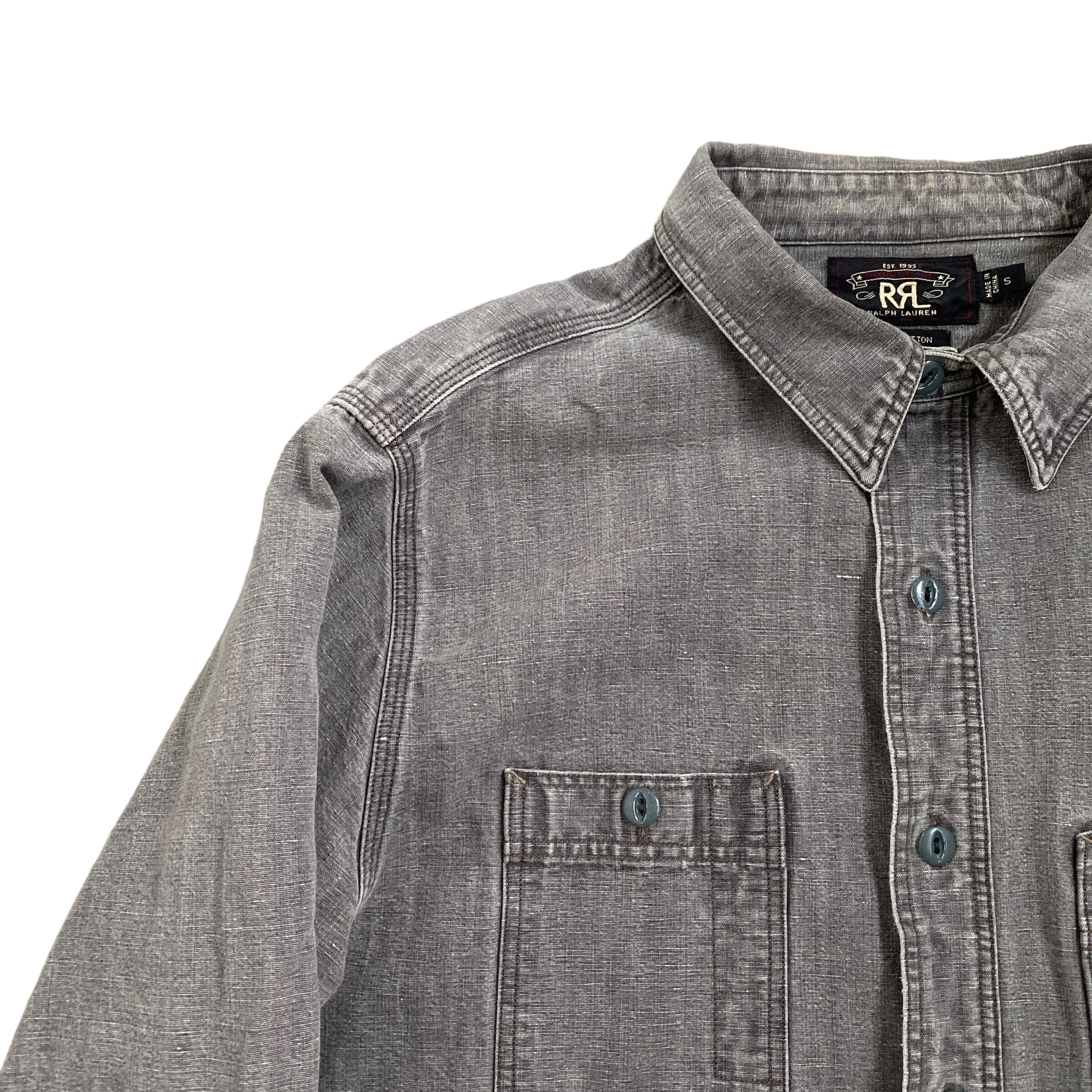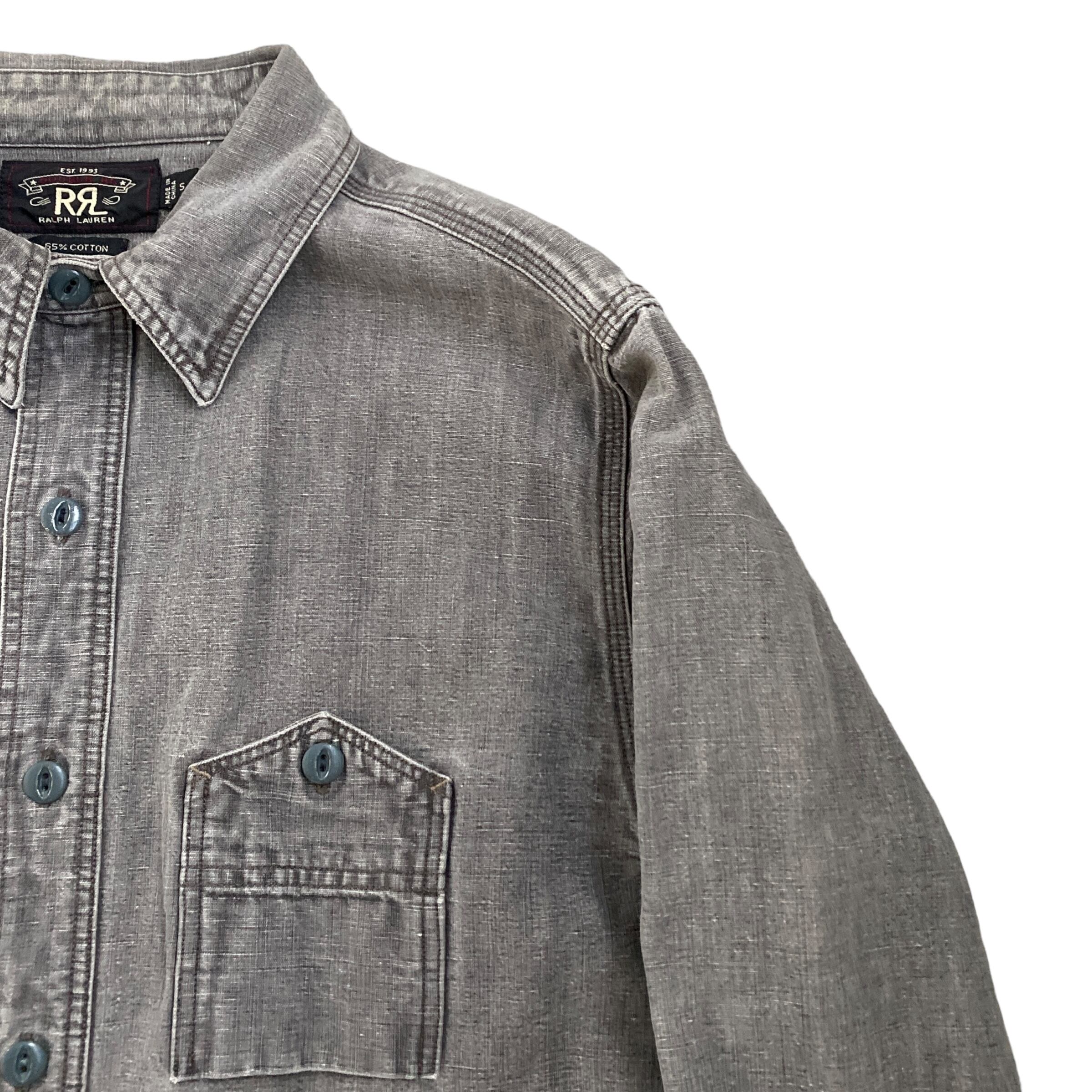 RRL Ralph Lauren work thirt 65% COTTON 35% LINEN ダブルアールエル ラルフローレン ワークシャツ コットンリネンシャツ グレー S 古着 ブラックデニム