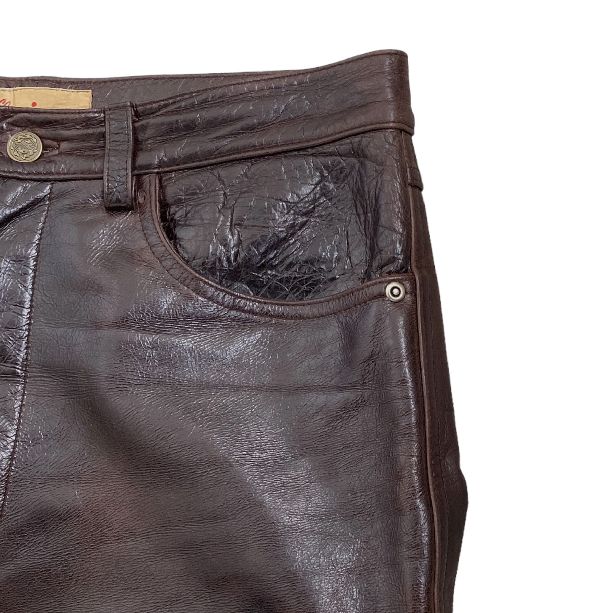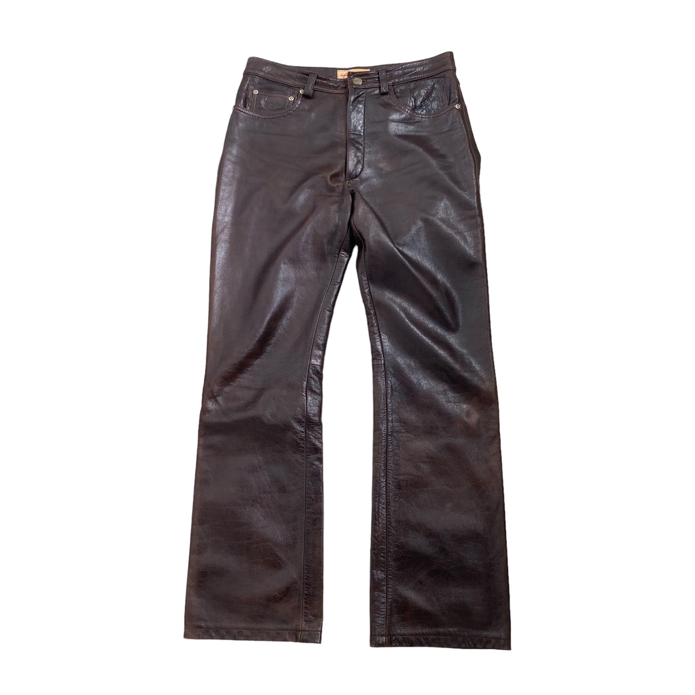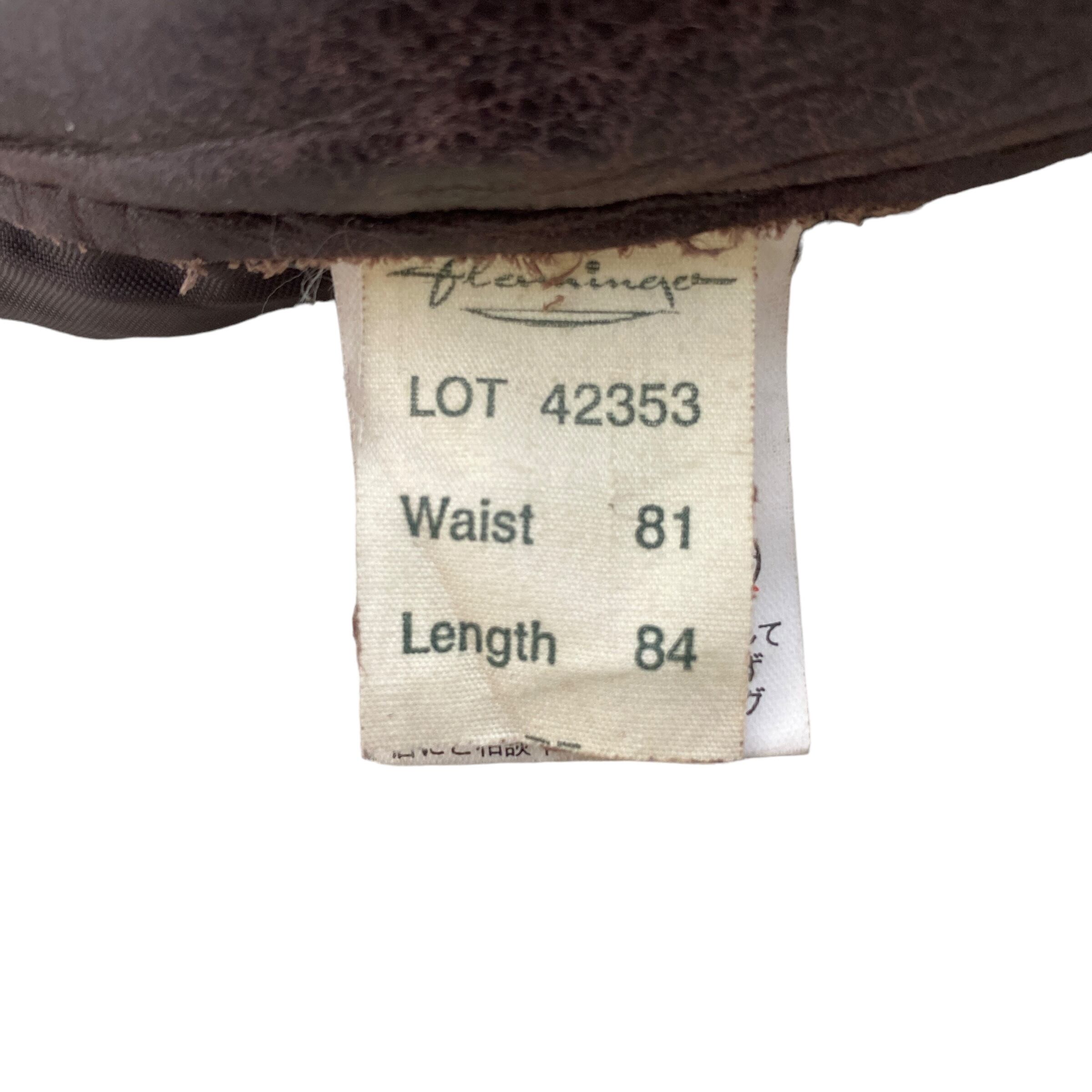 Flamingo Cowhide Leather pants brown フラミンゴ 牛革 レザーパンツ 革パン アメカジ 雰囲気抜群 ブラウン 茶 W81 L84 古着