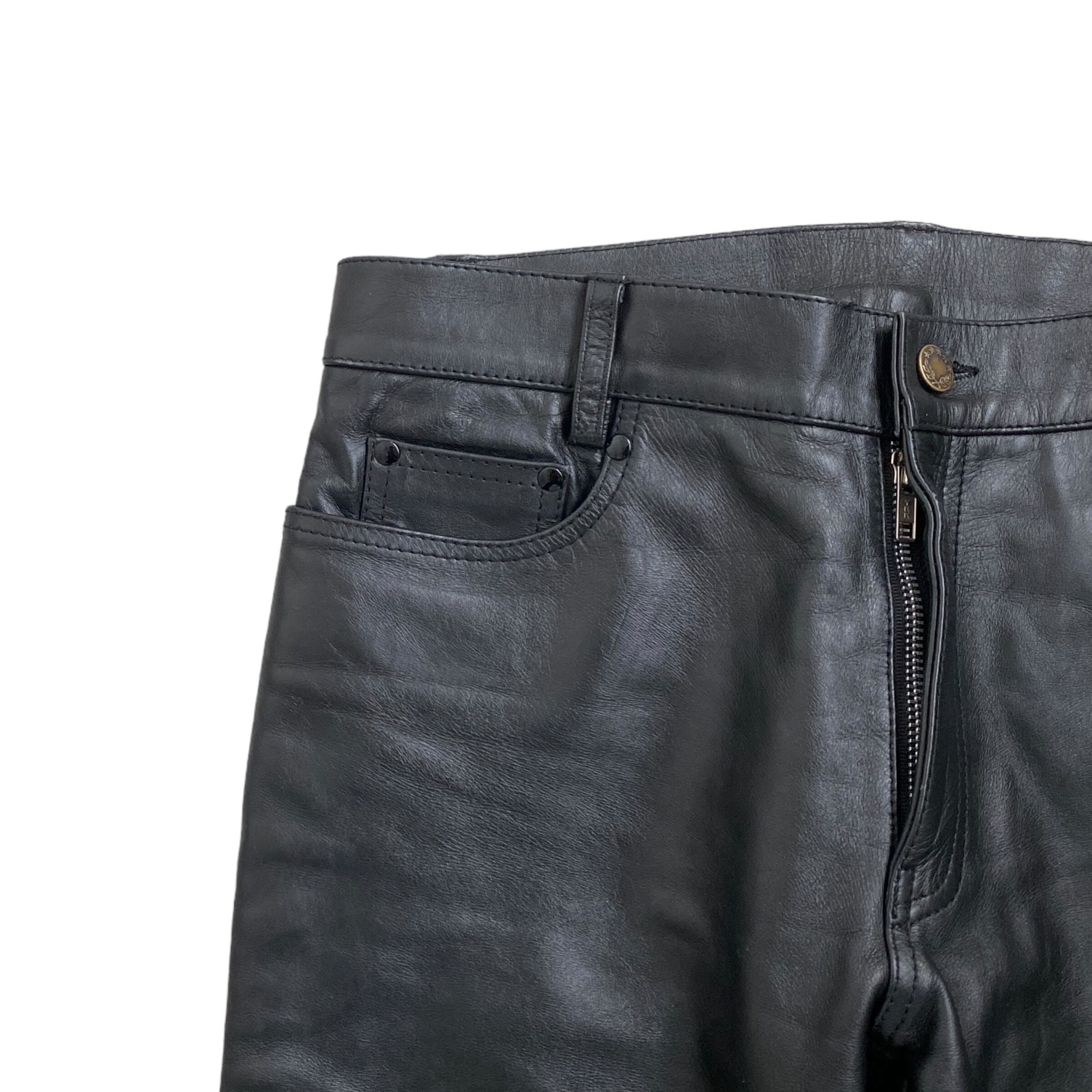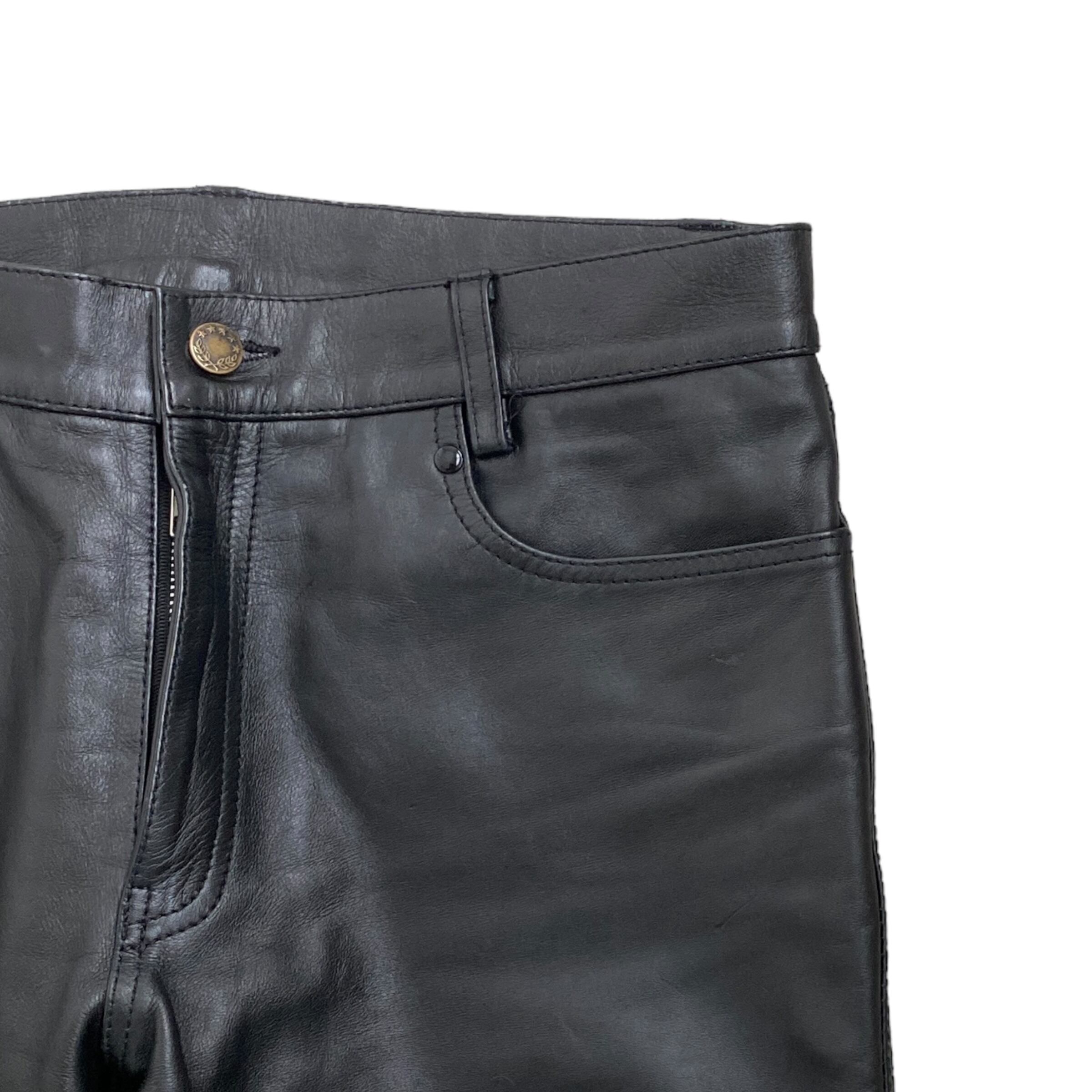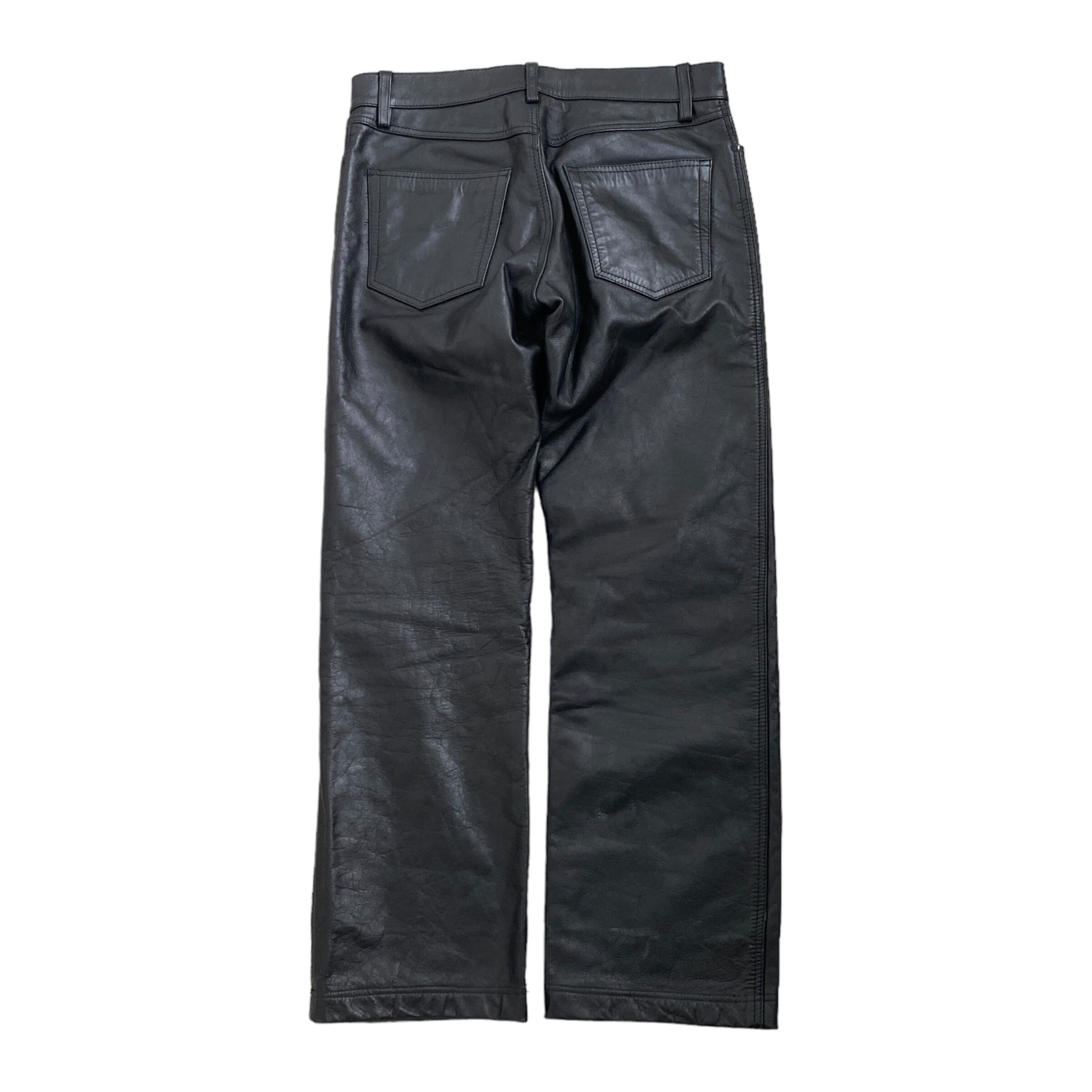 レザーパンツは比較的硬めの生地感で、着用をためらってしまう方も多いですが、こちらは柔らかめの生地感で着用時のストレスが少ない一本になります。