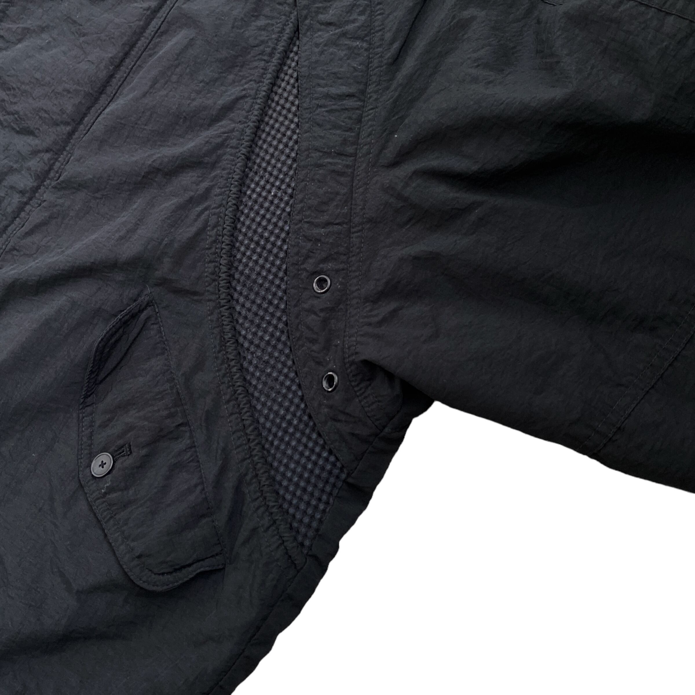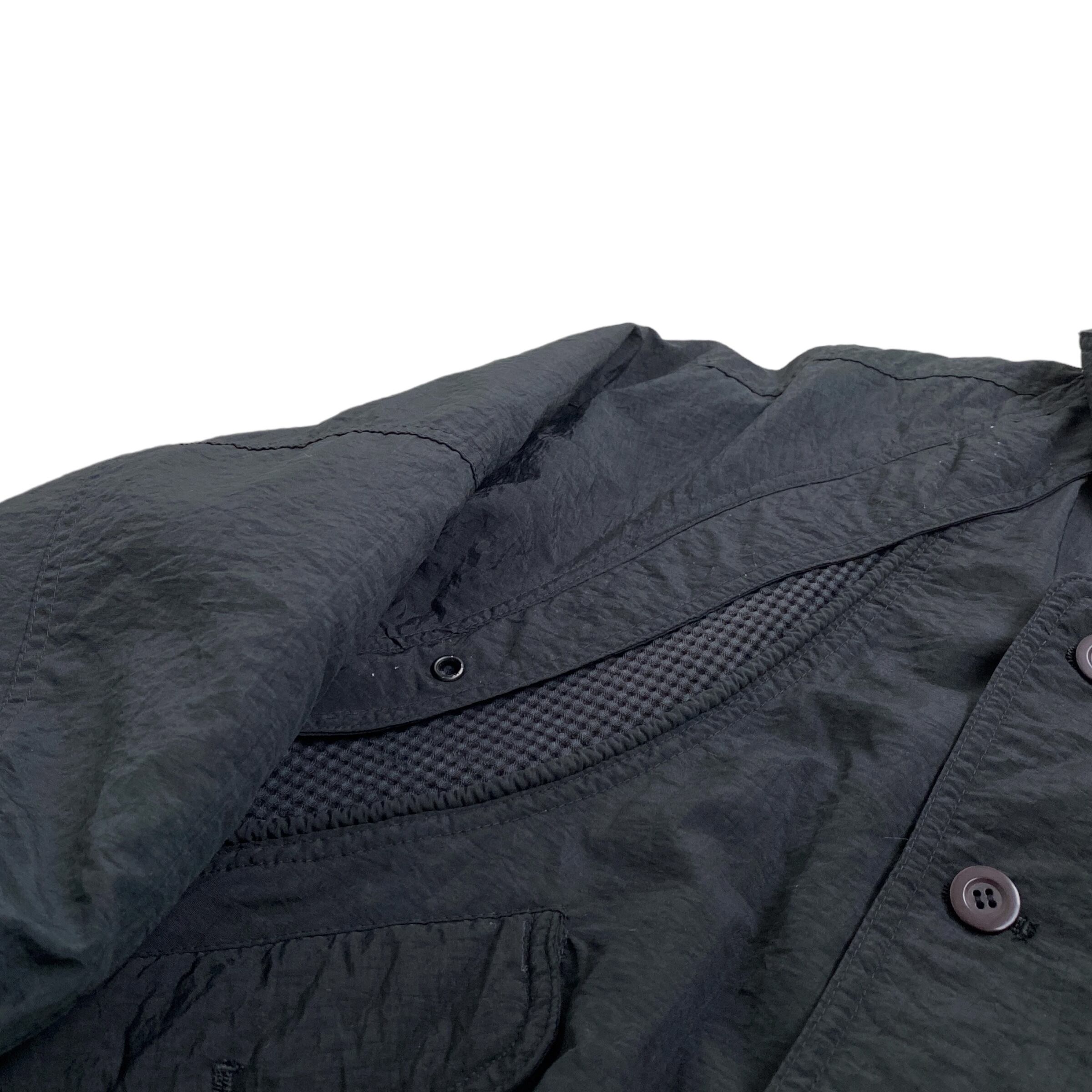 シャカシャカとしたナイロンのような生地感で、脇付近はサーマルのような生地になっています。