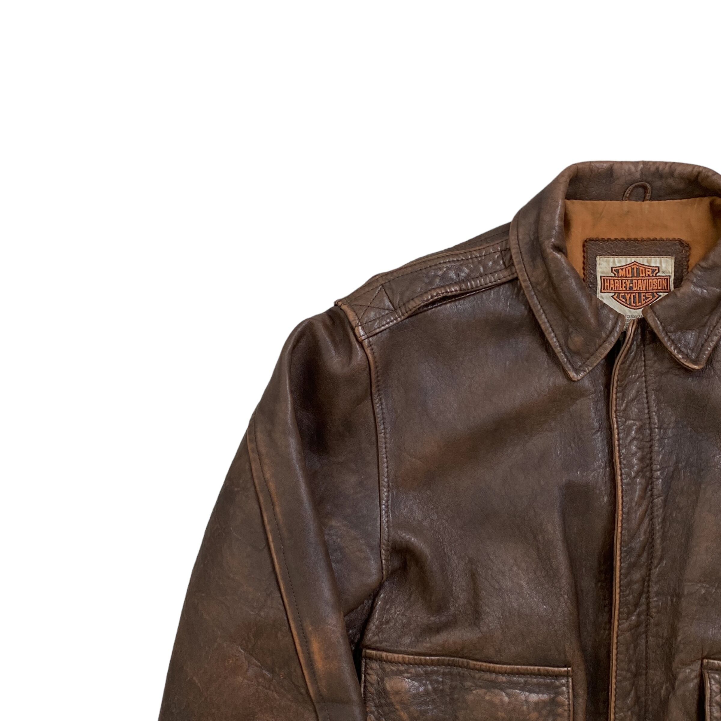 90s Harley Davidson A-2 type flight leather jacket ハーレーダビッドソン A-2型 フライトジャケット レザージャケット ブラウン 茶 古着 38