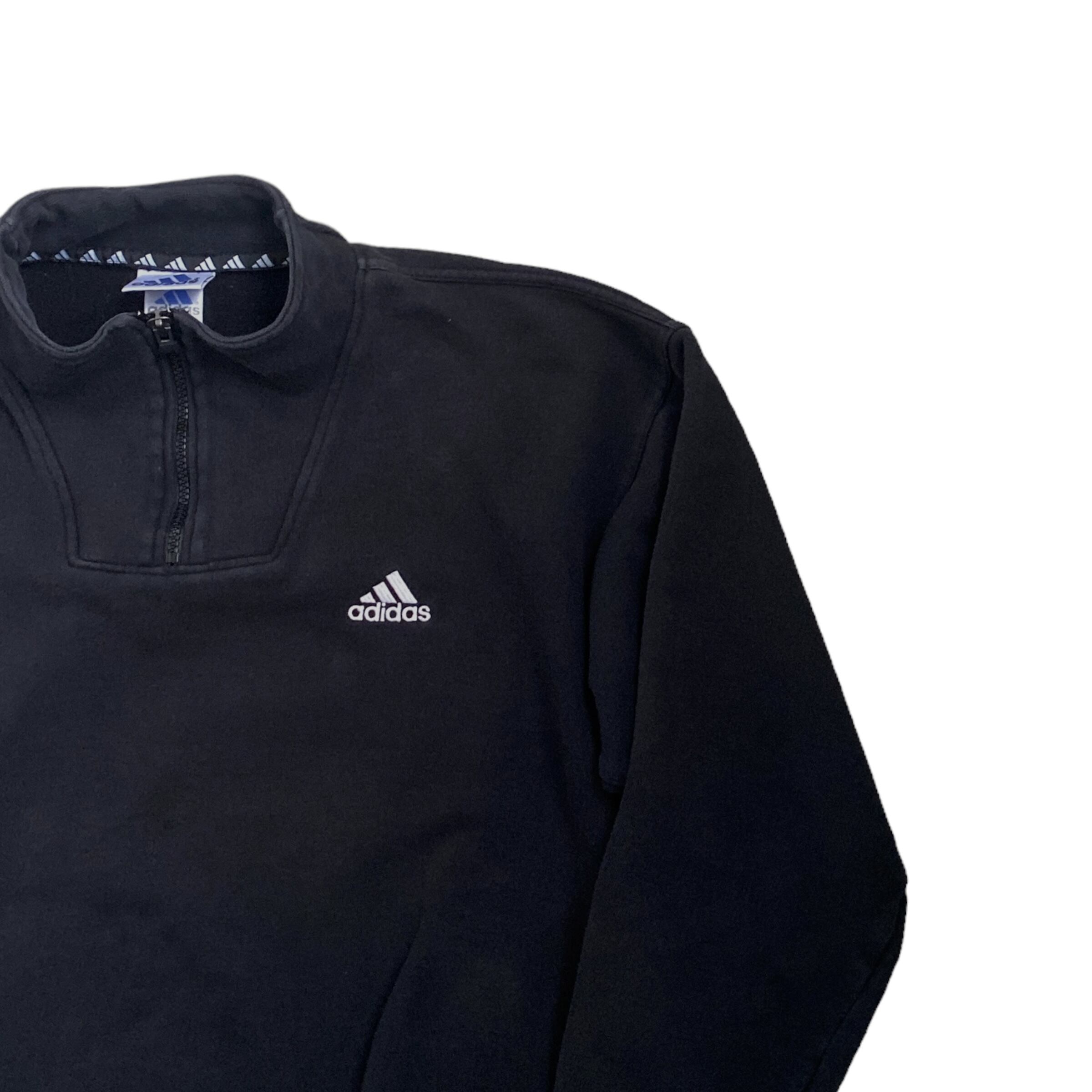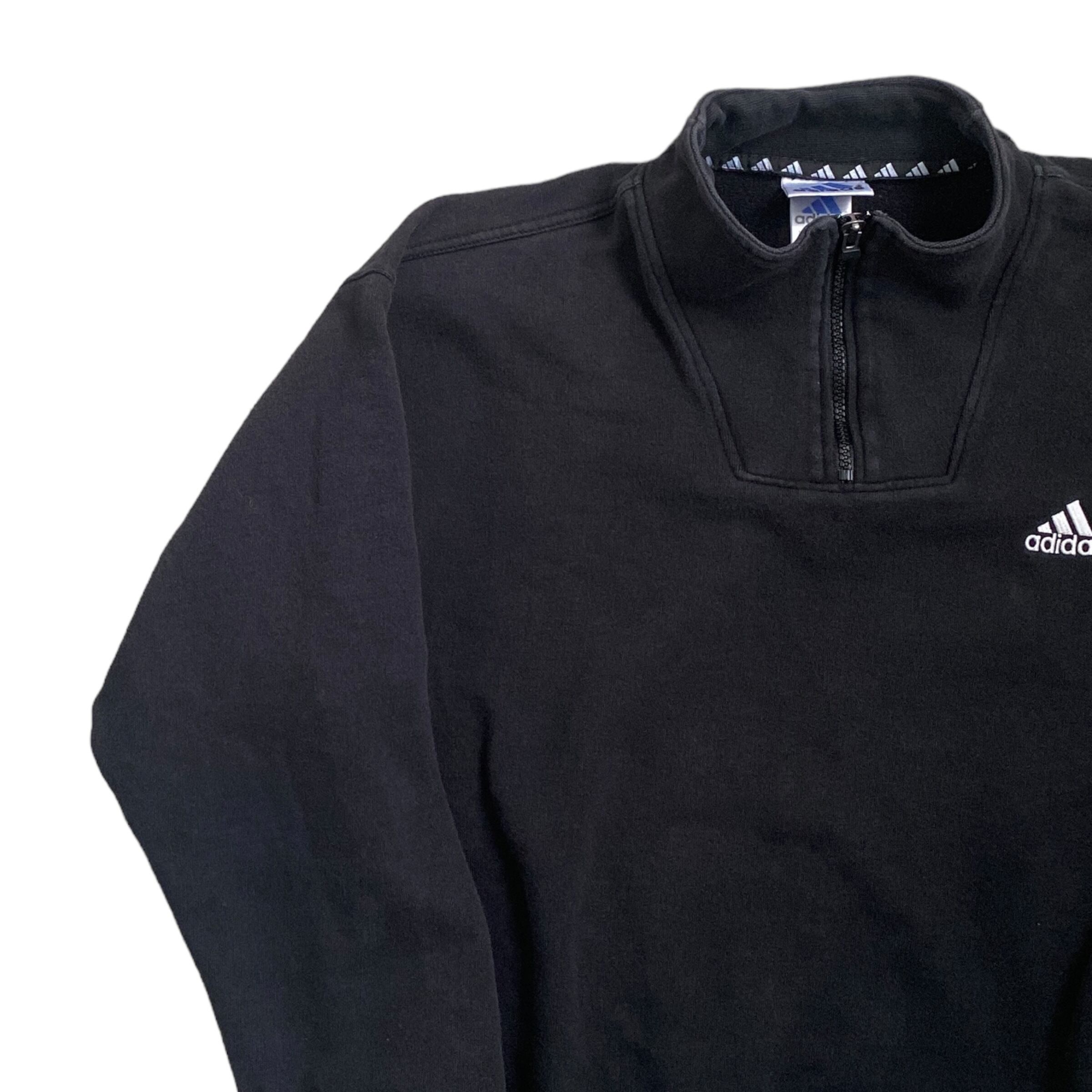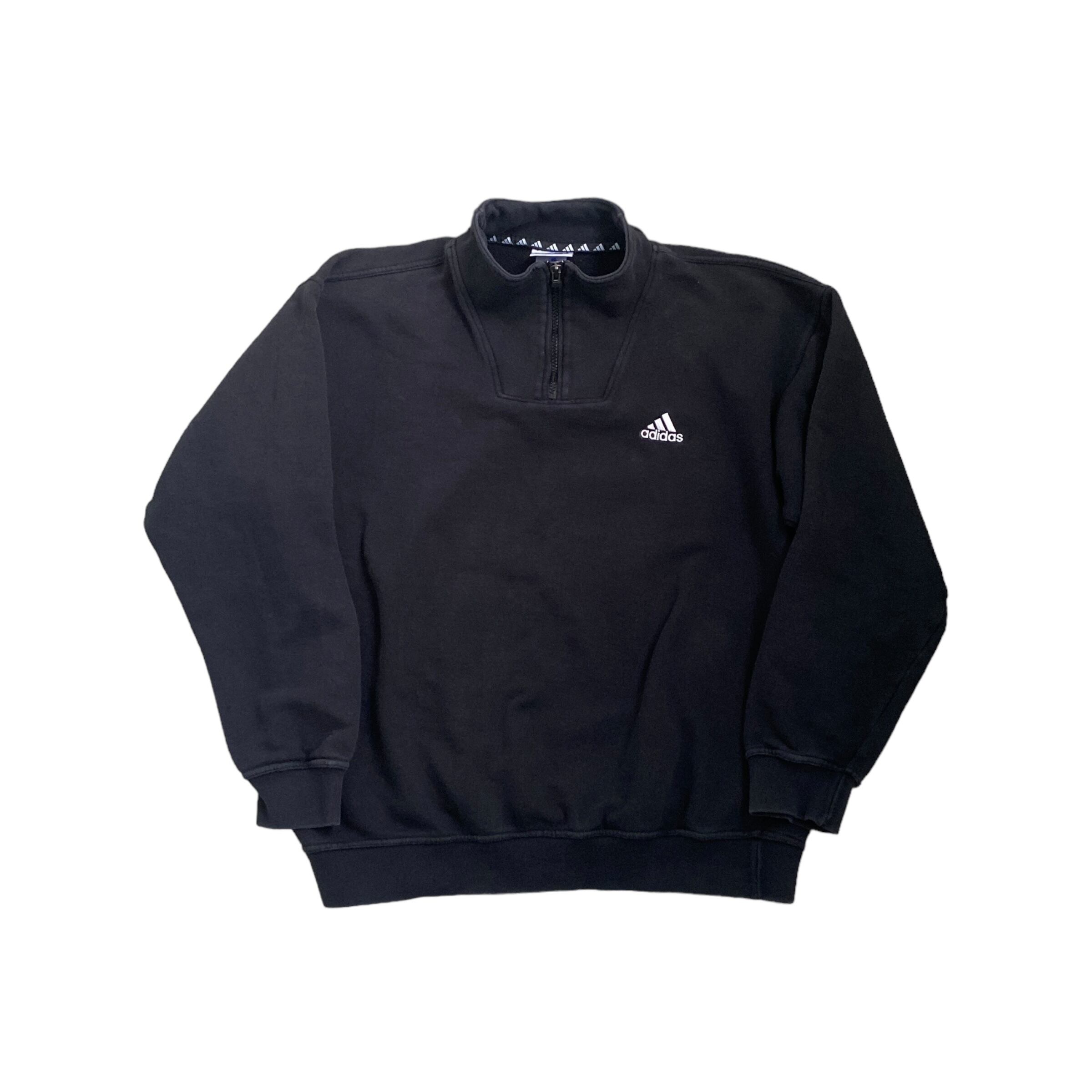 90s adidas high neck half zip sweat アディダス ハイネック ハーフジップ スウェット 黒 ブラック 古着 M