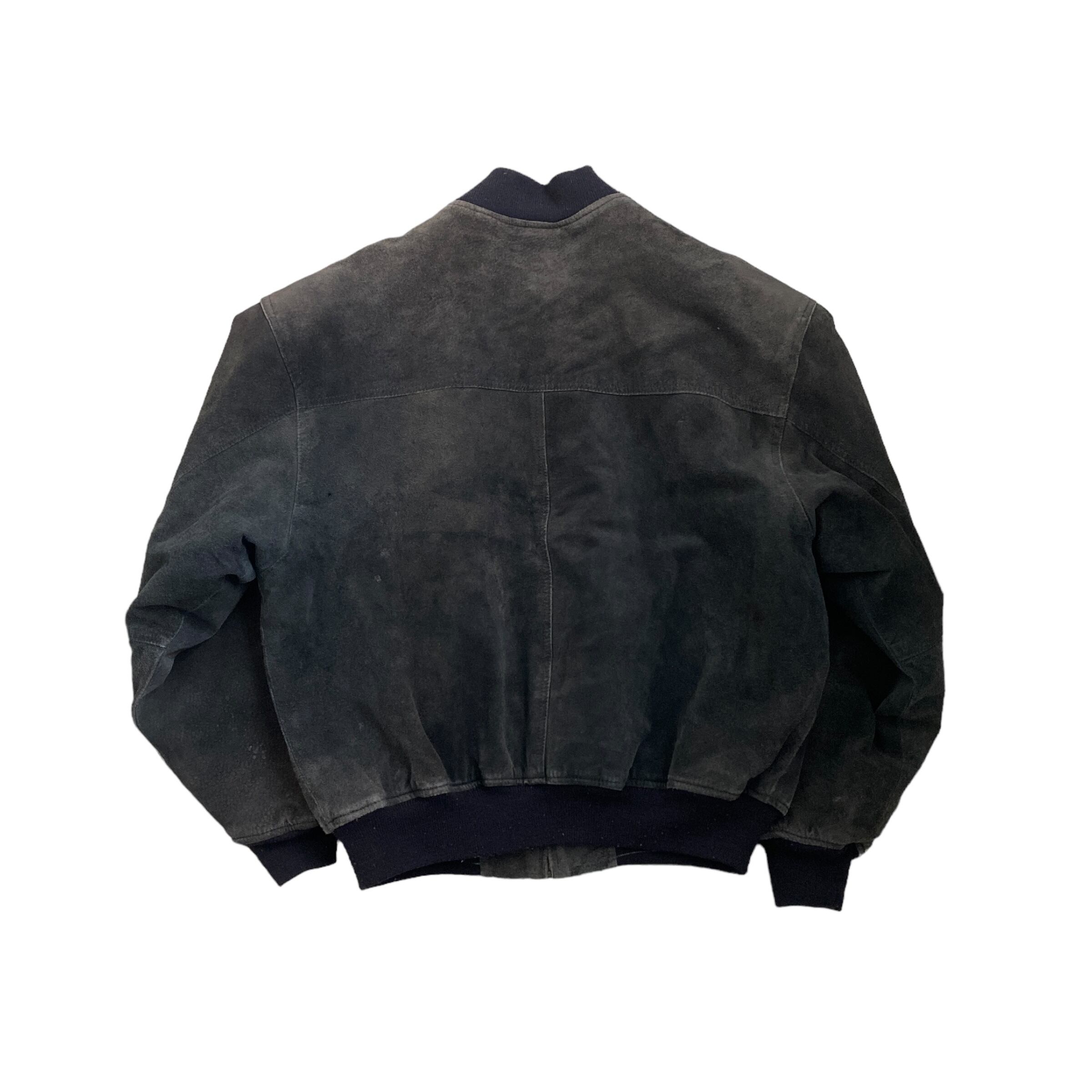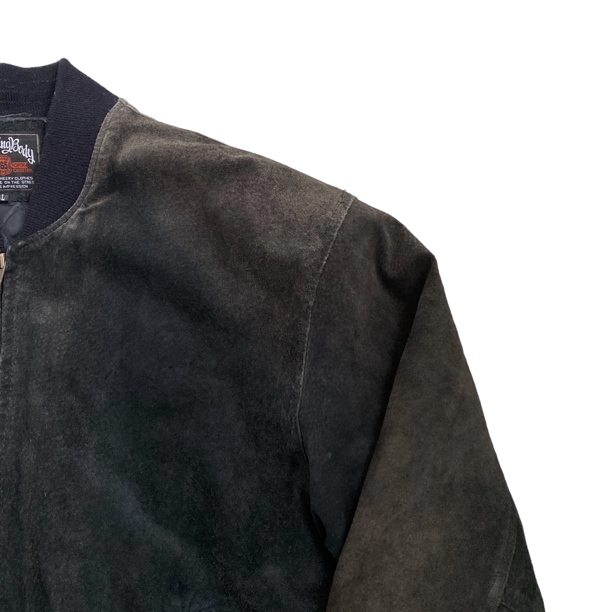 Alluring body MA-1 type pigskin leather jacket 豚革 レザージャケット 古着 ブラック 黒 XL
