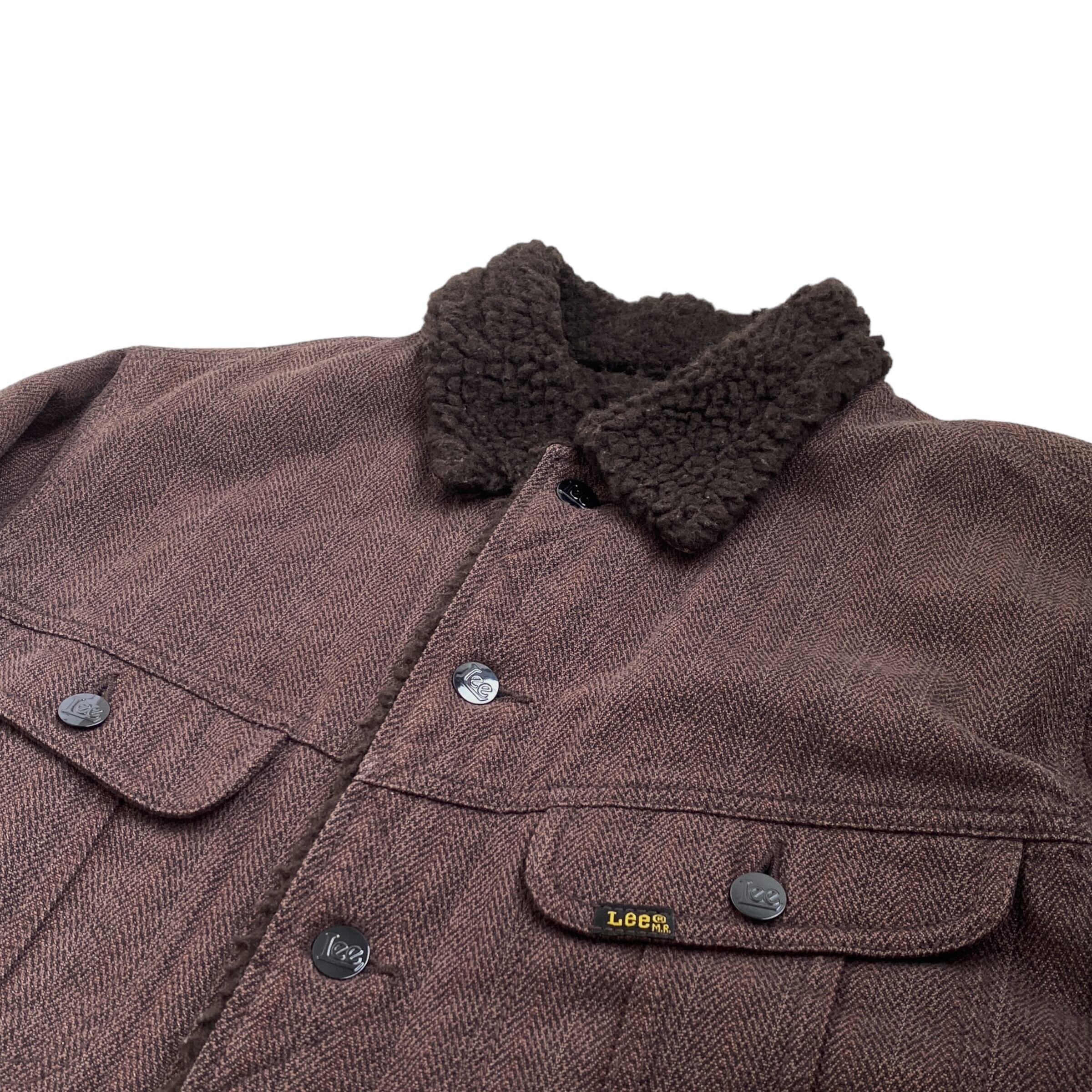 Lee HBT pattern shearling jacket リー 裏ボア ランチジャケット ヘリンボーンツイル調 茶 ブラウン L 古着