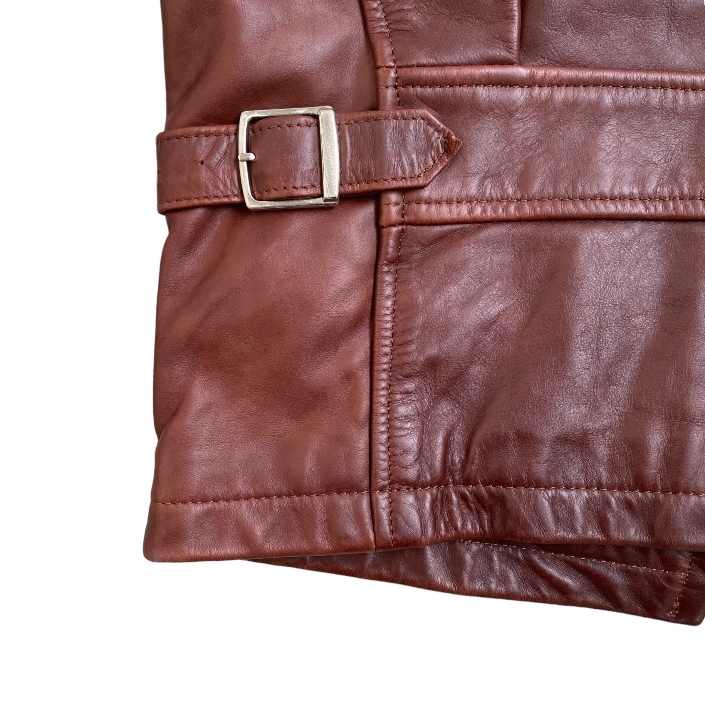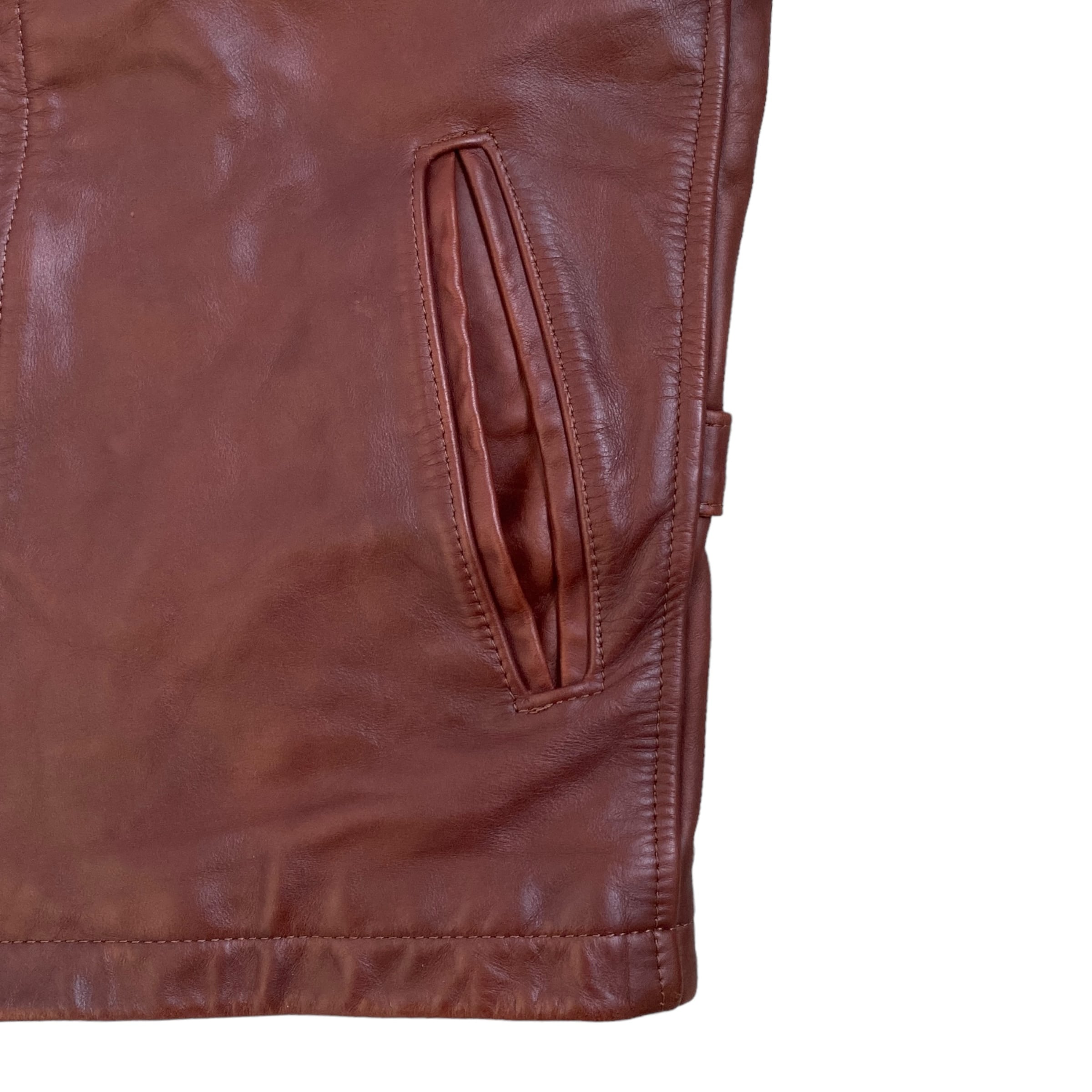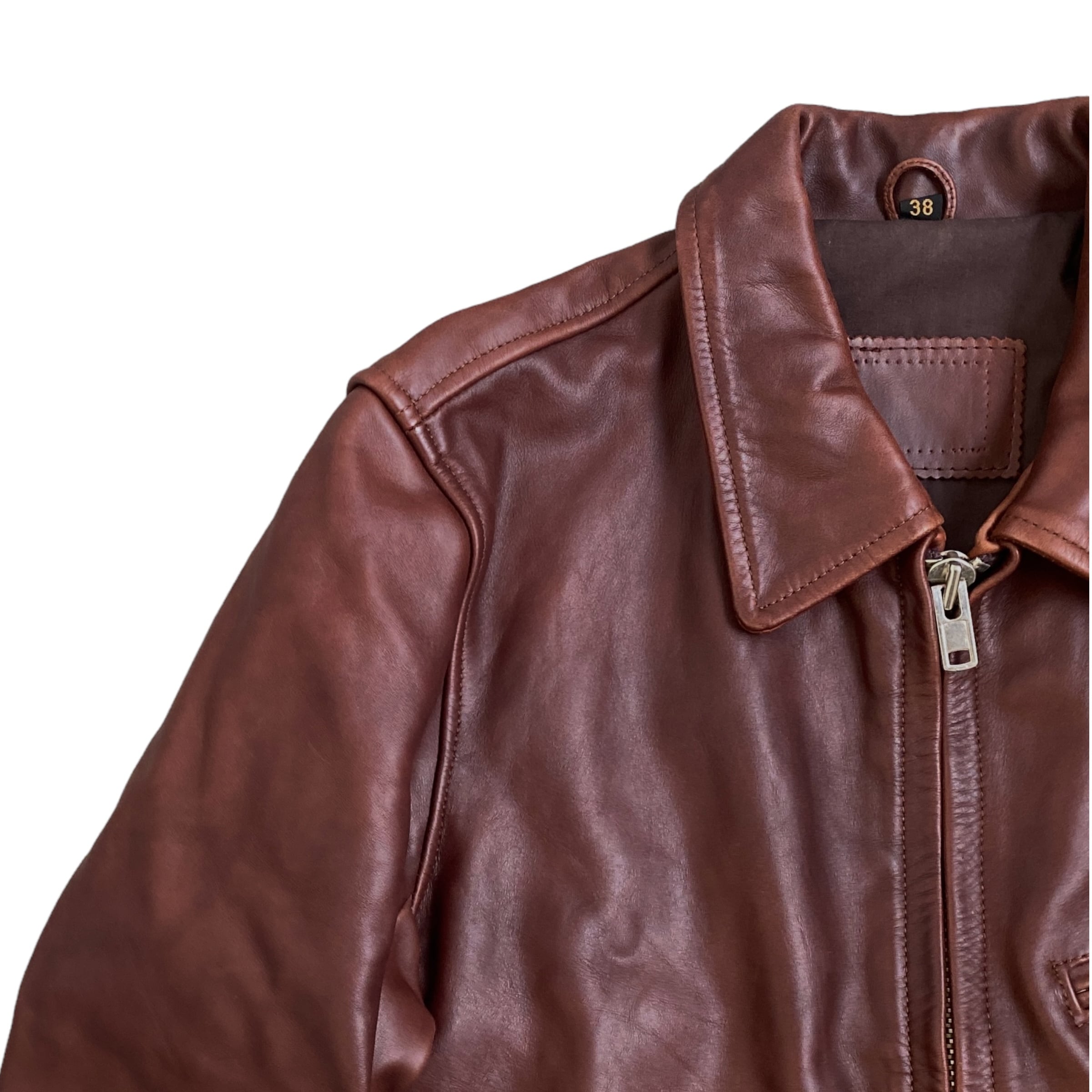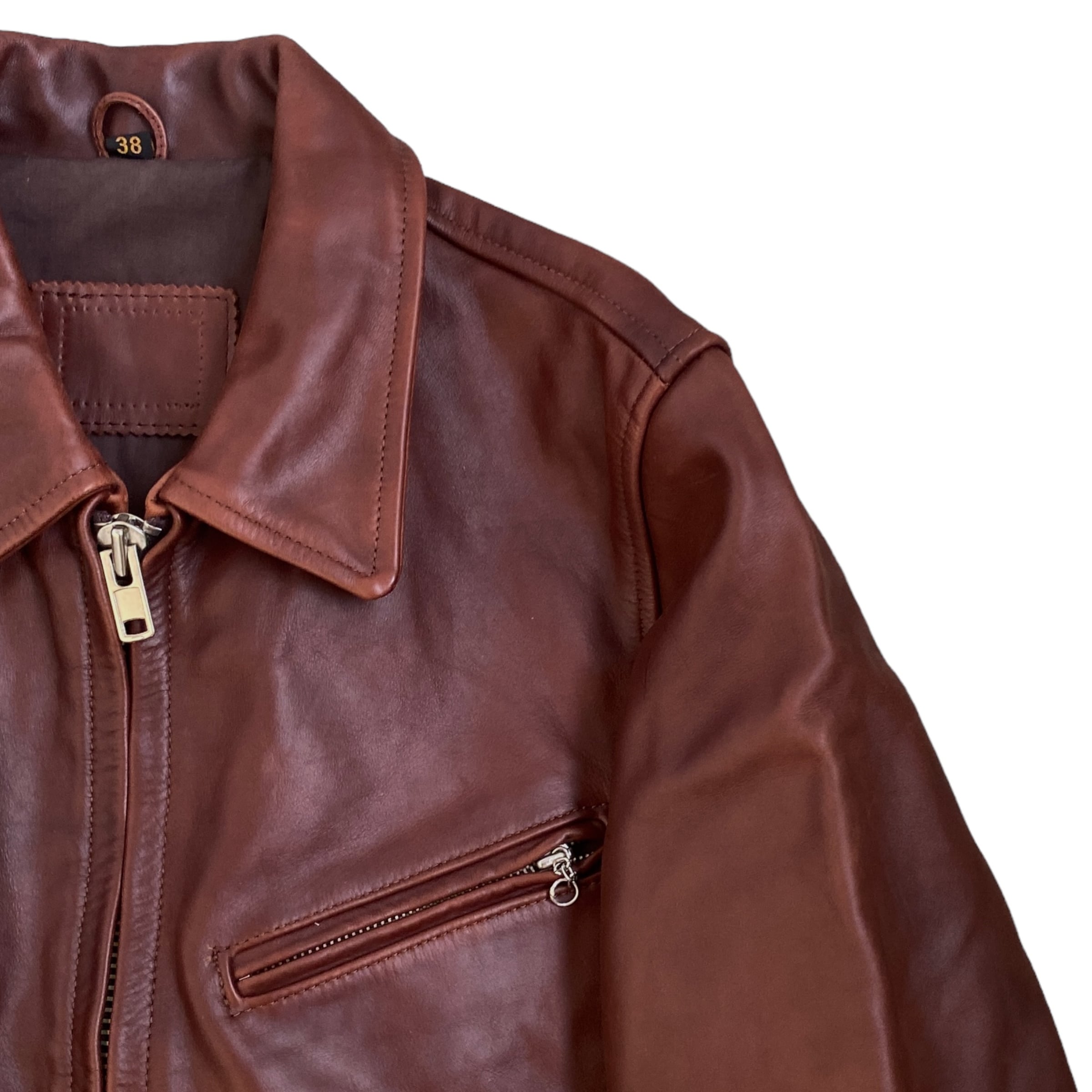 UNKNOWN single riders cowhide leather jacket ブランド不明 襟付きシングルライダースジャケット レザージャケット ブラウン 茶 古着 牛革
