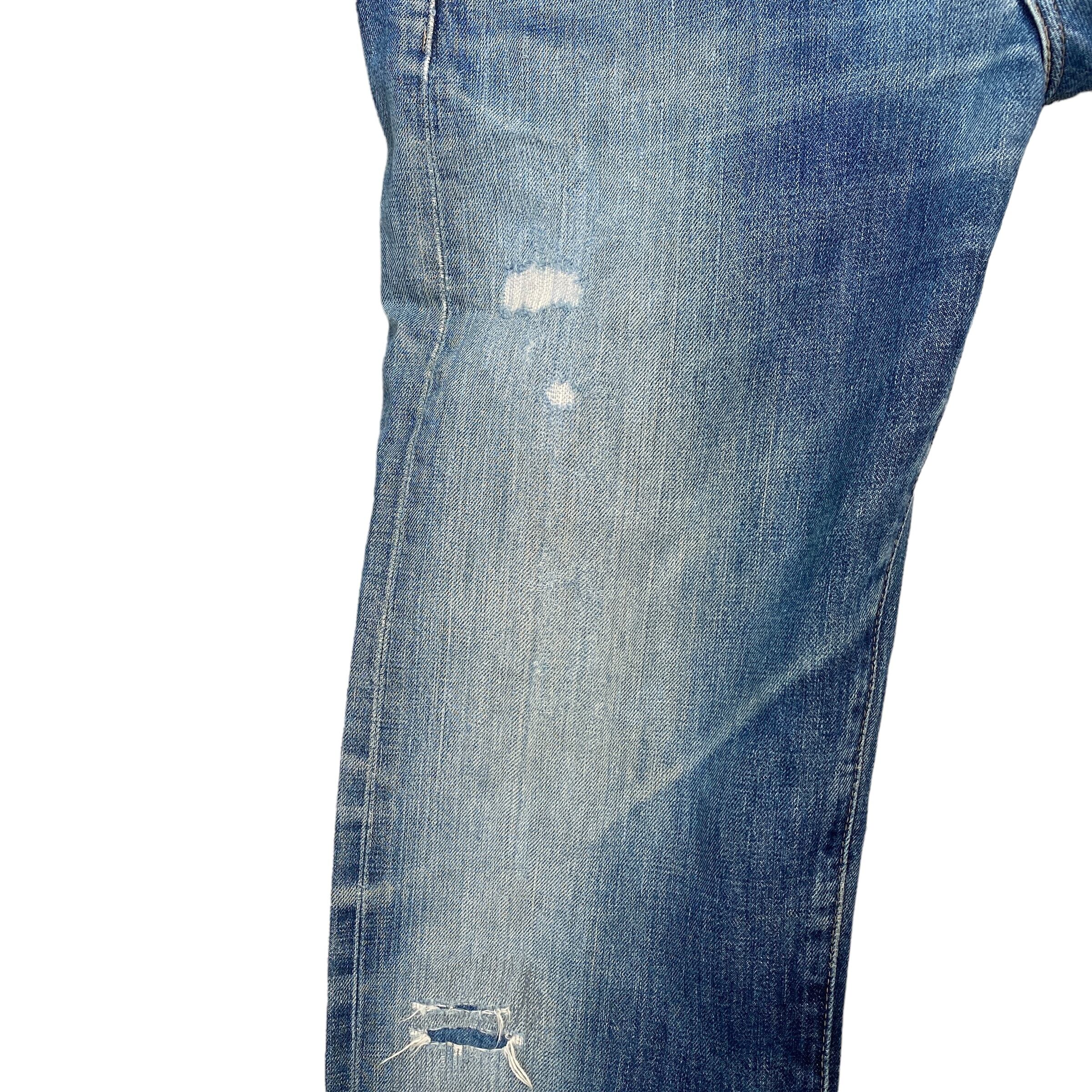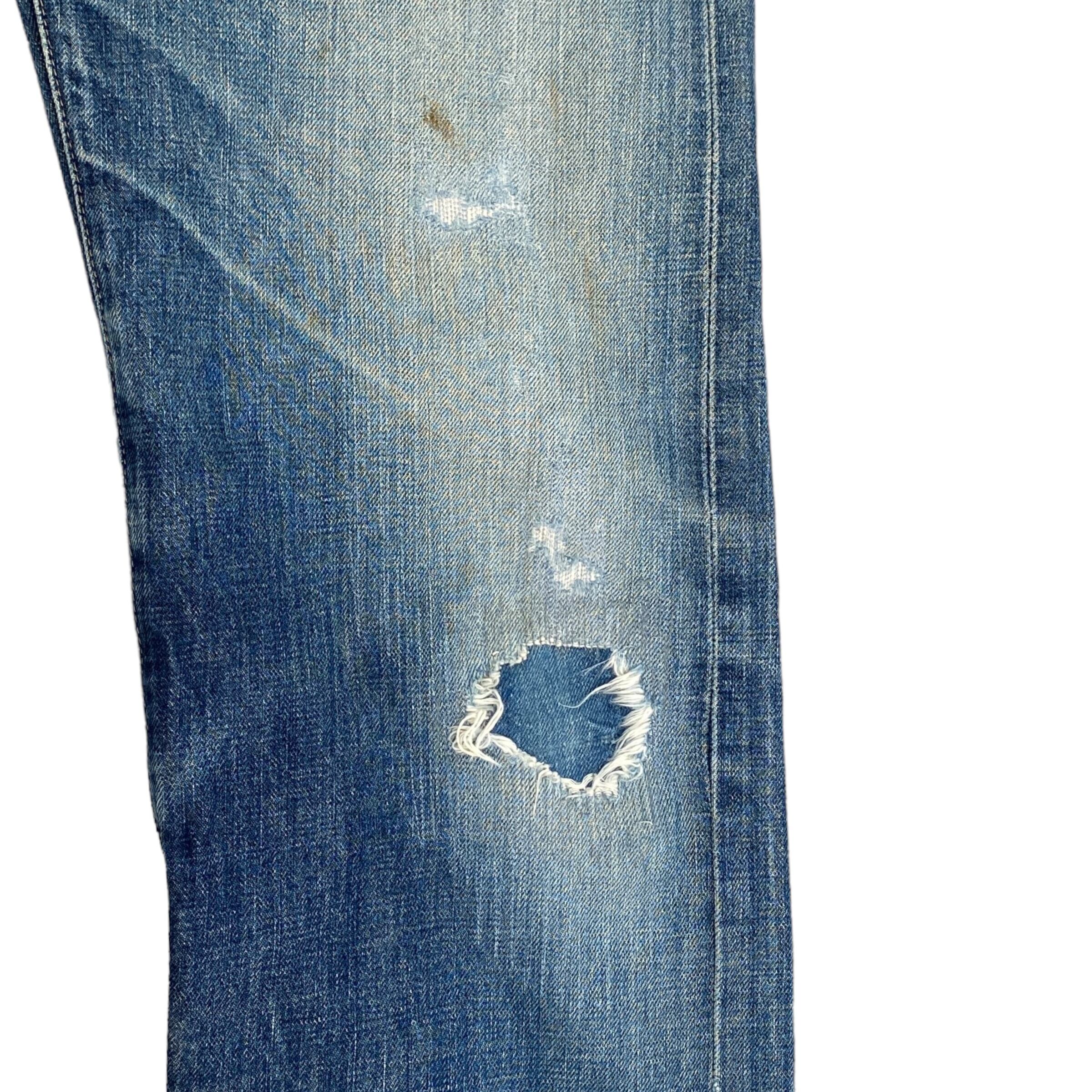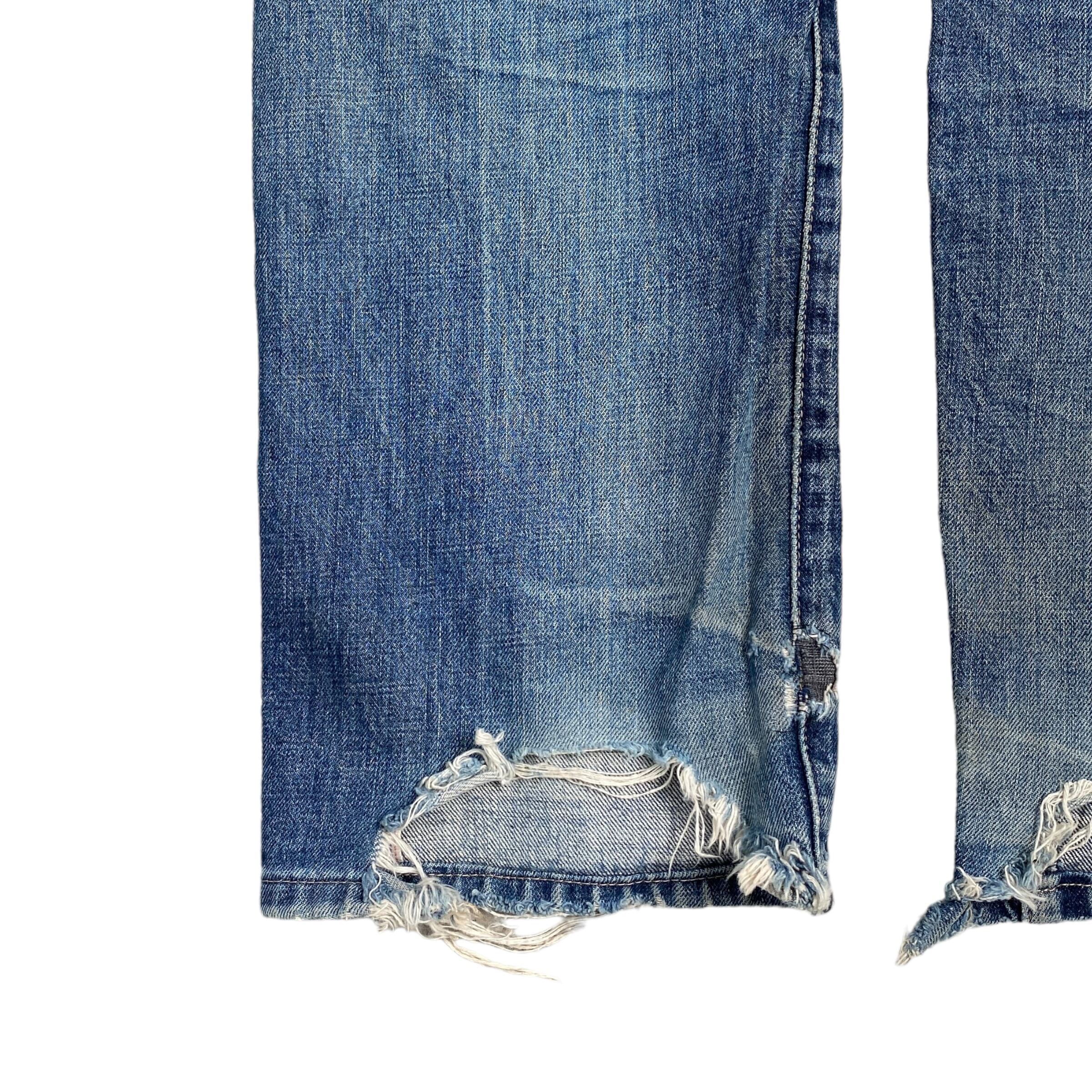 全体的に着用感や色落ち、裾のダメージがございますが、まだまだご着用いただける商品です。