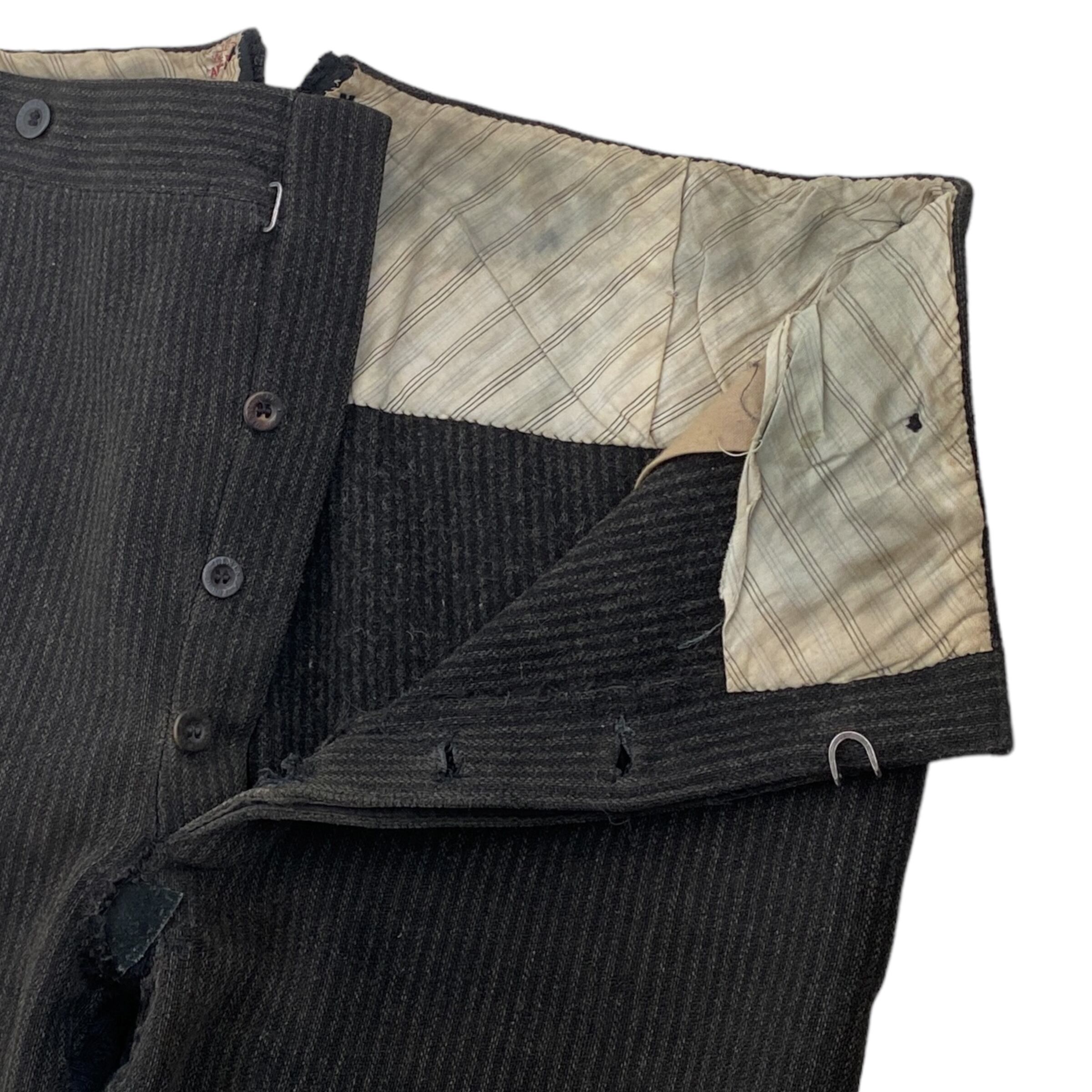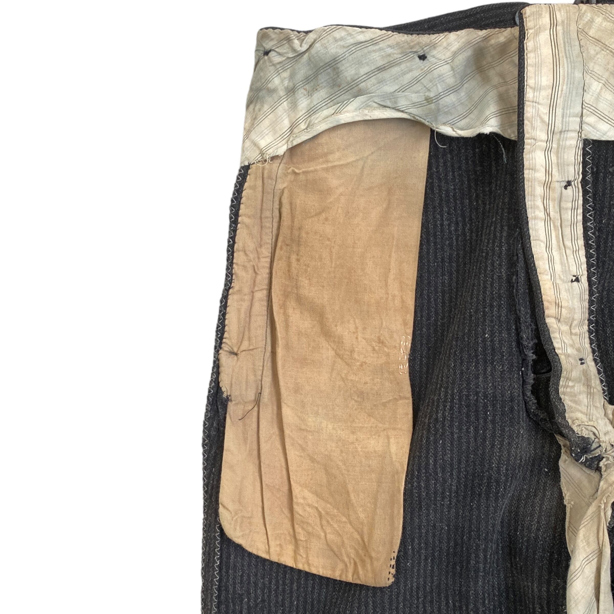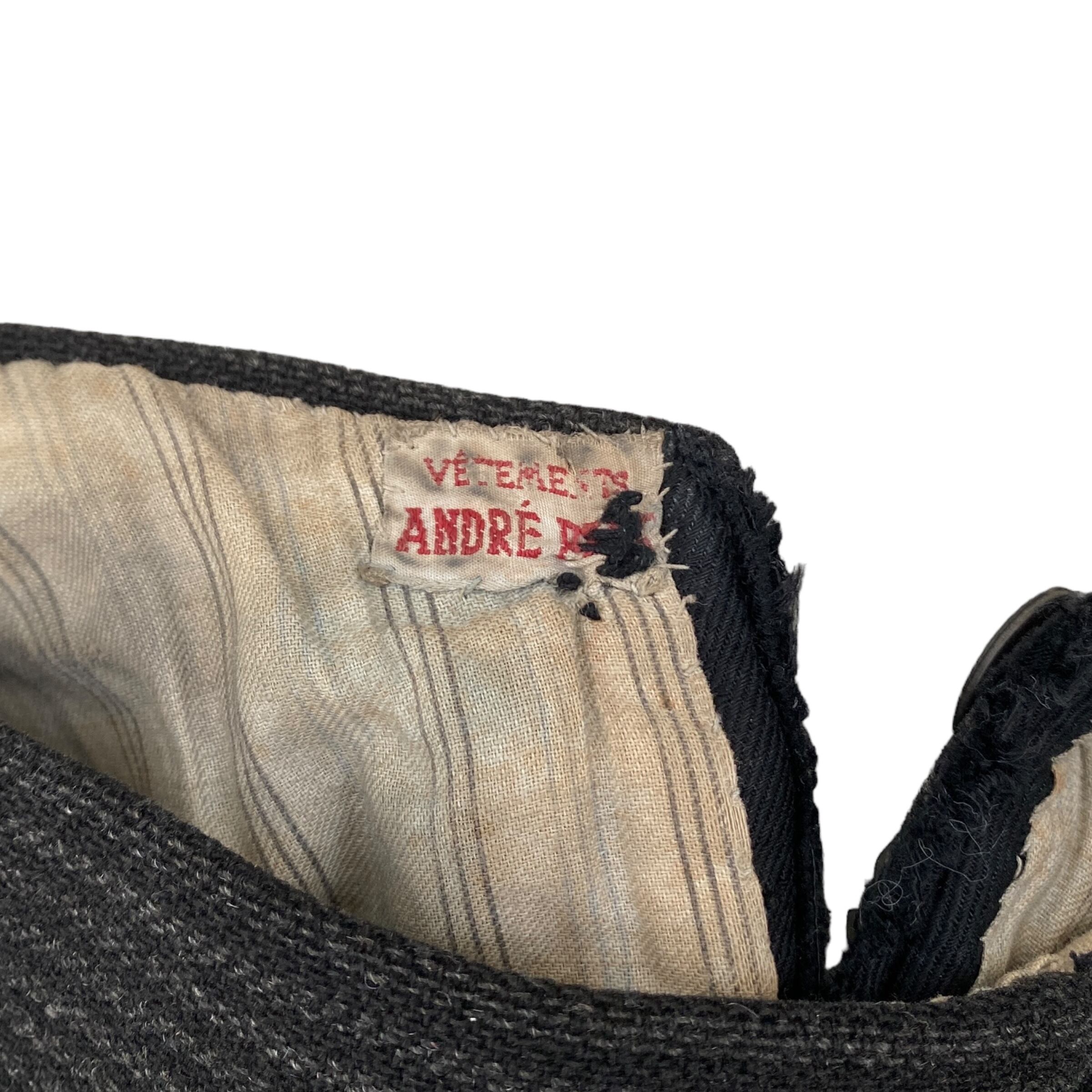 30s~40s EURO vintage French stripe work pants ”VETEMESTS ANDRE ????" ユーロヴィンテージ ストライプワークパンツ 2本針シンチバック ブラック グレー 黒 古着