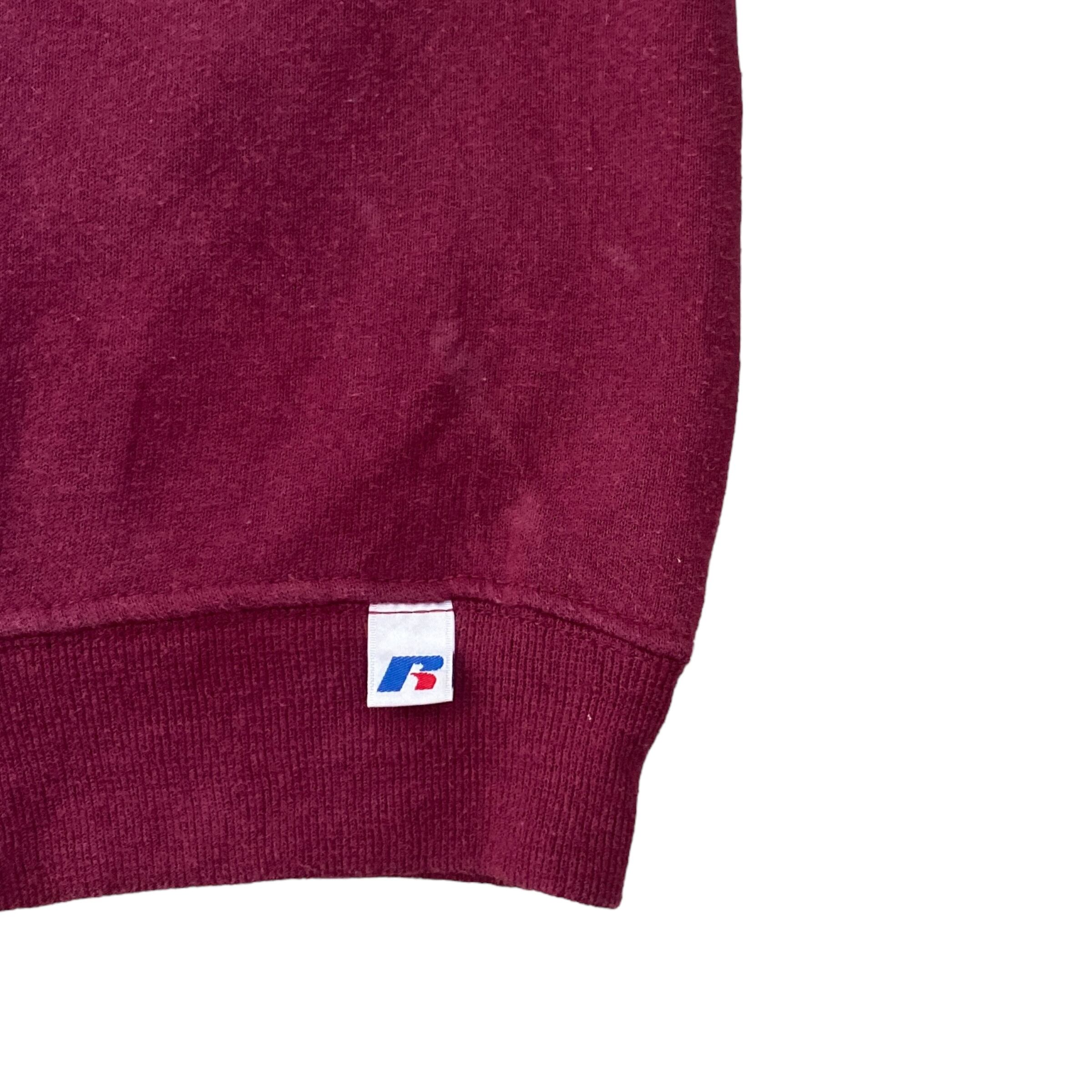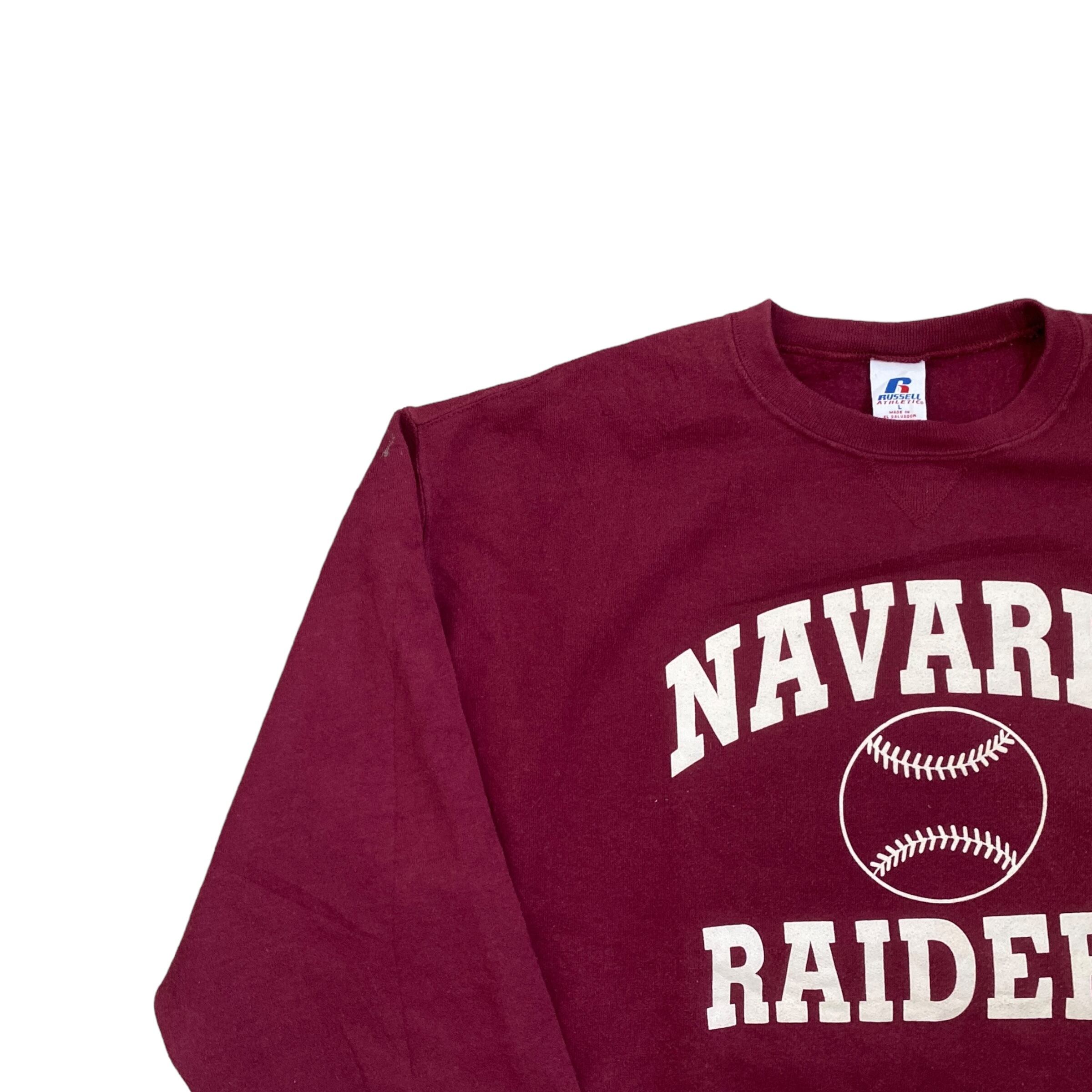 90s~ RUSSELL ATHLETICS repair sweat ”NAVARRE RAIDERS” ラッセルアスレチック スウェット 古着 L ワインレッド バーガンディ