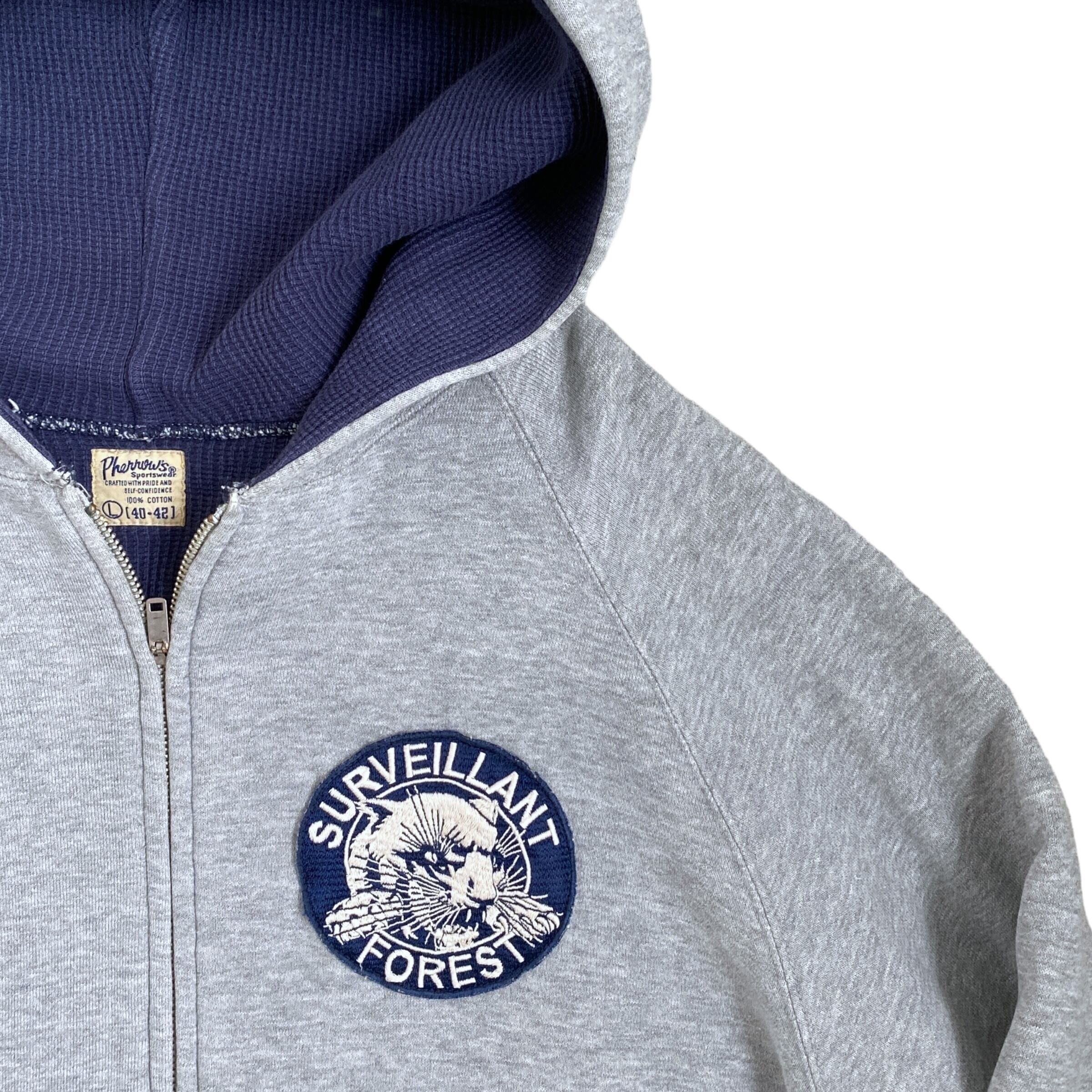 Pherrow's double face zip up hoodie フェローズ ダブルフェイス ジップアップパーカー サーマル 古着 L グレー ネイビー 紺 WALDES zipper 両爪