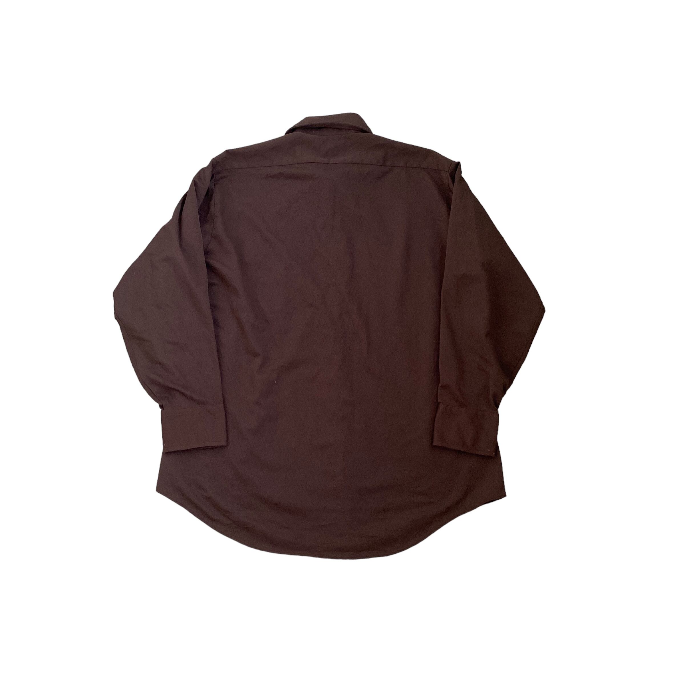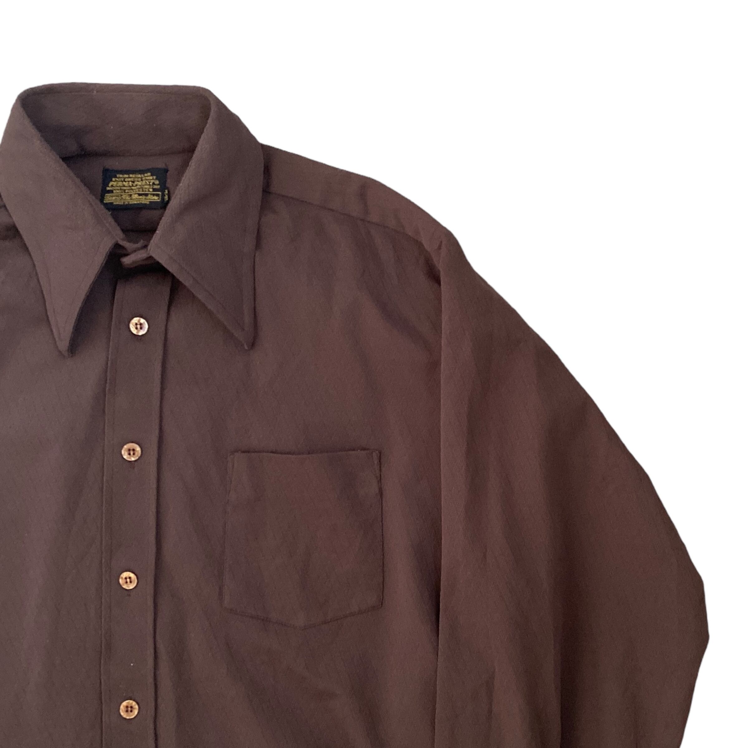 70s~ Sears PERMA PREST collar stay shirt シアーズ パーマプレスト 長袖シャツ ブラウン 茶 古着 6 1/2-34