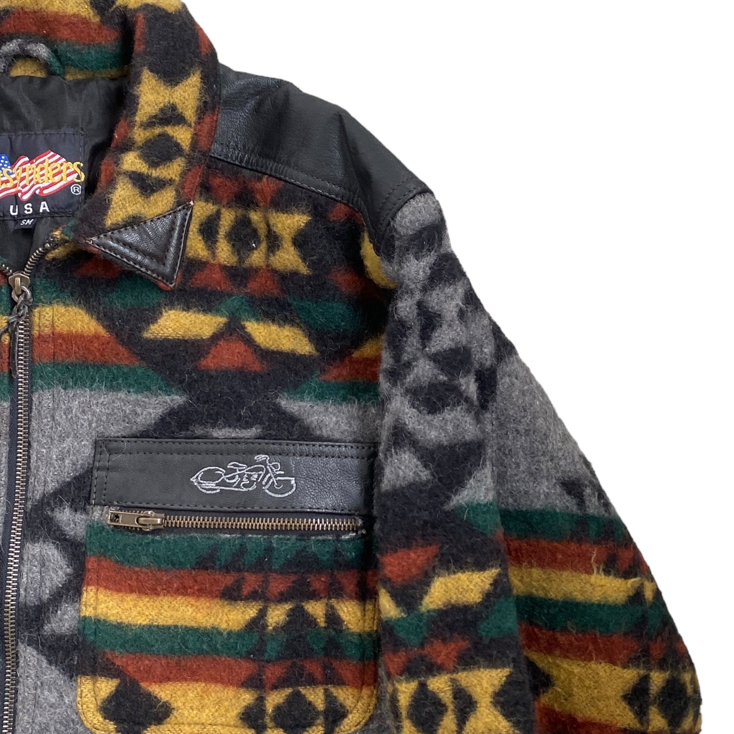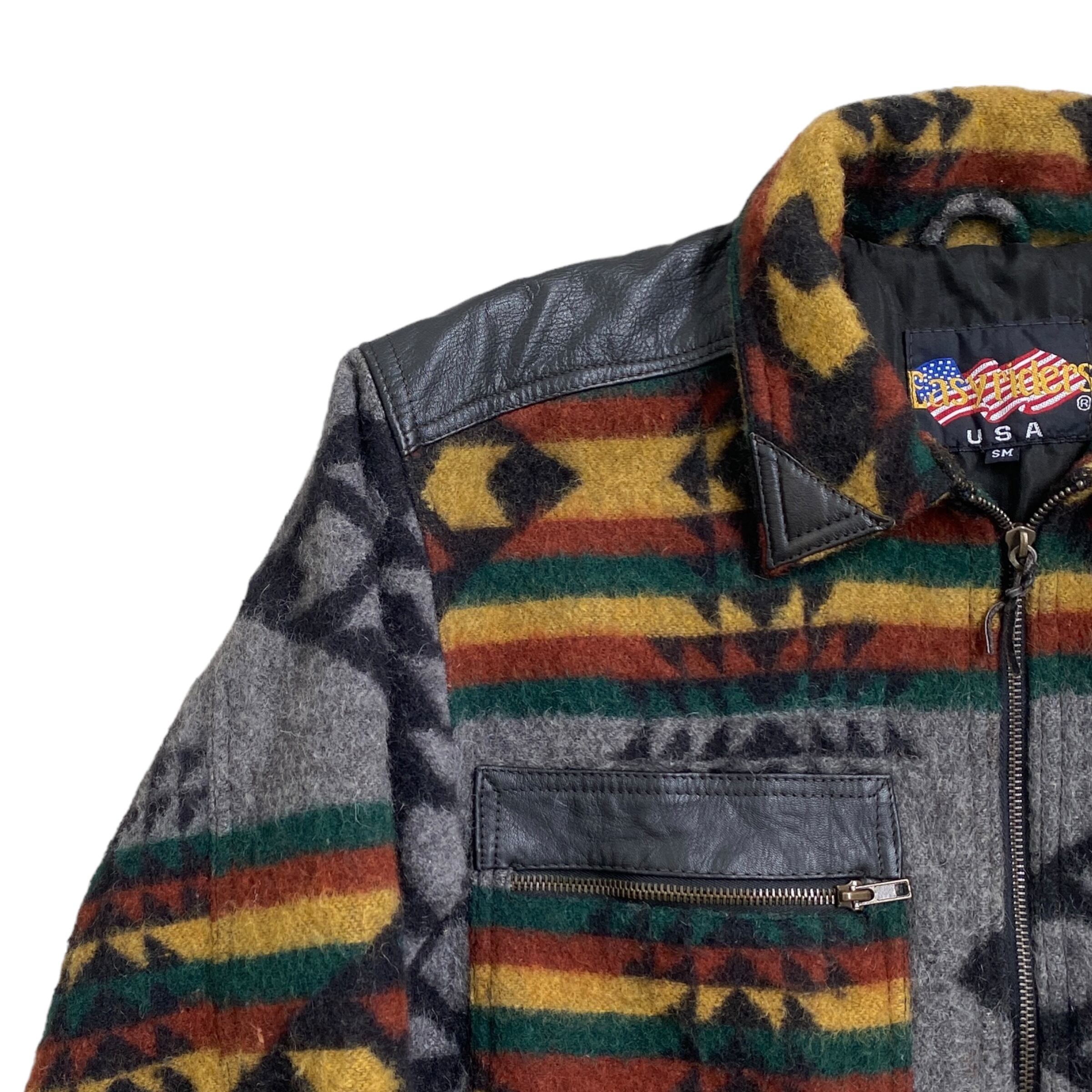 70s~80s? EASY RIDERS native pattern wool 100% jacket vintage イージーライダース ネイティブ柄 ウールジャケット 古着 ヴィンテージ SM レザー切替
