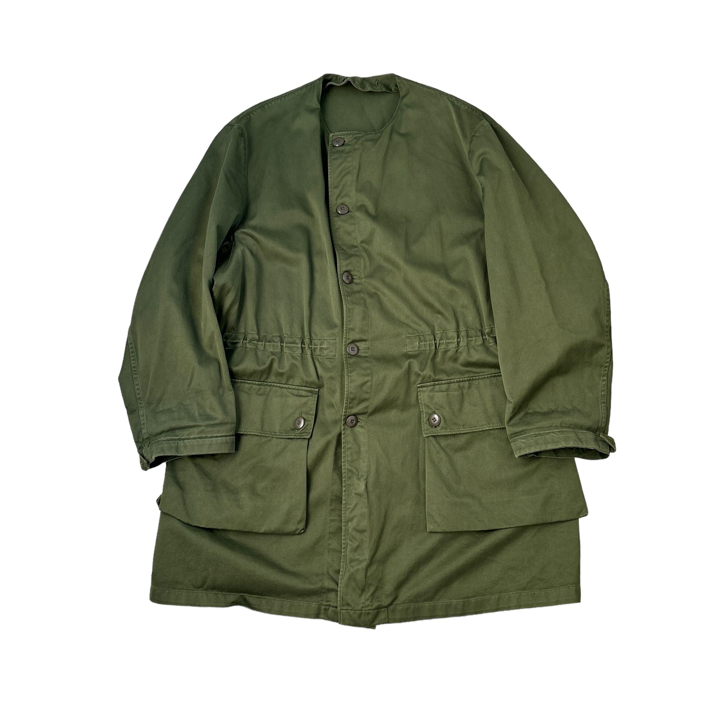 【美品】Swedish army M-59 collarless field coat vintage スウェーデン軍 襟無し フィールドコート 大きめ 古着 ヴィンテージ オリーブ カーキ グリーン シェルのみ