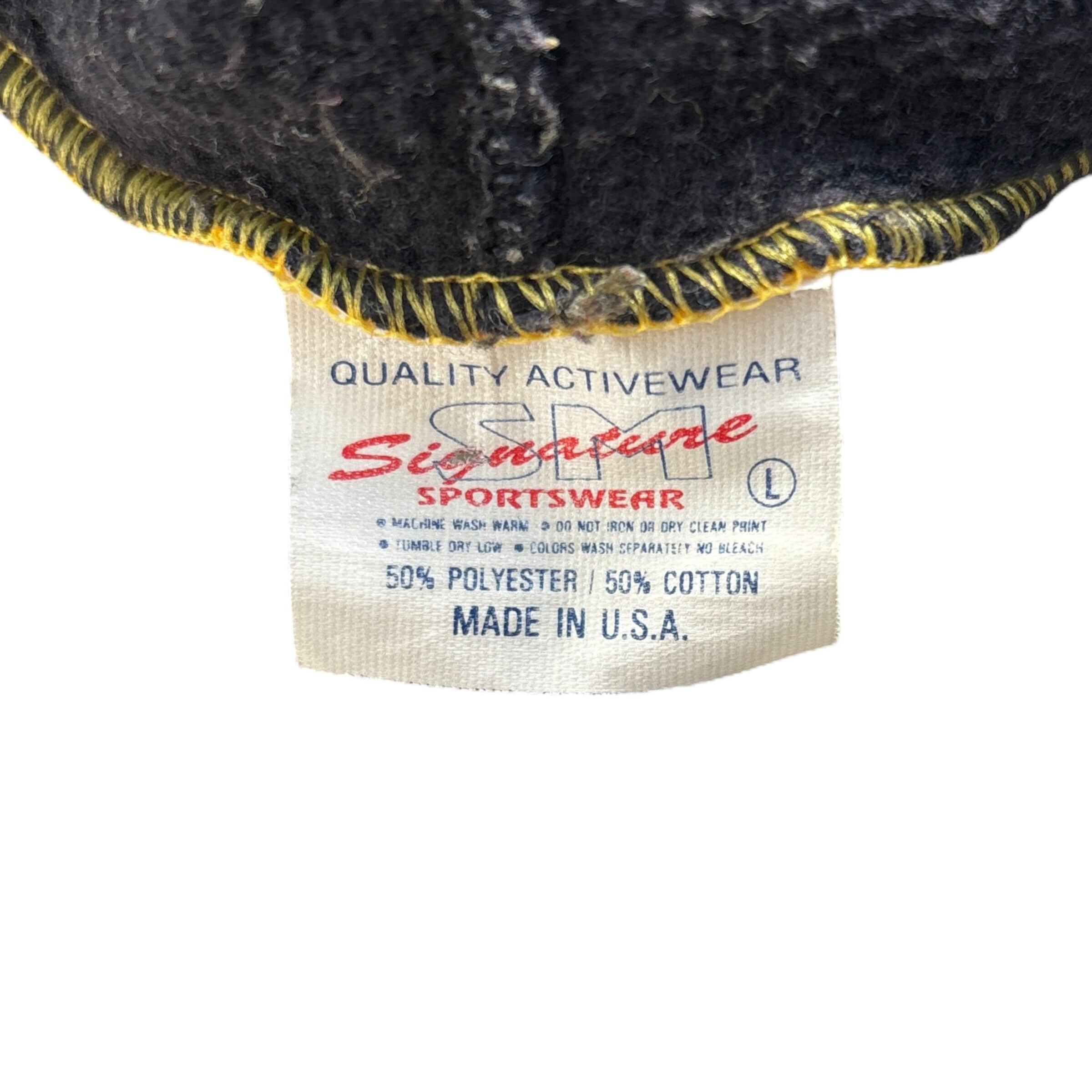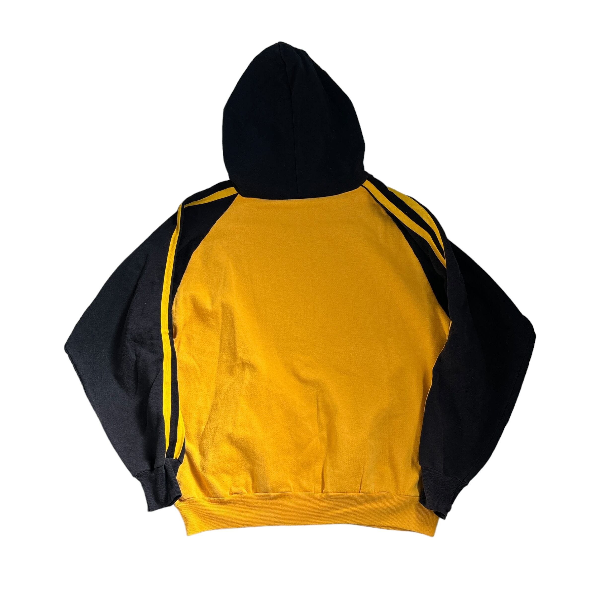 80s~90s Signature sportswear two tone color raglan hoodie yellow × black MADE IN U.S.A. 80年代~90年代 シグネチャースポーツウェア ツートンカラー プルオーバー パーカー ラグラン 古着 L イエロー ブラック 黄 黒 USA製