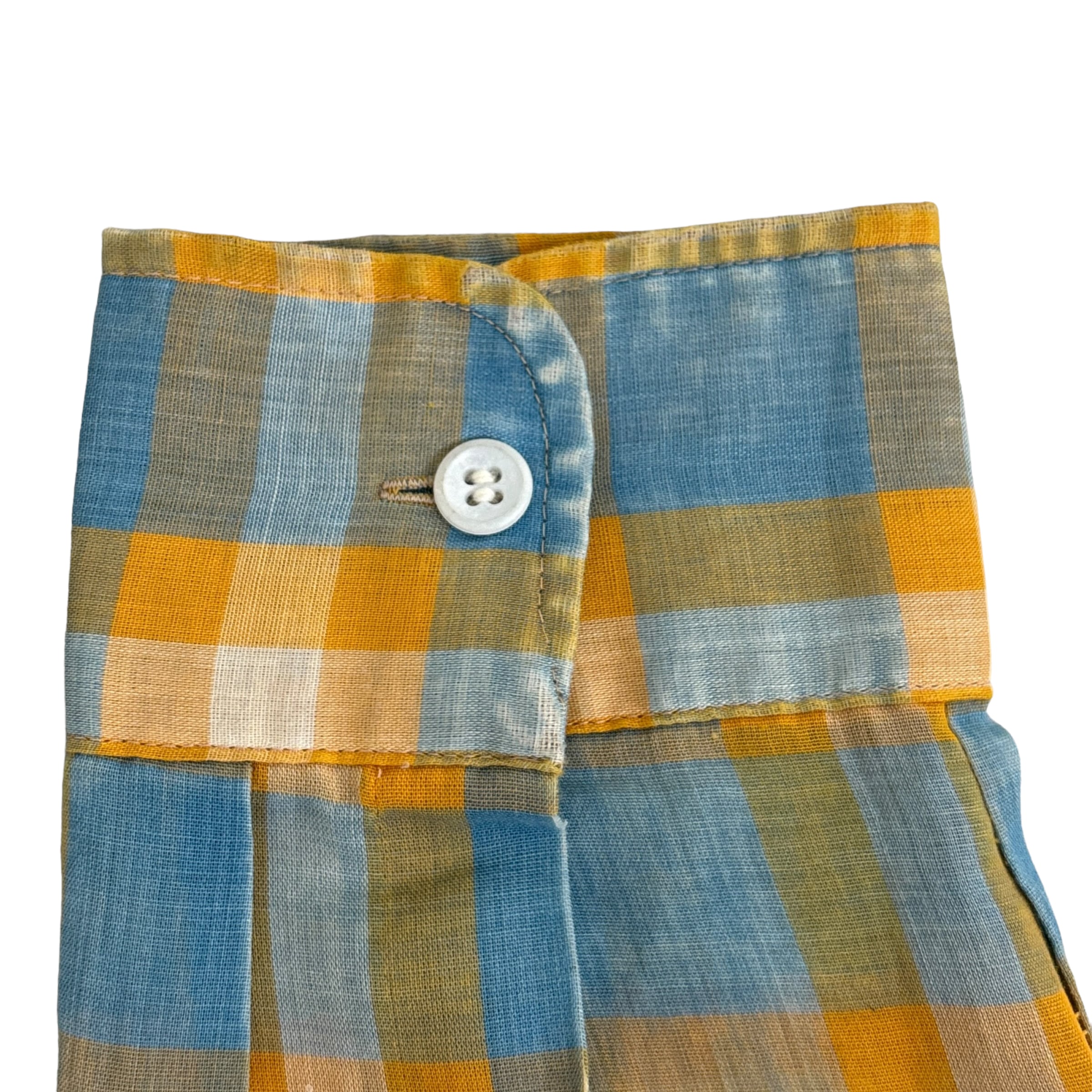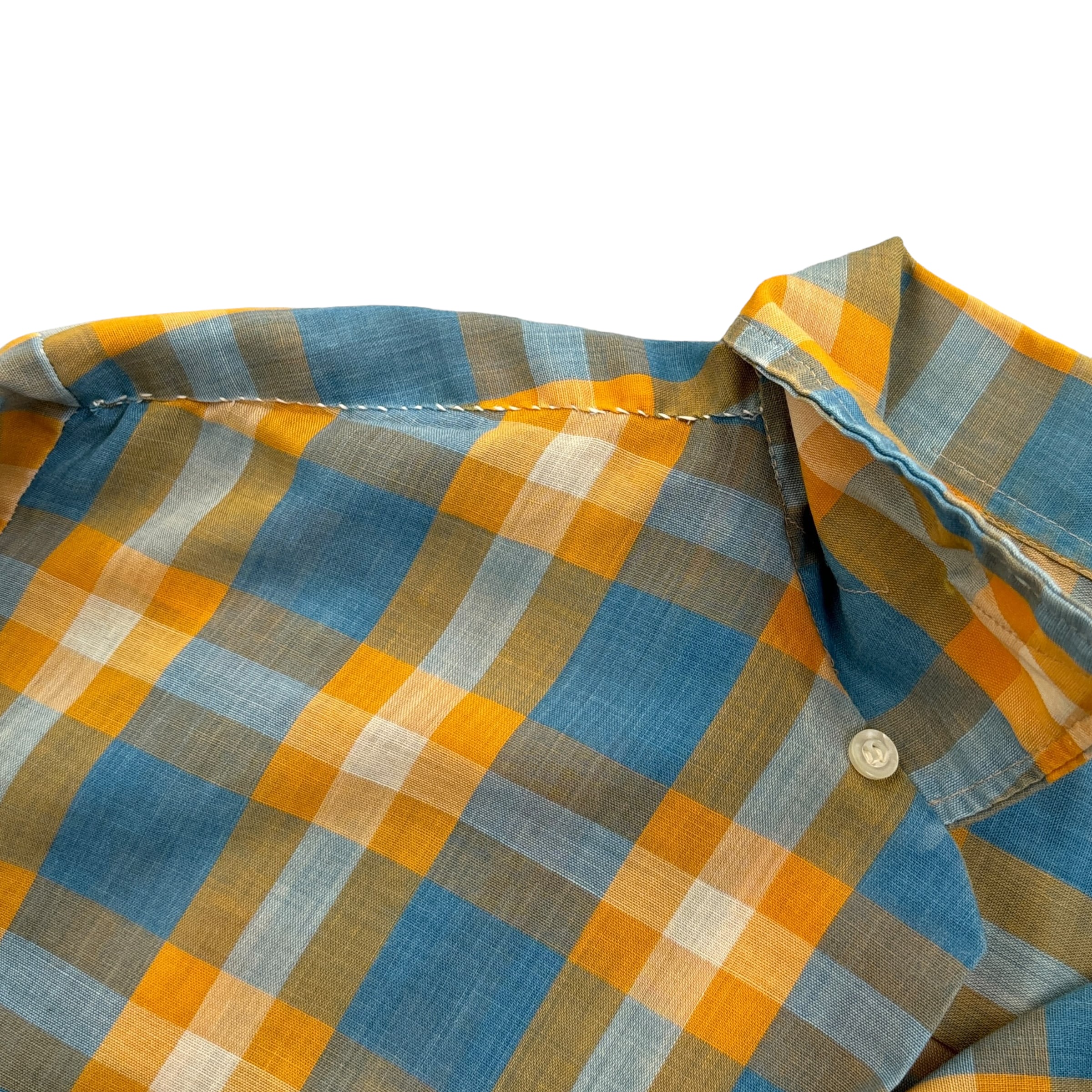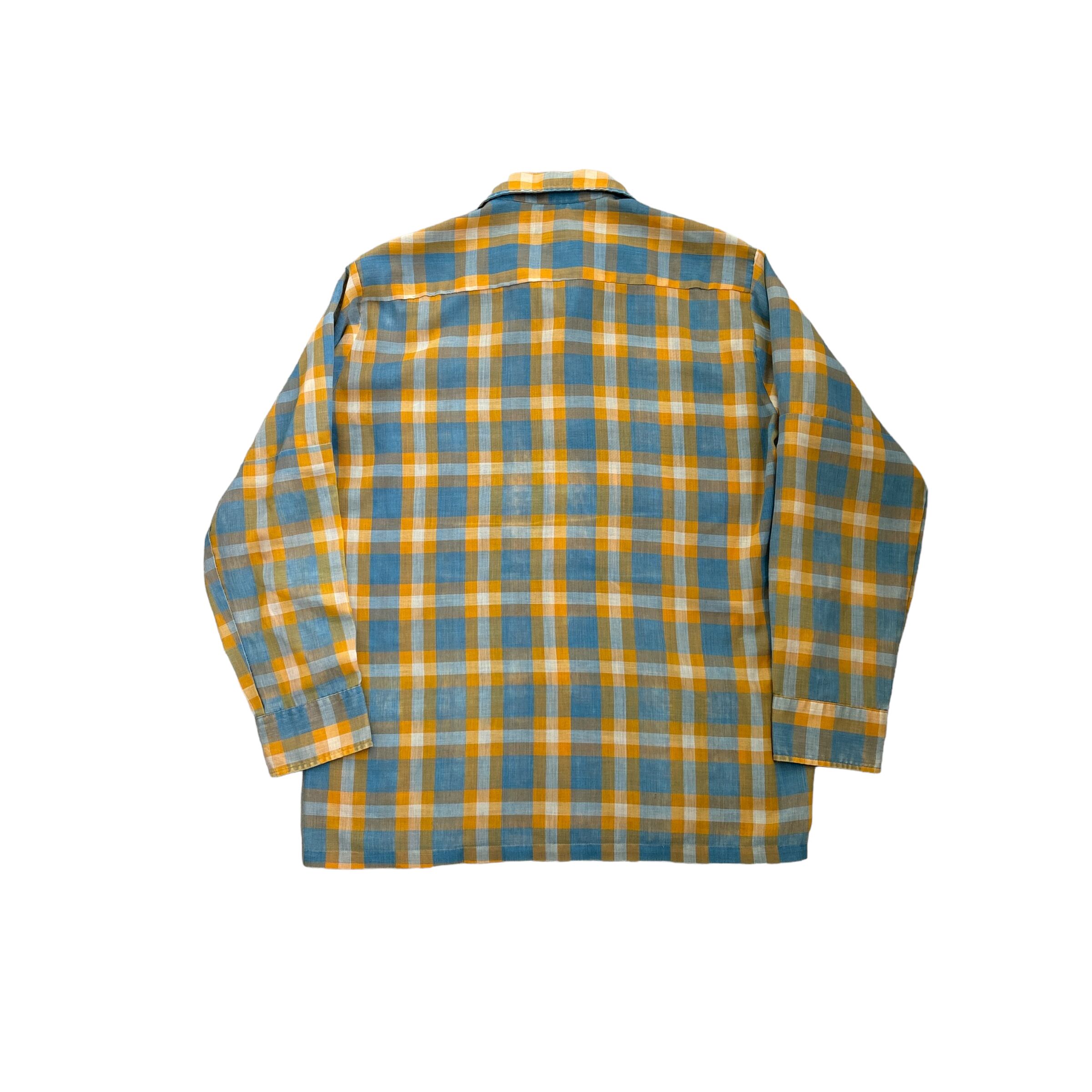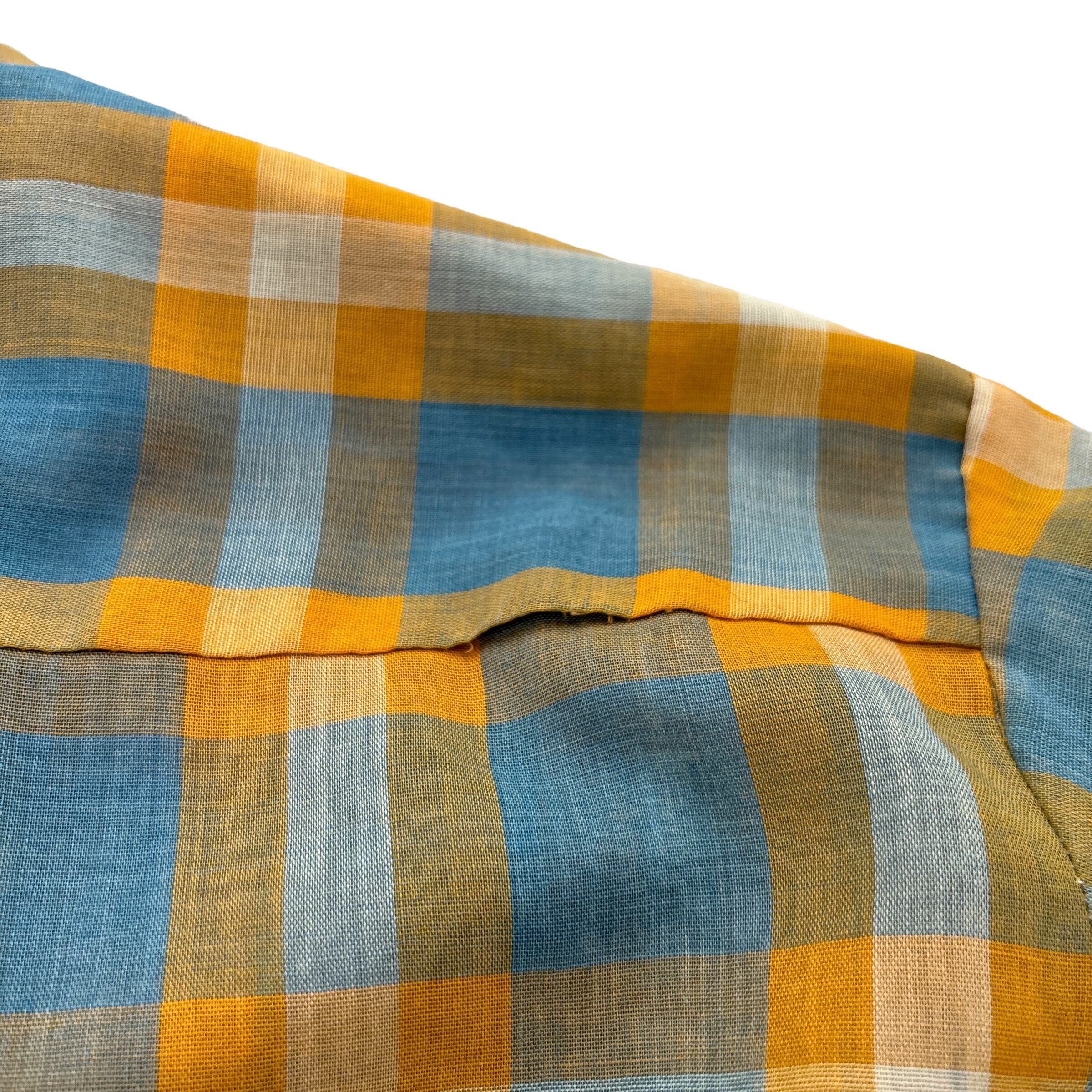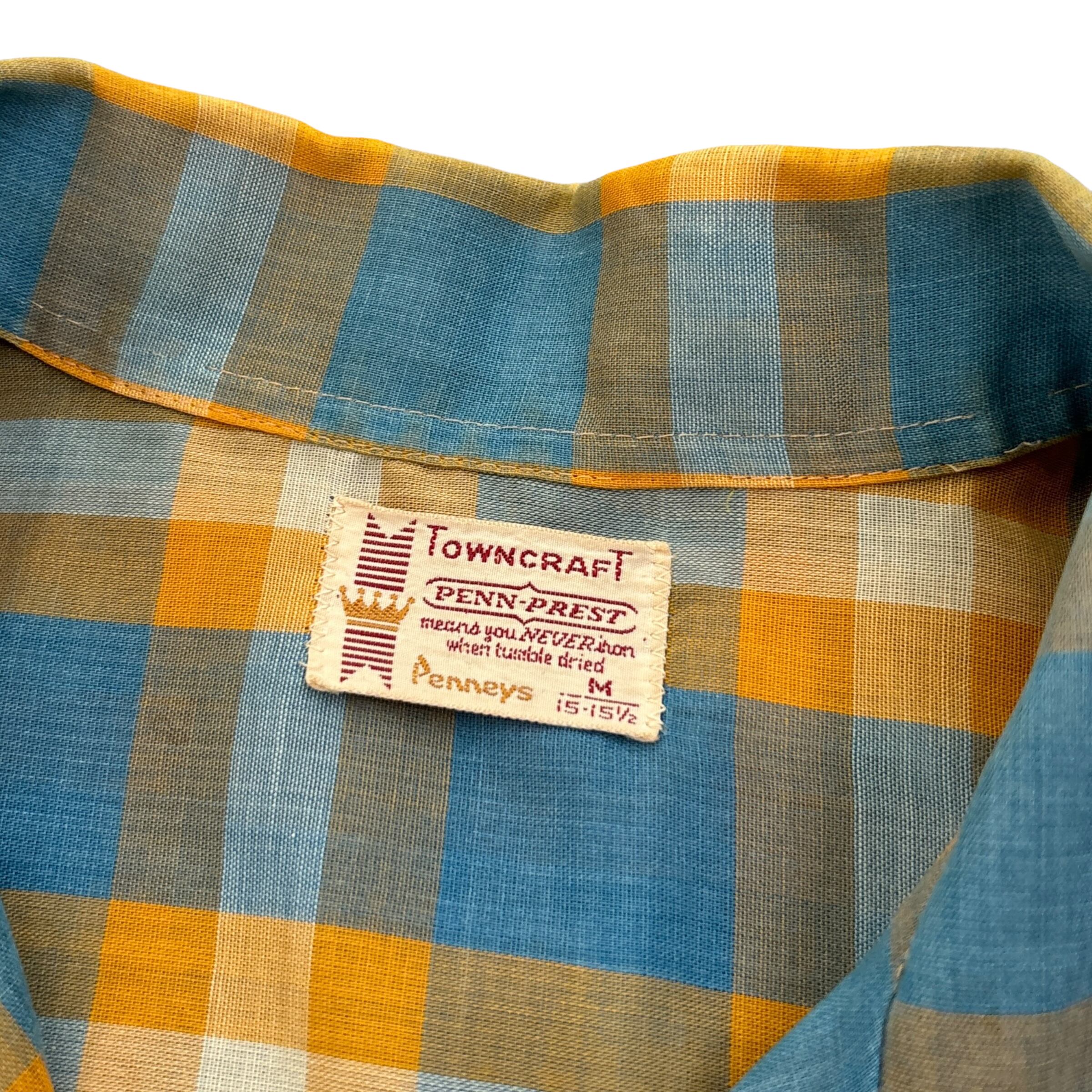 60s~70s Penneys TOWNCRAFT check pattern shirts open collar shirt vintage 60年代~70年代 ペニーズ タウンクラフト チェック柄 長袖シャツ チェックシャツ 開襟 オープンカラーシャツ 古着 ヴィンテージ M イエロー ブルー 黄 青