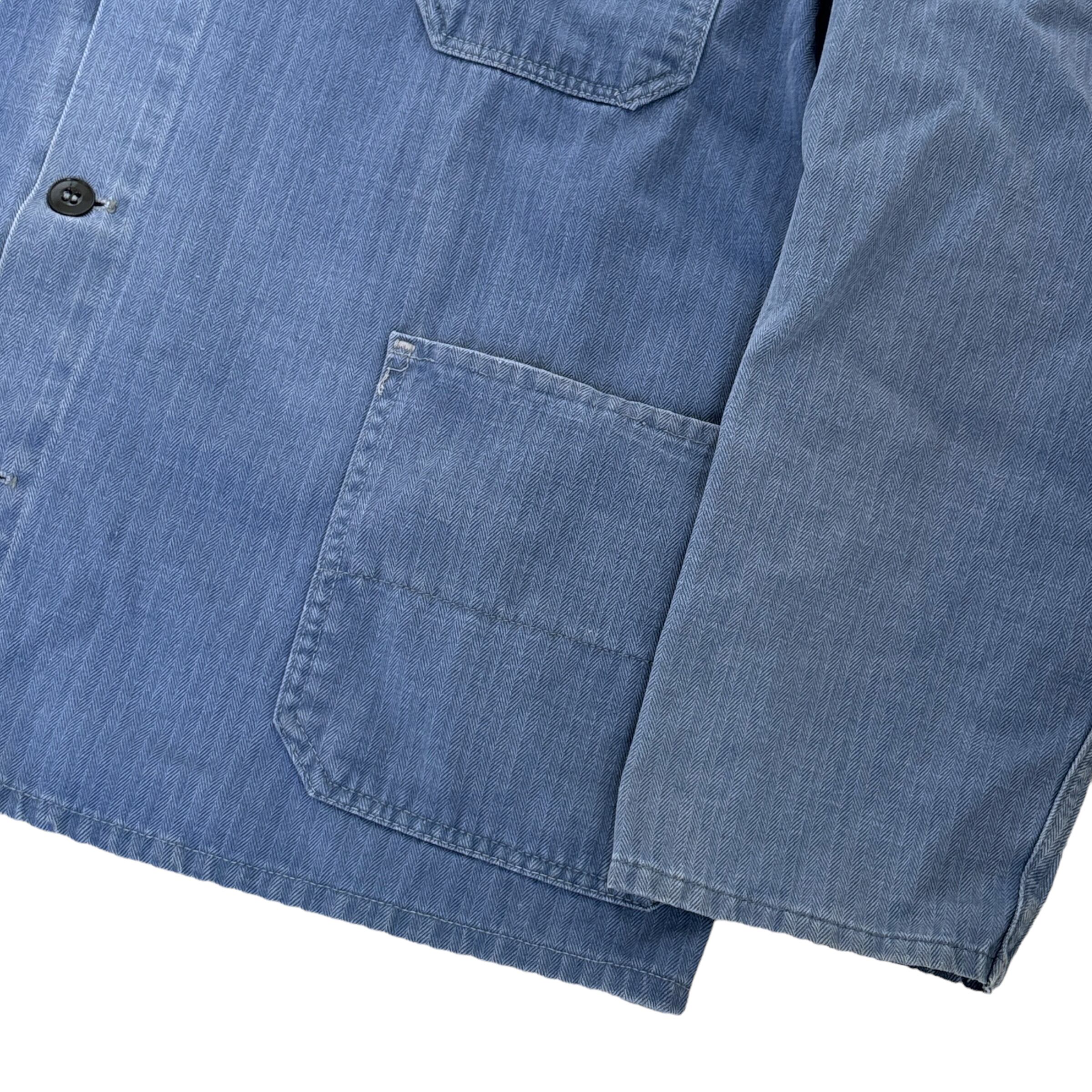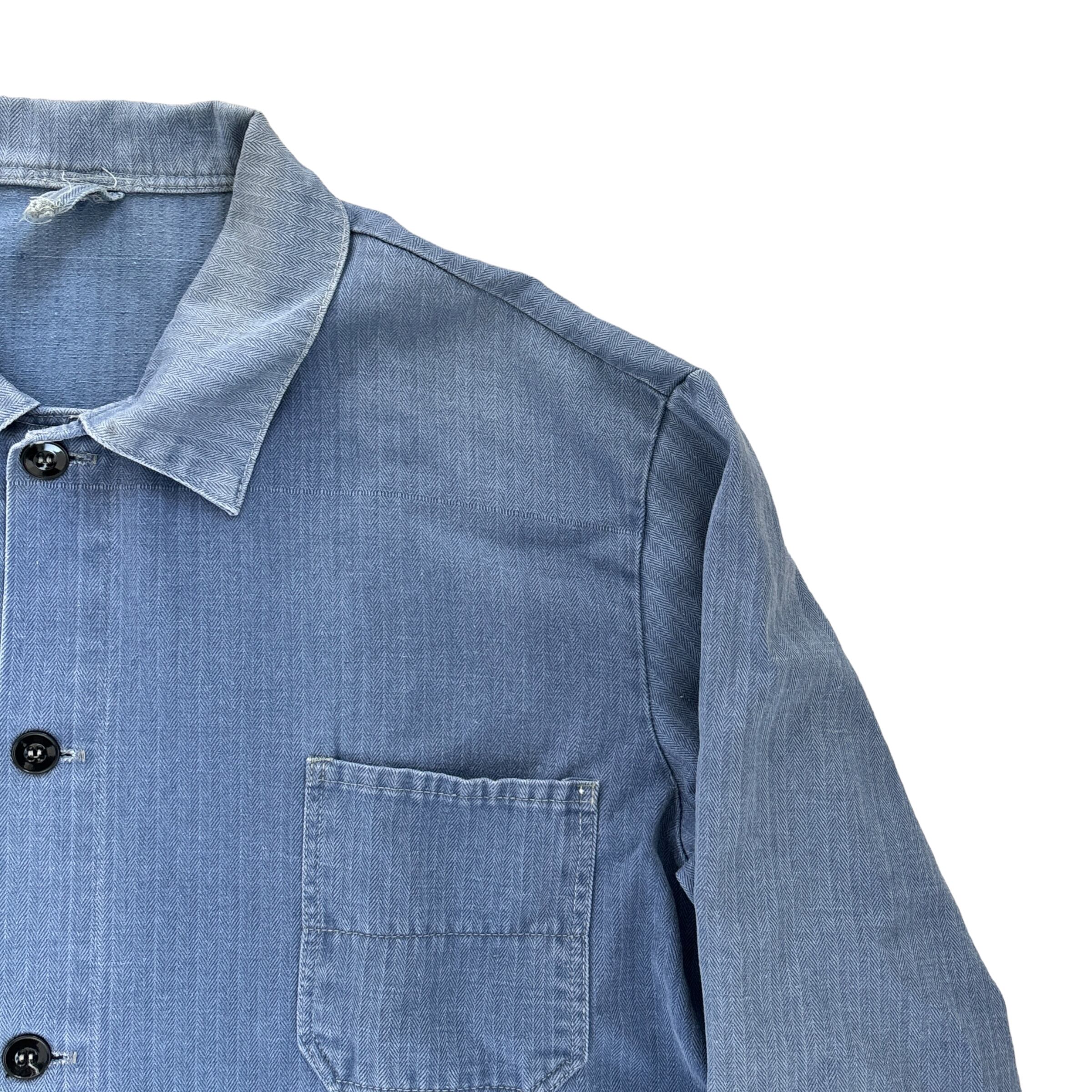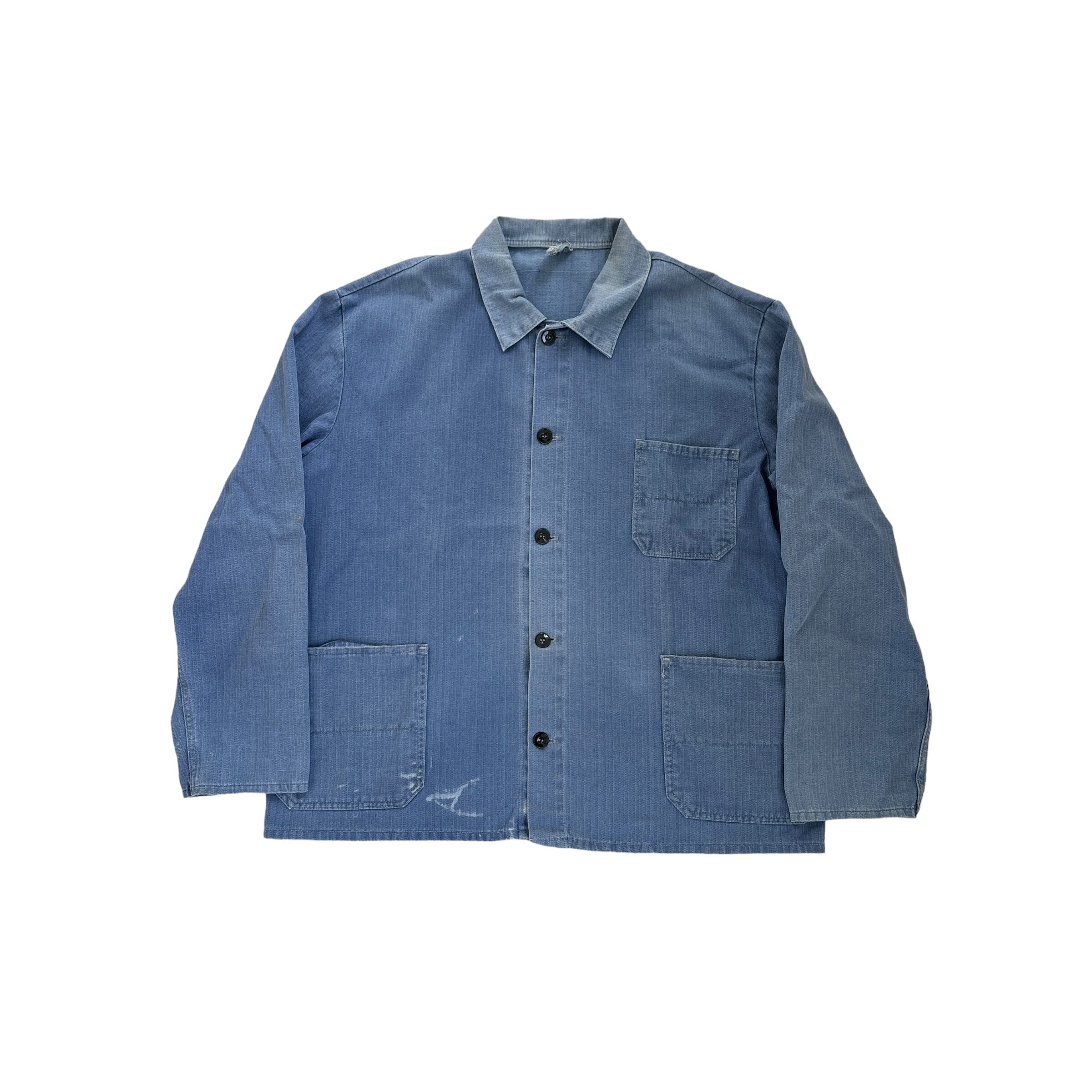 50s~ 50s 60s 70s EURO vintage work jacket HBT 50年代〜 ユーロヴィンテージ ワークジャケット ヘリンボーンツイル 古着 ヴィンテージ ライトブルー 青 フェード