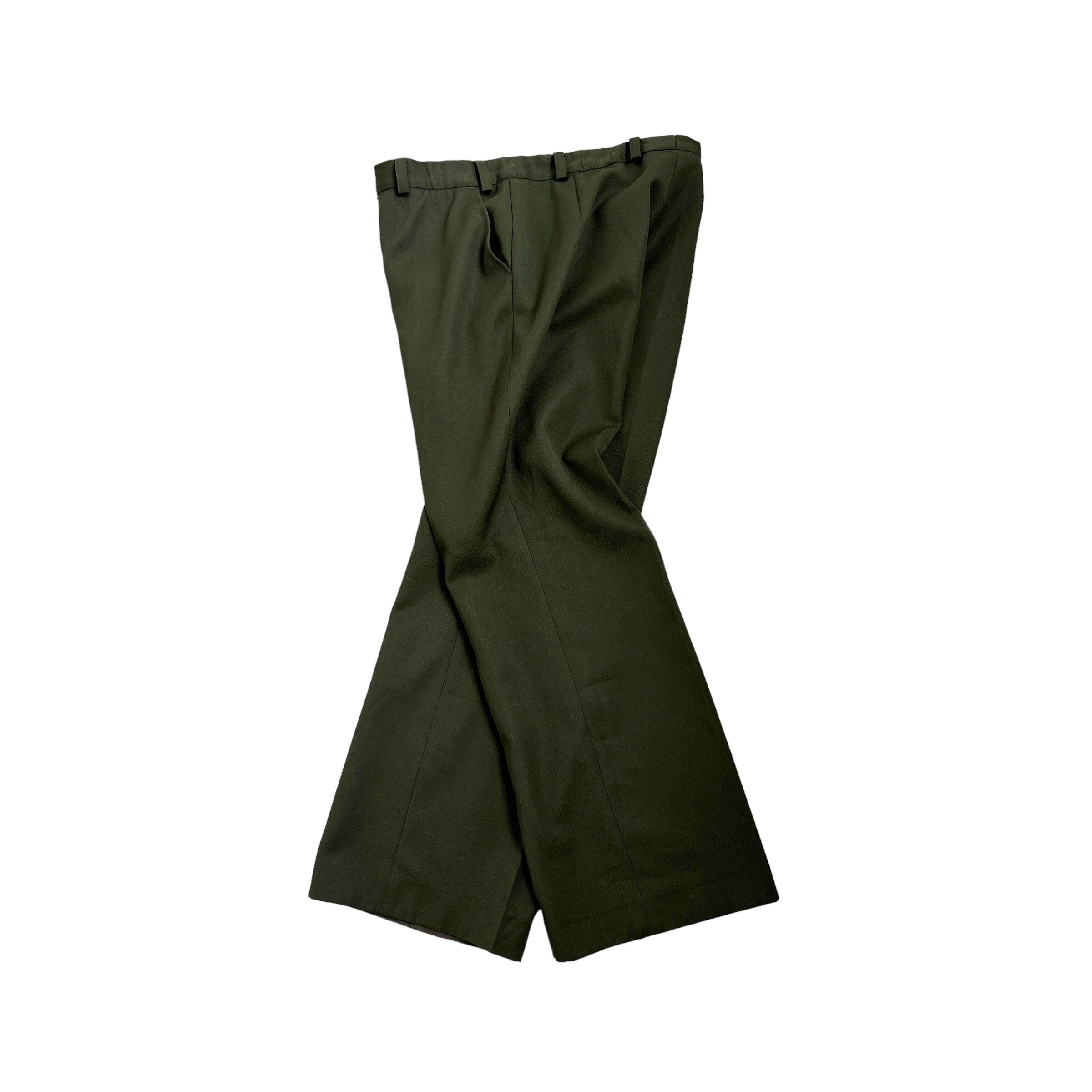 VINTAGE unknown wide flare pants moss green ブランド・年代不明 ワイドフレアパンツ スラックス 古着 ヴィンテージ モスグリーン 緑 カーキ オリーブ