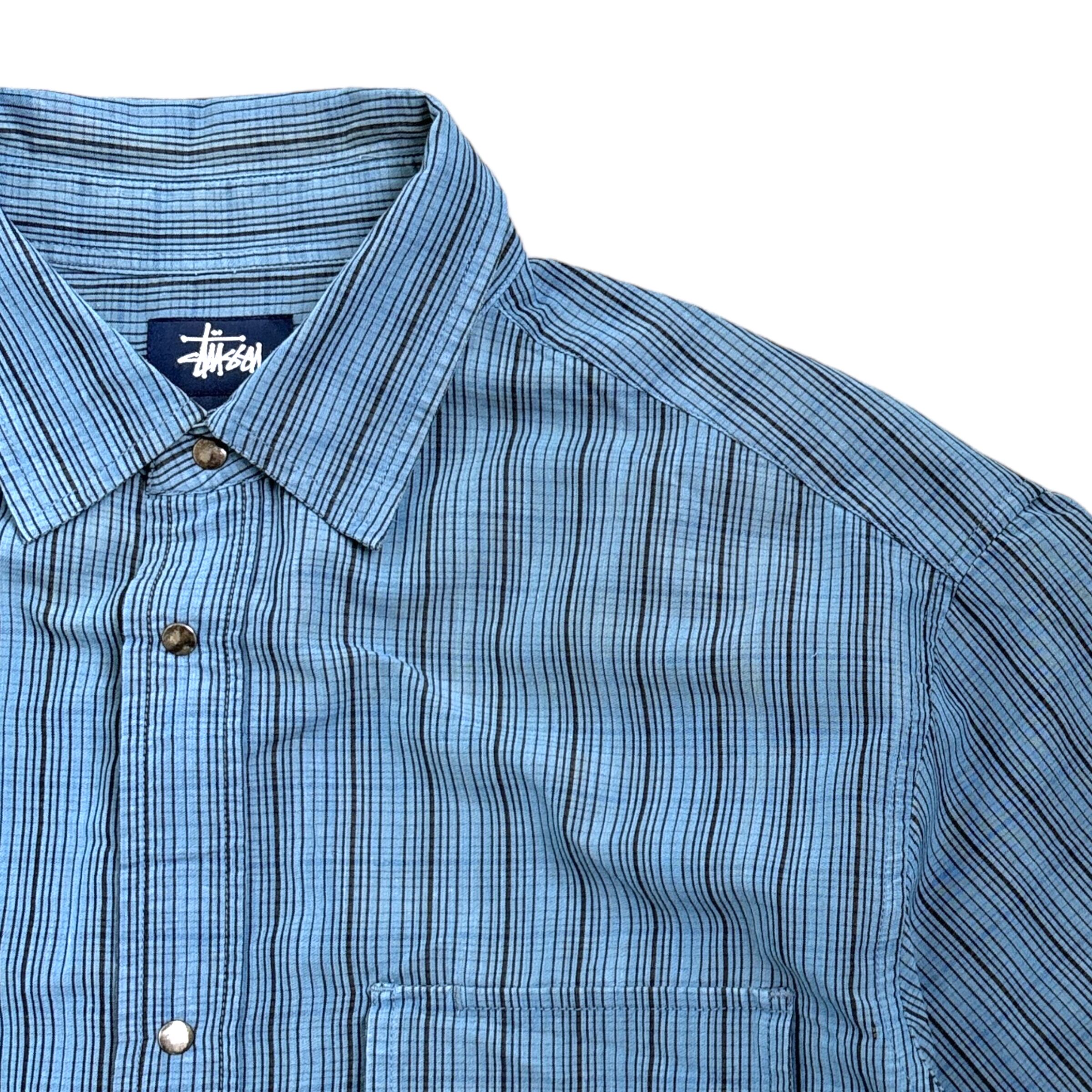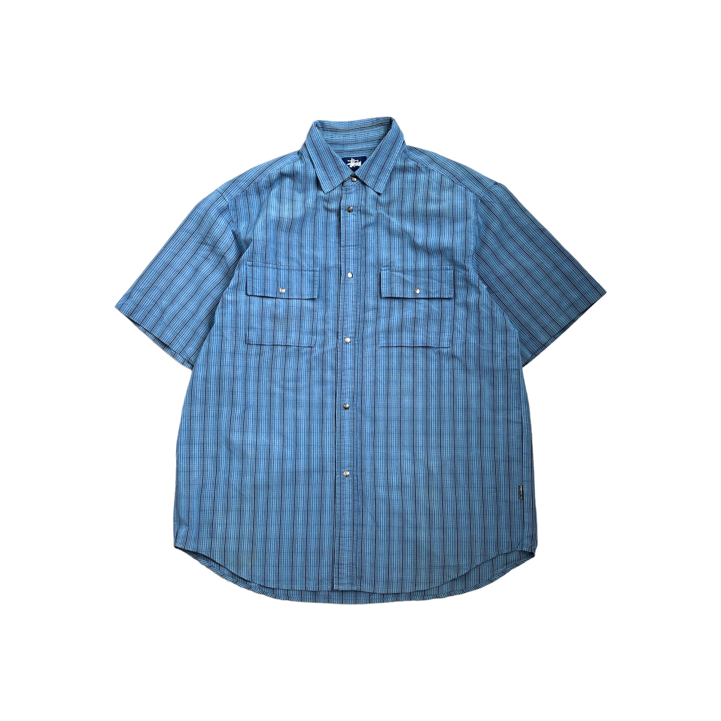 90s OLD STUSSY ombre stripe shirt 90年代 オールドステューシー オンブレストライプ 半袖シャツ 紺タグ L 古着 ブルー 青