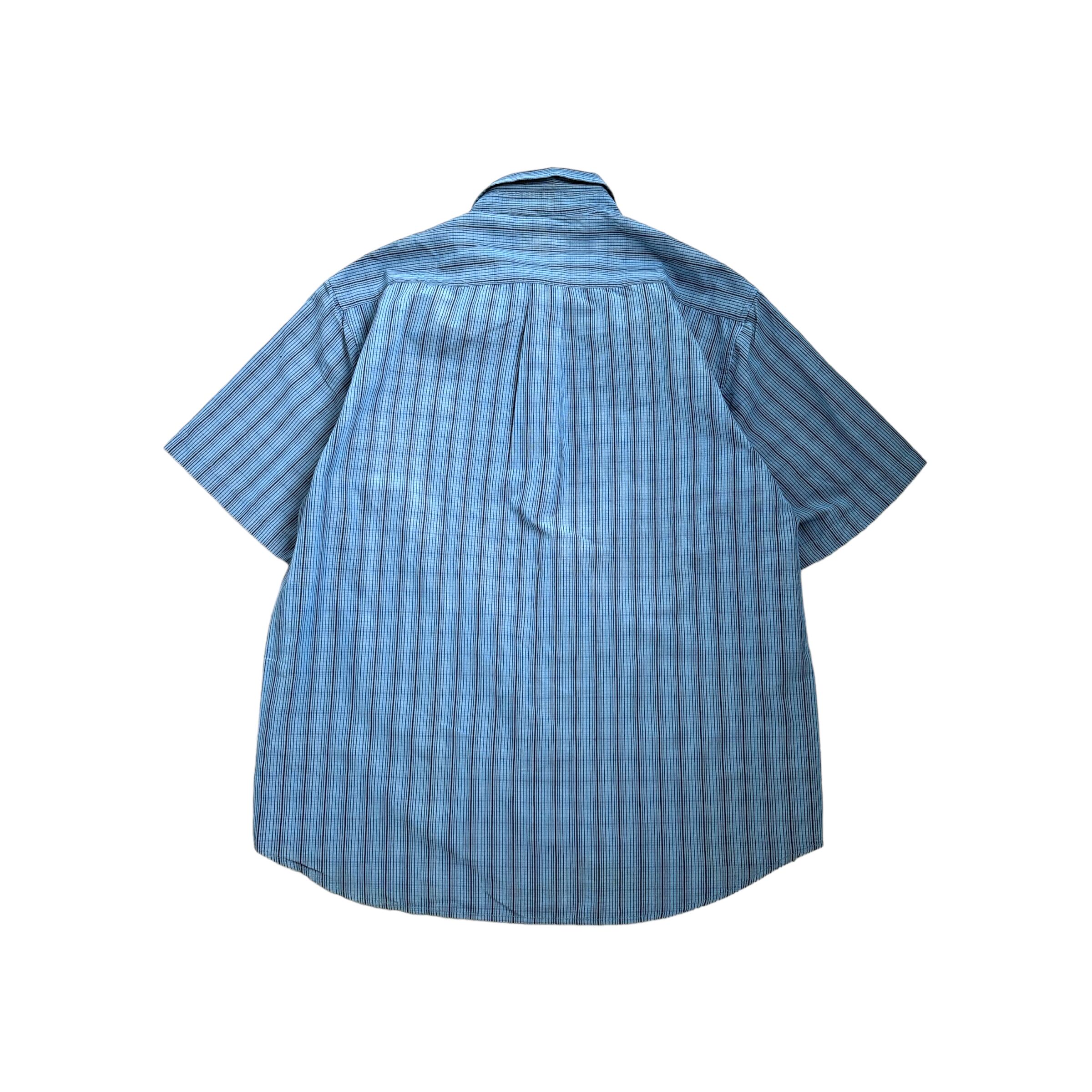【美品】90s OLD STUSSY ombre stripe shirt 90年代 オールドステューシー オンブレストライプ 半袖シャツ 紺タグ L 古着 ブルー 青